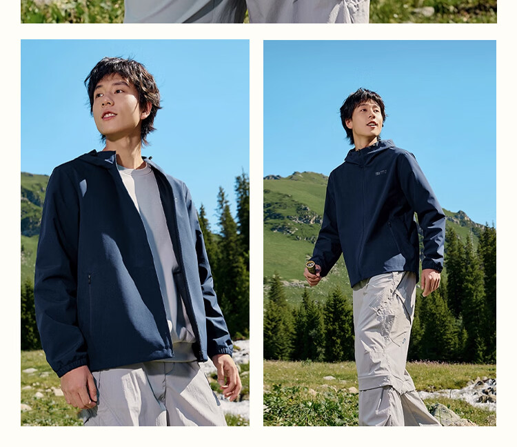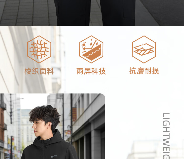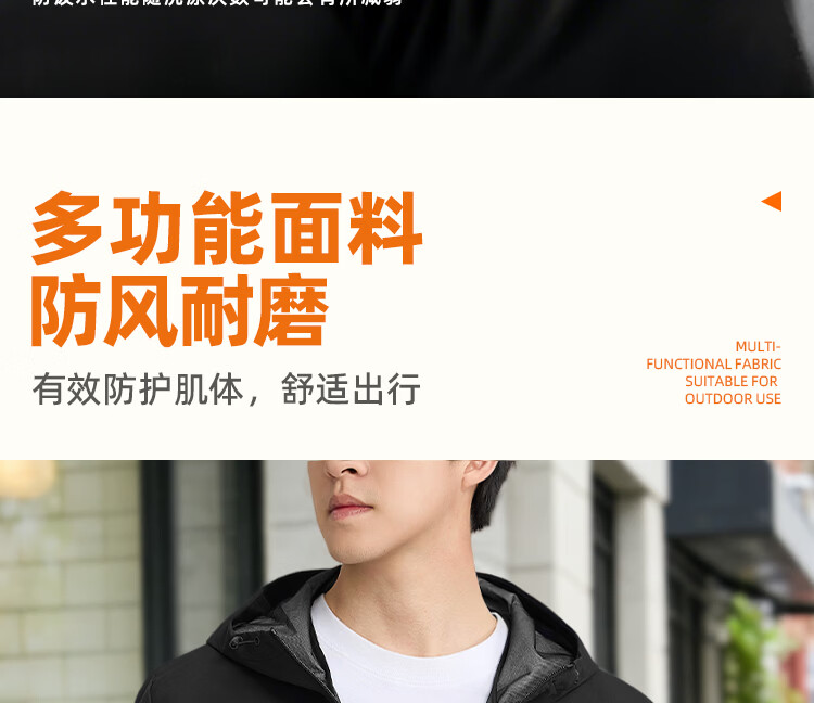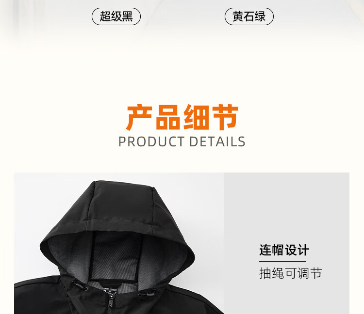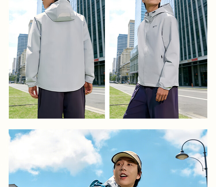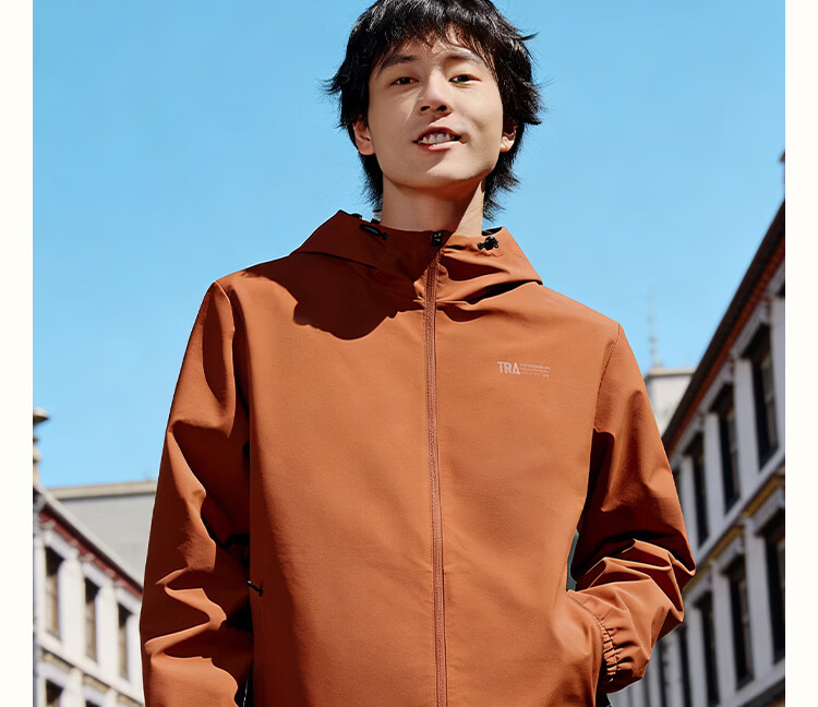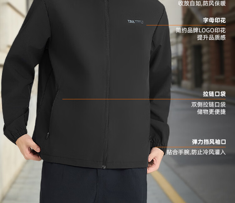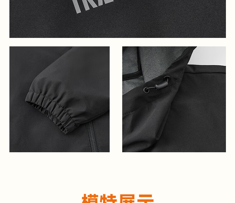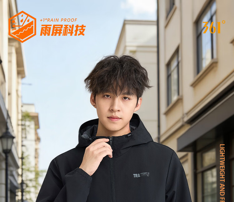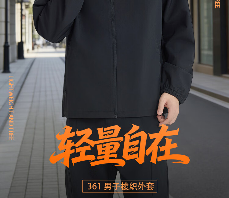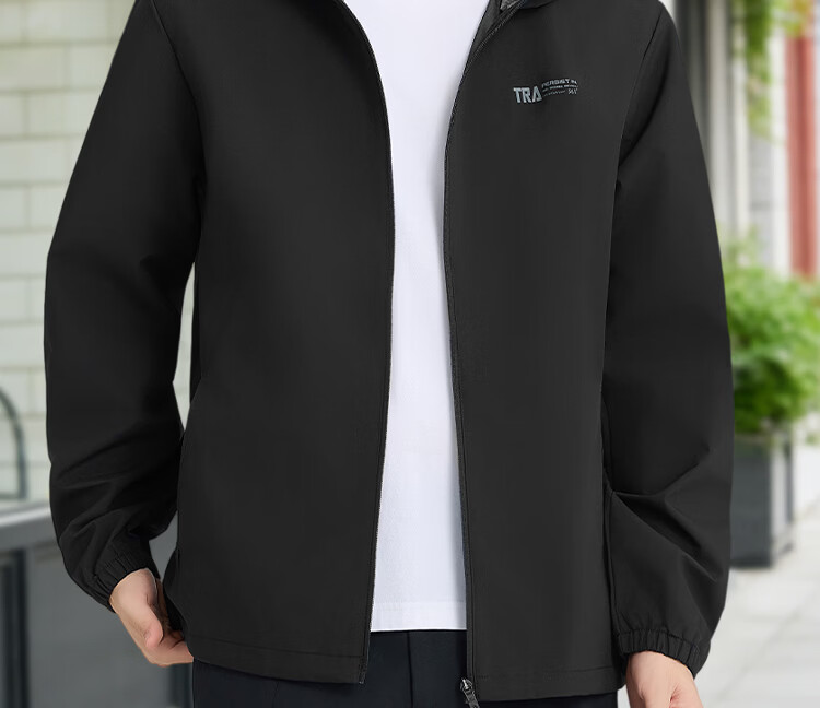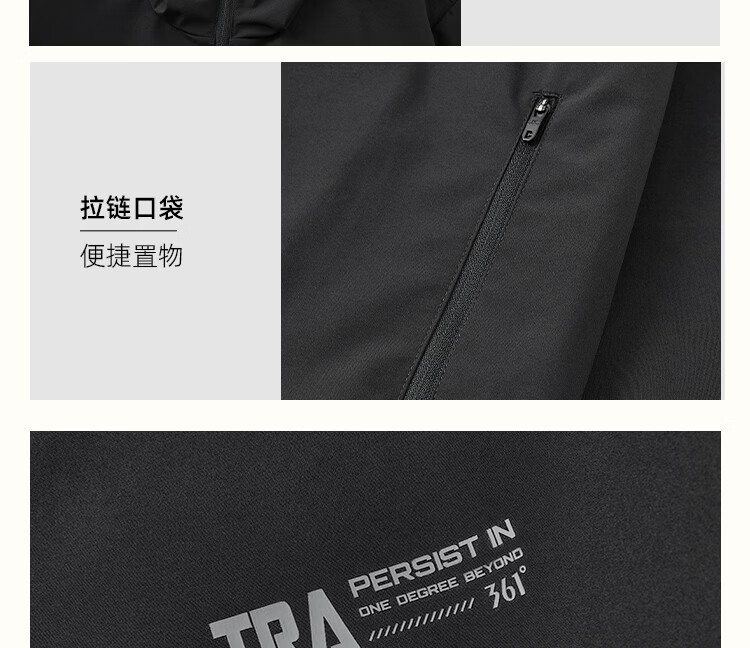 361 Men's new windproof and water-repellent windproof jacket, casual, versatile, trendy outdoor sports tops, high-end men's wear, super black (zipper pocket-hooded windbreaker) S /165 (90-100Jin Jin equals 0.5kg)