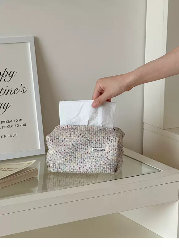 Yusenyi French fabric tissue box light luxury and high-end bedroom bedside table tissue cover large capacity home tissue storage bag Lin Ying misordered