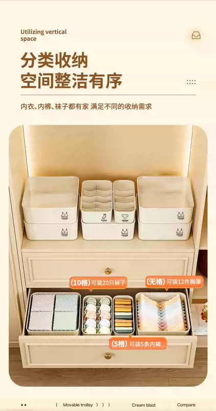 Yusenyi underwear storage box compartment box sock organizer bra and underwear three-in-one drawer wardrobe household artifact partition (three-piece set with lid) wardrobe combination storage (three-piece set with lid) wardrobe combination storage