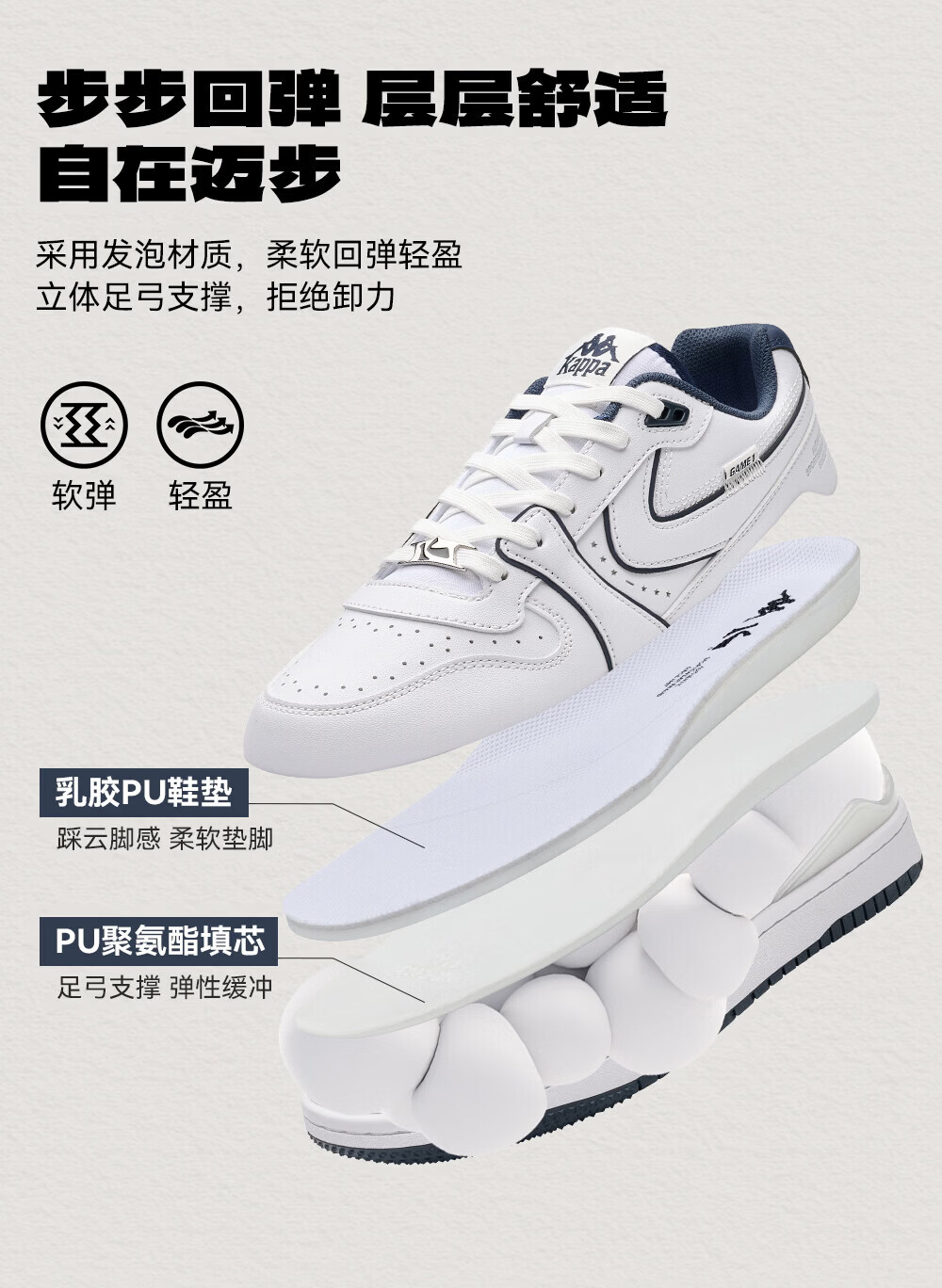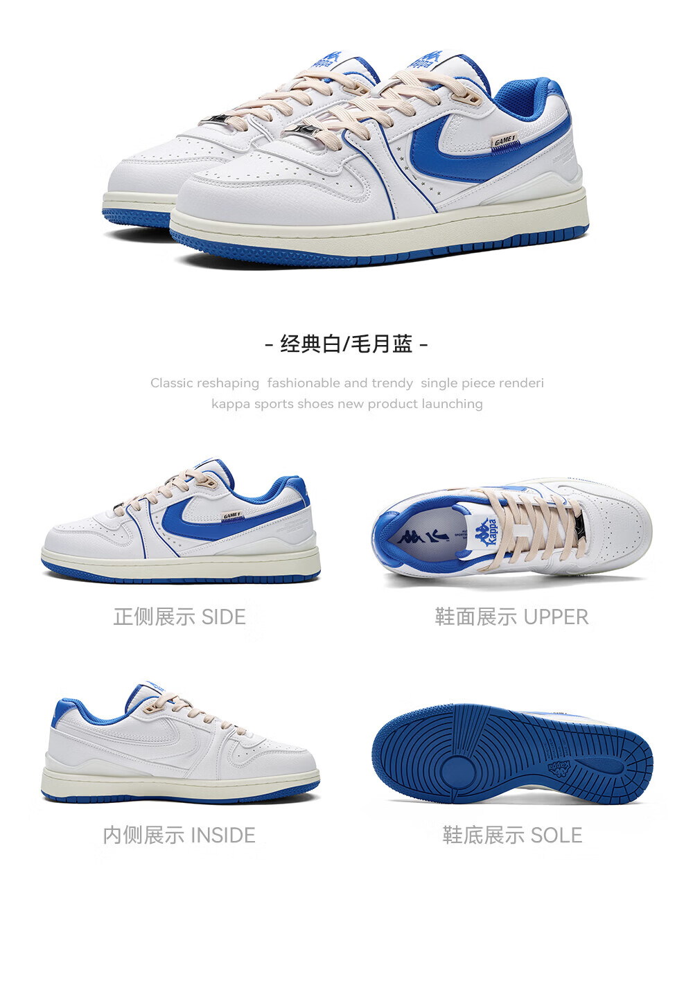 Kappa (Kappa) Women's Shoes Women's 2025 Winter New Thick Soled Height White Shoes Soft Soled Sports Shoes Casual Versatile Couple Shoes Classic White/Mao Yue Blue 39