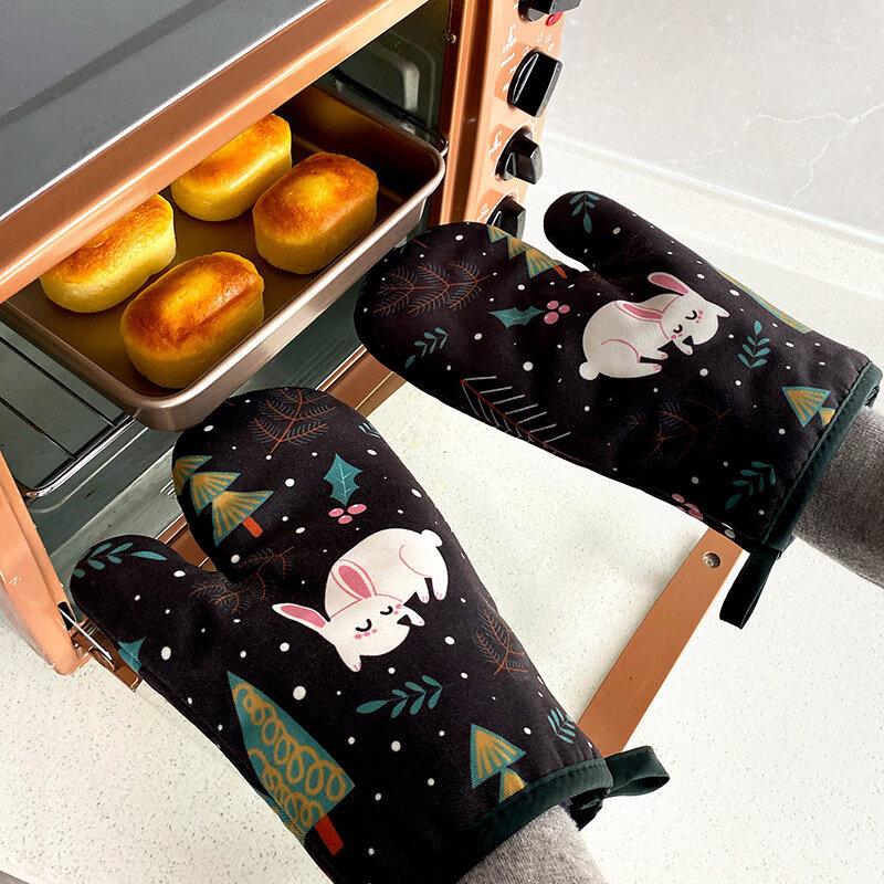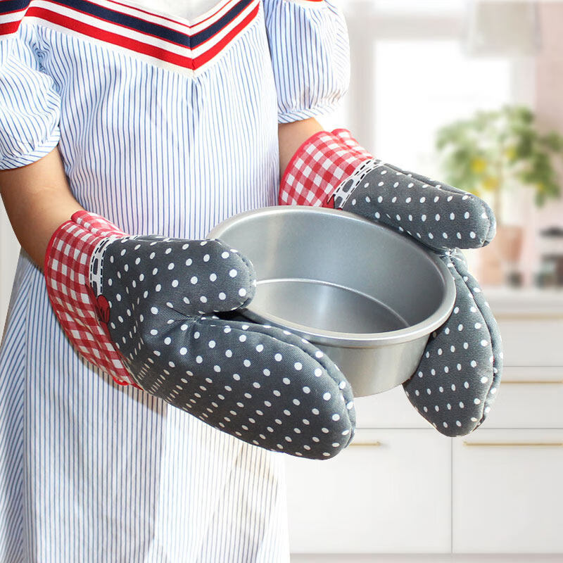 Tuojin imported high-quality insulation gloves from Germany, thickened, high-temperature resistant microwave oven gloves, household kitchen oven gloves, anti-scalding, blue dot thickened model (1 piece)