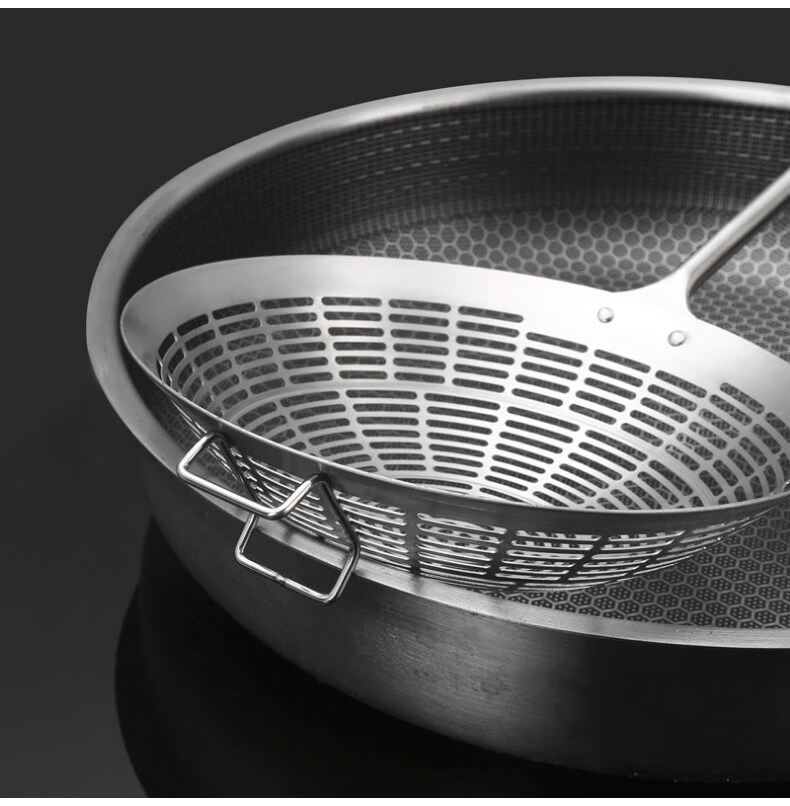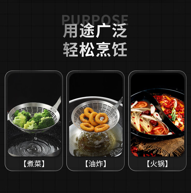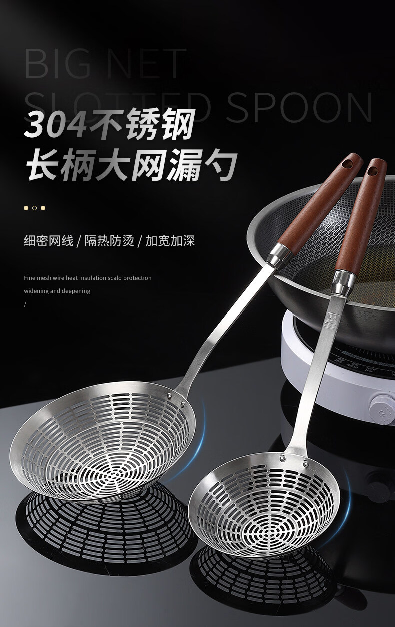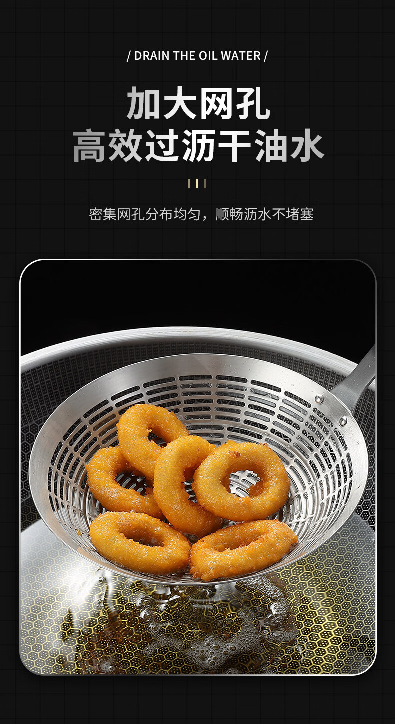 Lieyan colander hot pot food grade 304 stainless steel colander for mixing noodles, noodles, dumplings, fried kitchen strainer, 3 seconds drain, 2-3 people, 13.5cm large colander, anti-