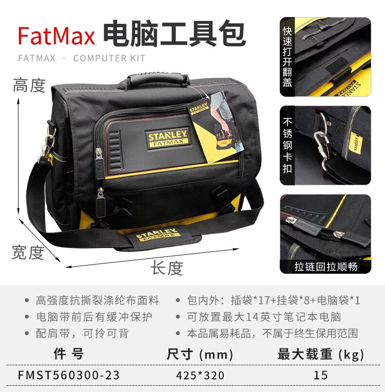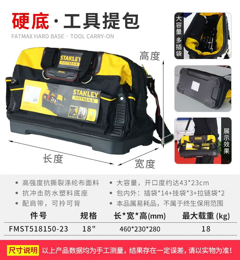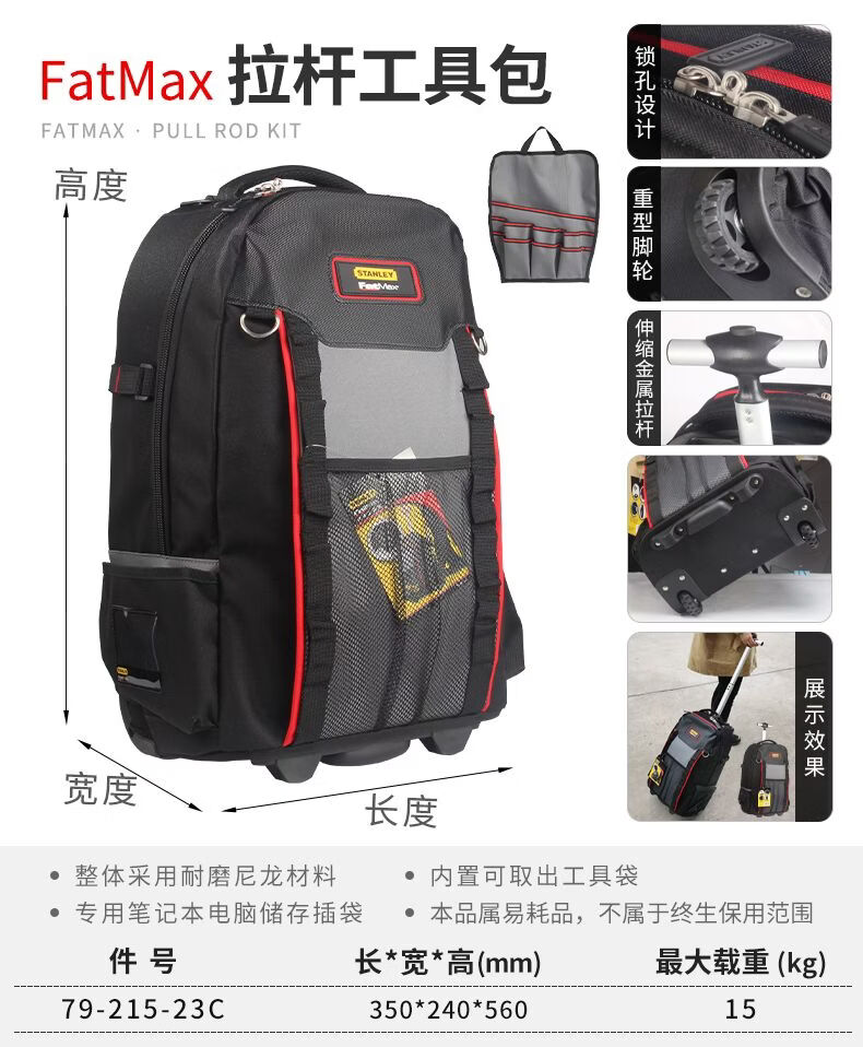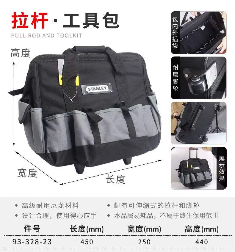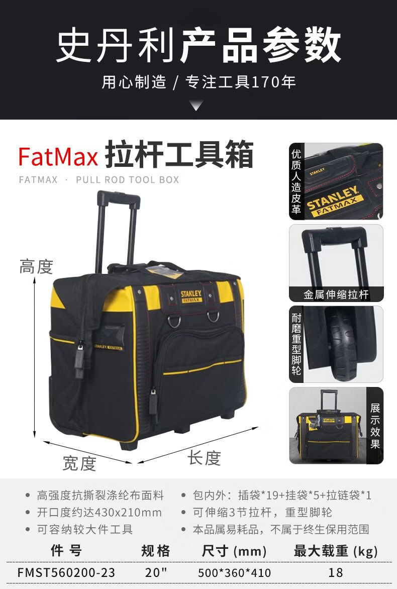 Stanley Tool Bag Trolley Work Bag Tool Box Hardware Repair Tool Kit Electrician Waterproof Extra Large Wheeled FATMAX Trolley Tool Bag-Large 20 Inch