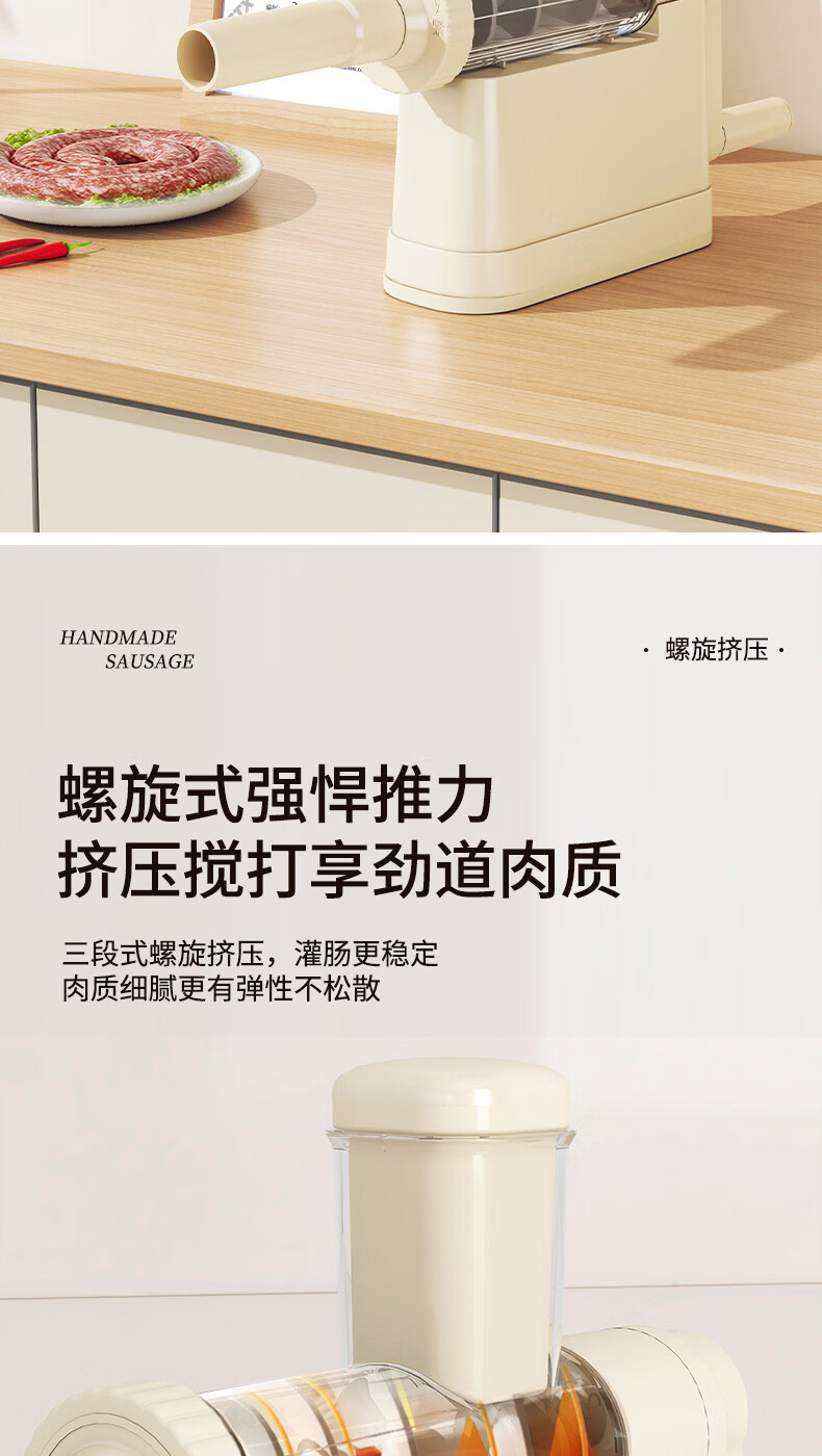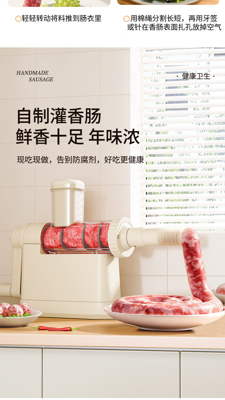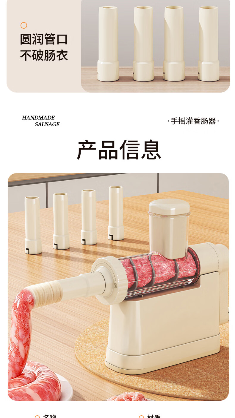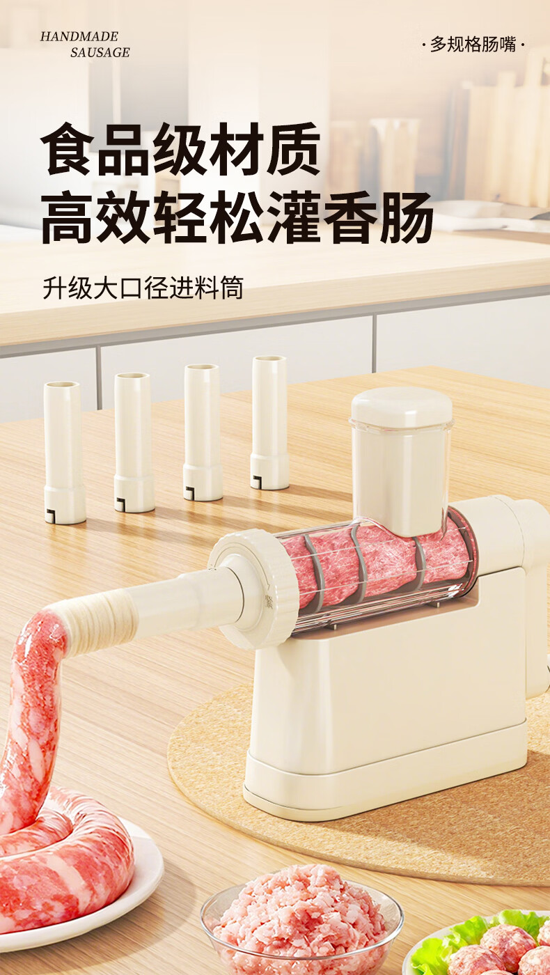 Centenary Zhenghe sausage filling machine household sausage filling machine hand-operated sausage filling tool sausage tank meat sausage artifact off-white 4 intestine mouth + 1 pack of casings + gloves + cotton thread