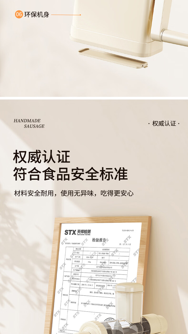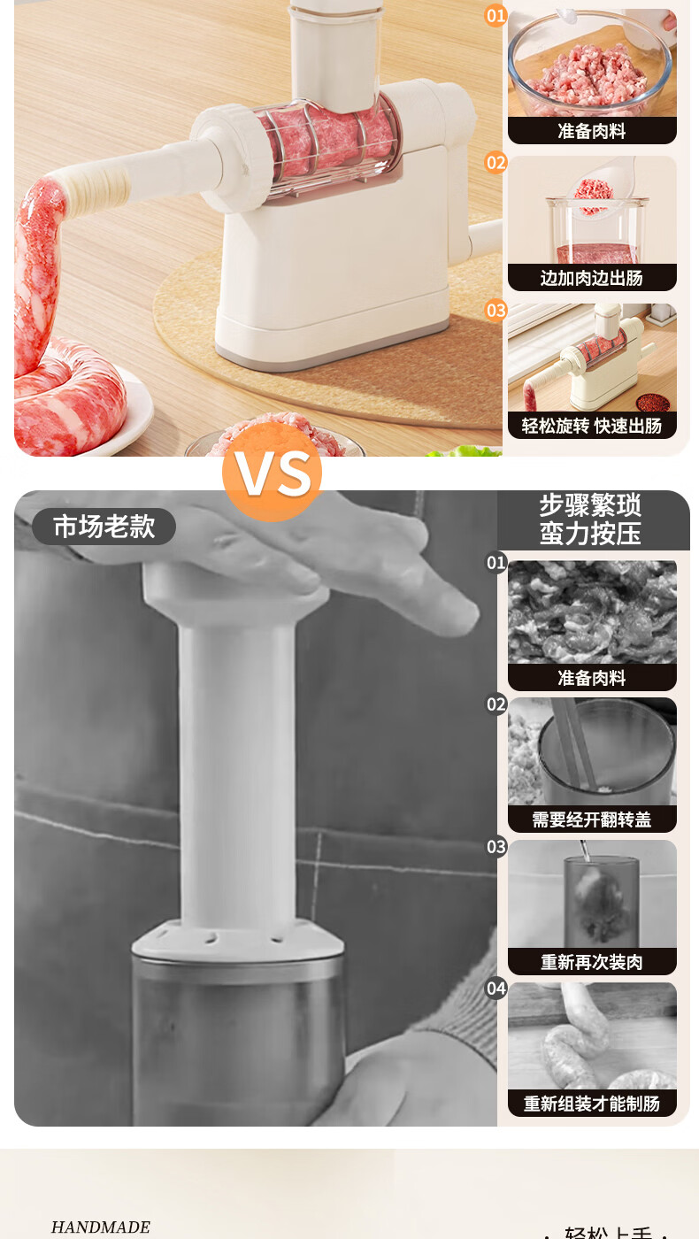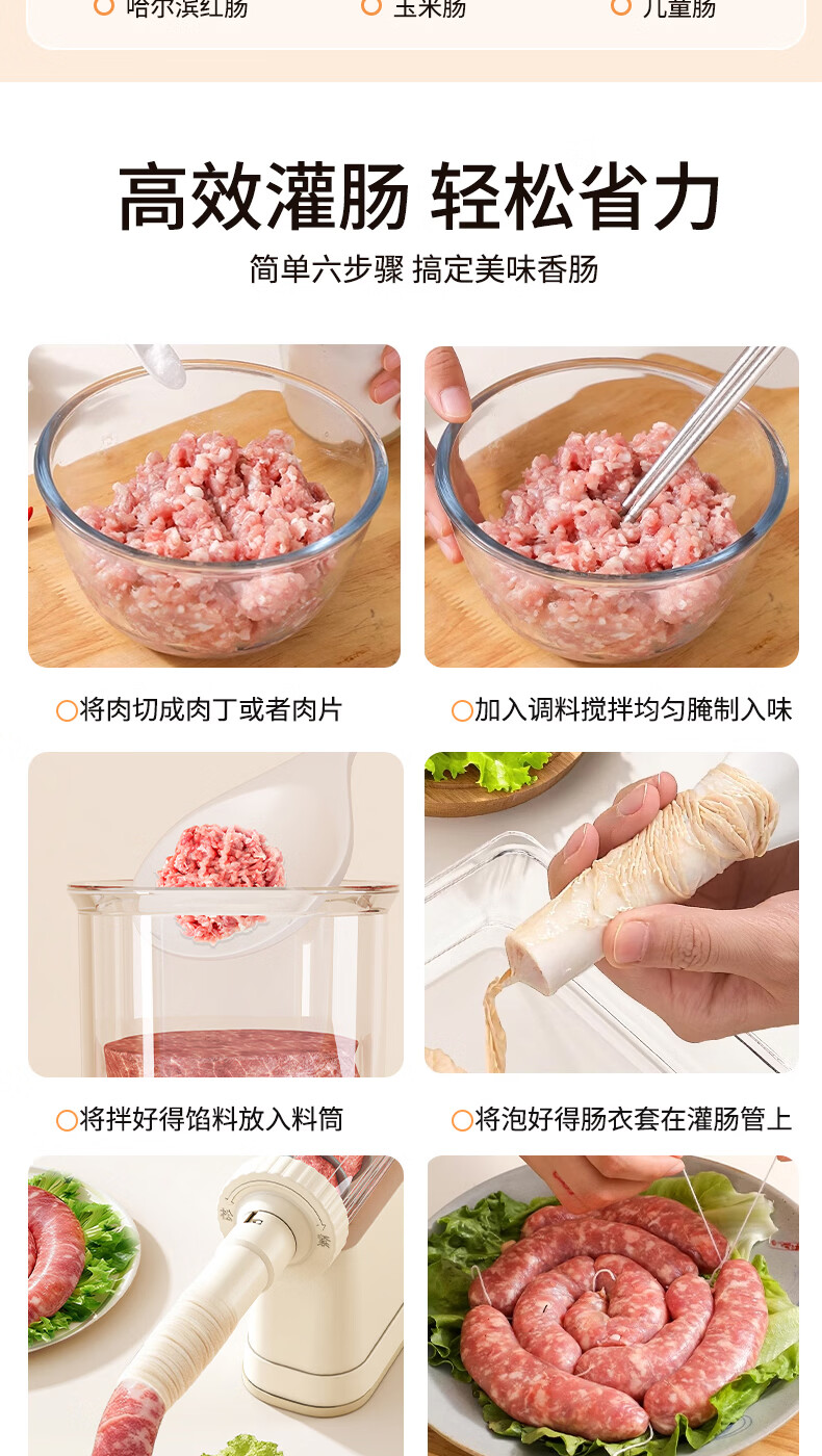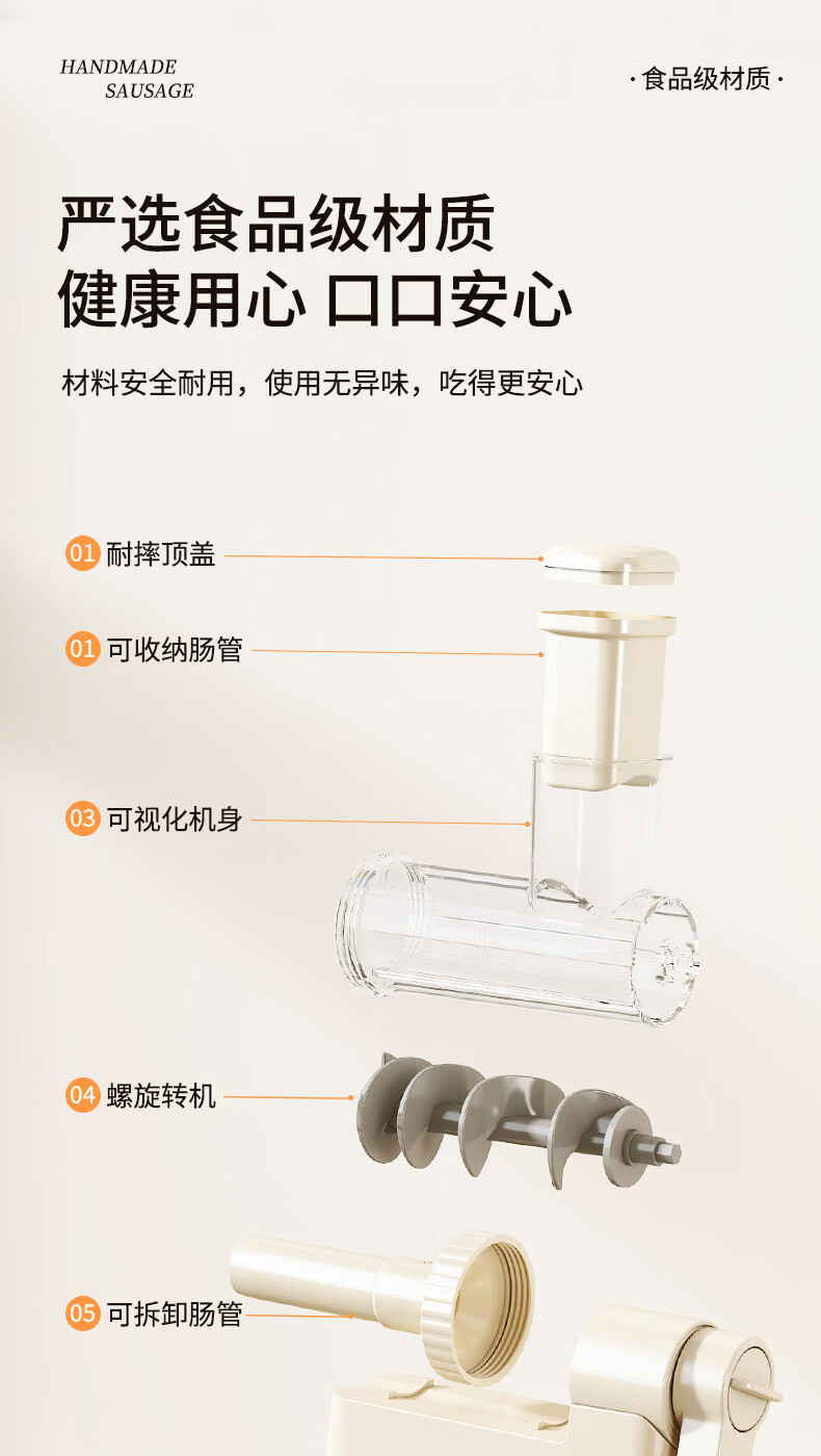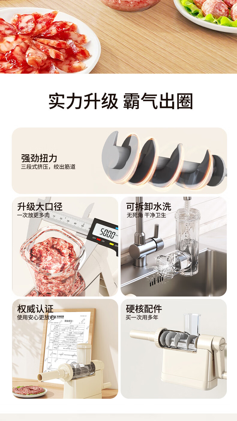 Centenary Zhenghe sausage filling machine household sausage filling machine hand-operated sausage filling tool sausage tank meat sausage artifact off-white 4 intestine mouth + 1 pack of casings + gloves + cotton thread