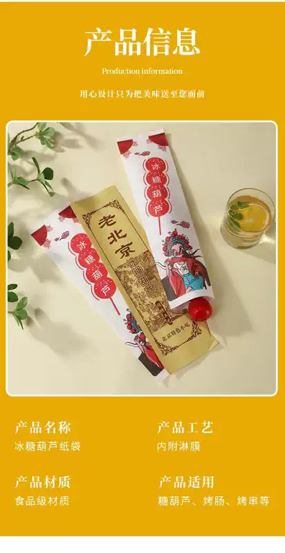 Yusen recalls the old Beijing candied haws paper bag, coated and anti-stick, iced candied haws packaging bag, thickened coated candied haws paper bag, beautiful candied haws 9x32 white paper, 9 pieces, beautiful candied haws 9x32 white paper, 10,000 pieces