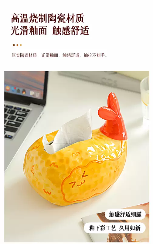 Yusenyi Home Furao Creative Box Day Living Room Desktop Tissue Box Tissue Ceramic High-End Exquisite Dinner Box Decorative Ornaments West Highland Puppy Tissue Box (Blue Scarf)