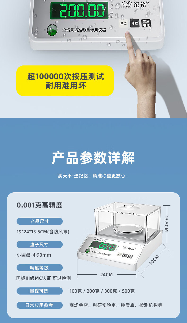 JM JIMING electronic scale 0.01 precision electronic balance scale high-precision gold jewelry weighing laboratory household small higher precision disc 300g_0.01g accuracy_with windshield + weight