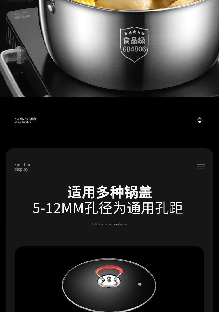 Donau Dream Stainless Steel Silicone Anti-scald High Temperature Resistant Universal Pot Lid Handle Household Pot Lid Cap Handle Glass Head Handle Stainless Steel Anti-scald-Black 1 Pack