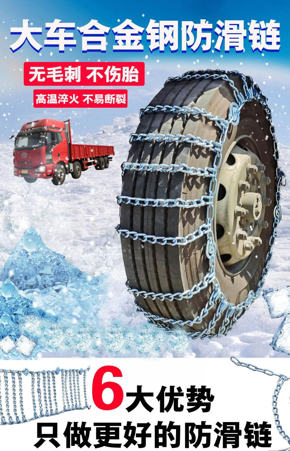 Special anti-slip manganese steel for workhorse trucks, extra coarse density, semi-trailer, passenger car, engineering vehicle, snow and mud, large vehicle steel strips 900-20 bold 26 kg 2 pack