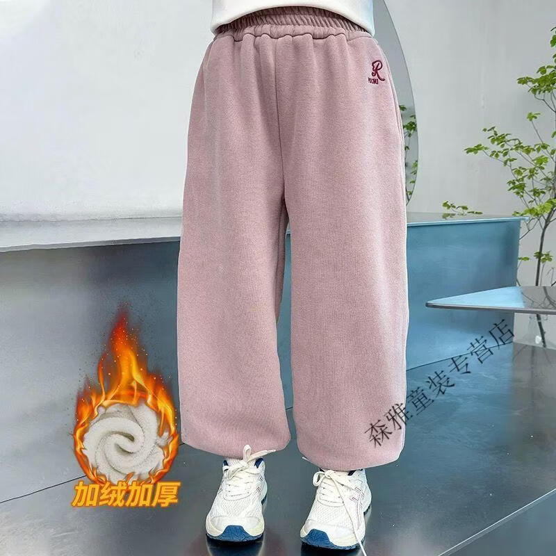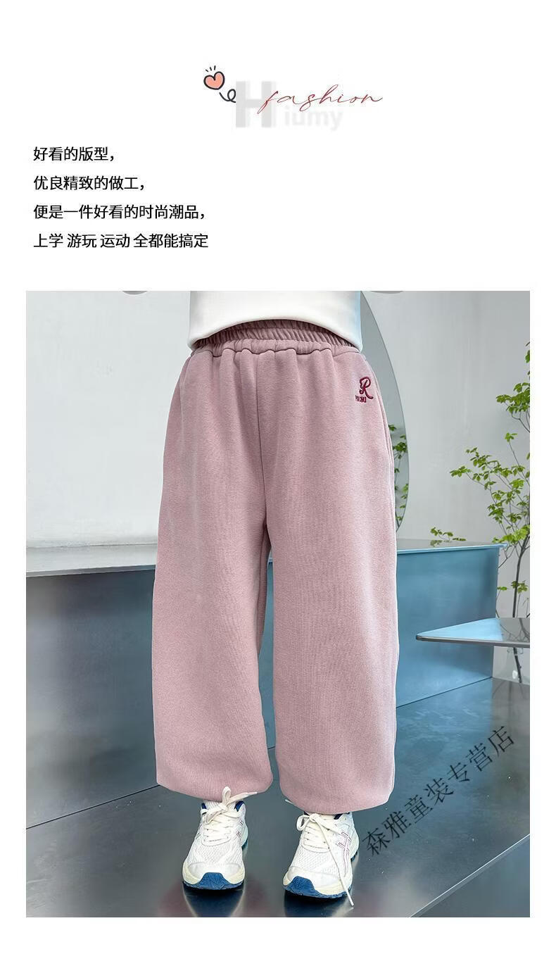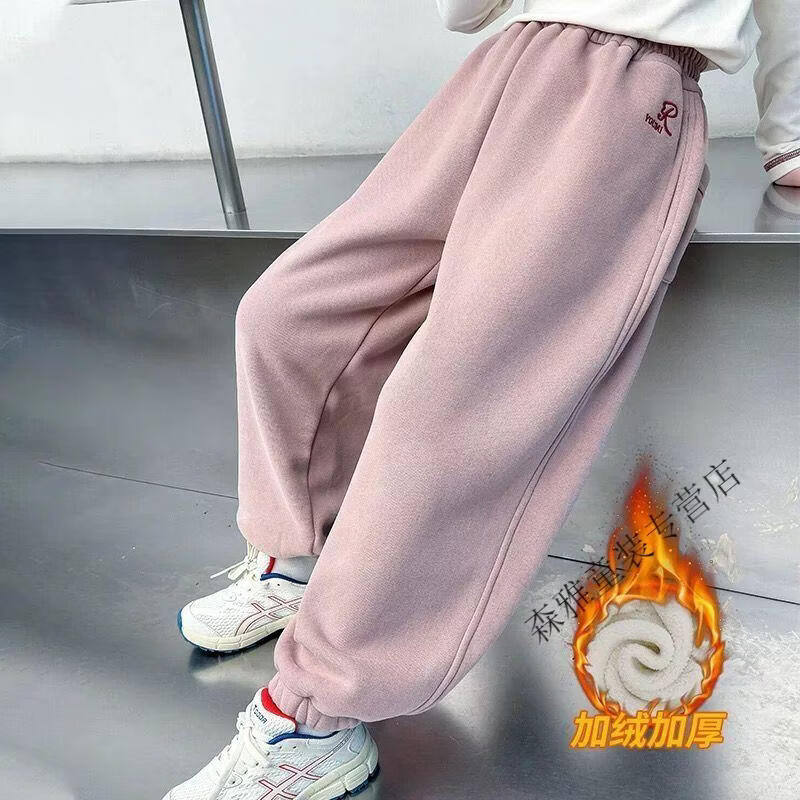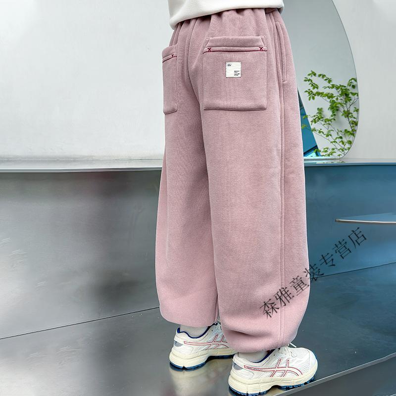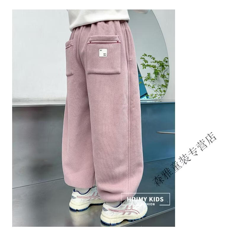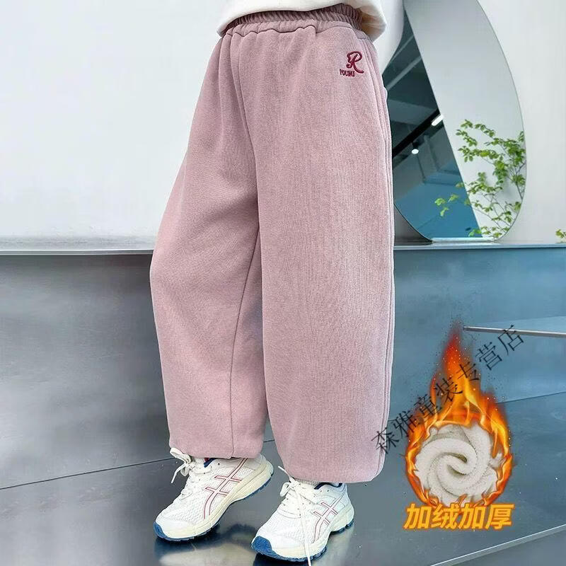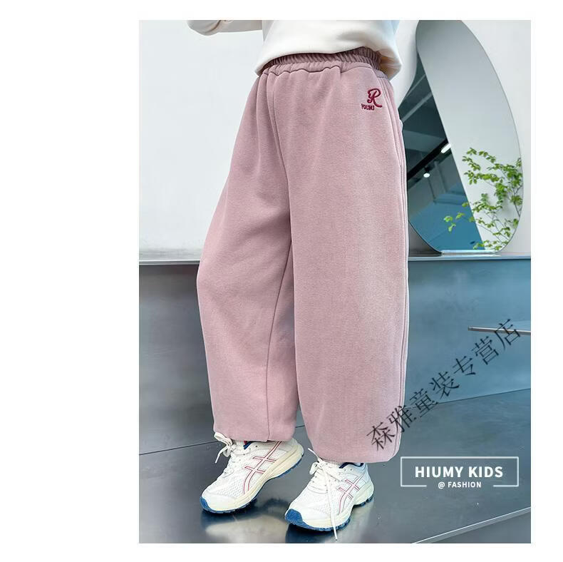 Mumuwu girls' leggings autumn and winter 2026 new children's velvet thickened pants little girls casual pants sports pants pink one-piece velvet 110 pants length 64 cm