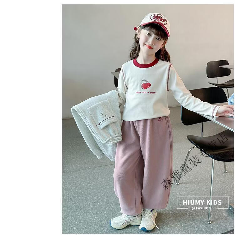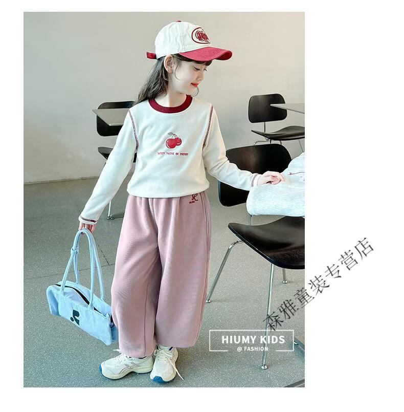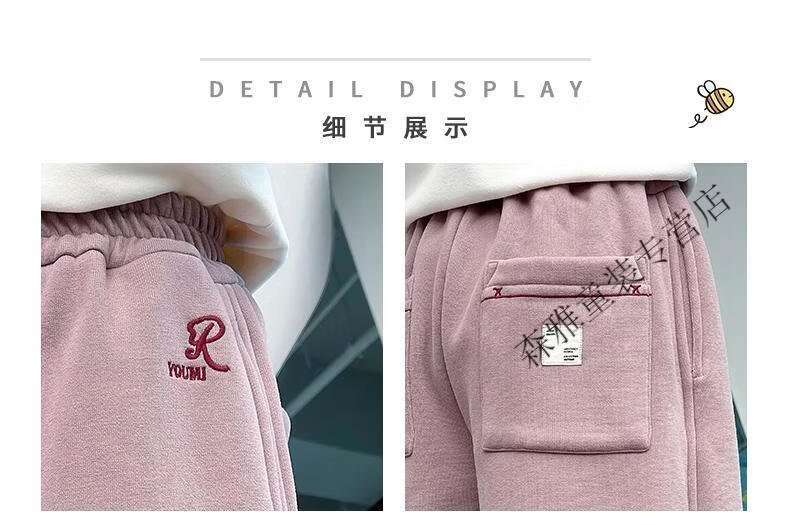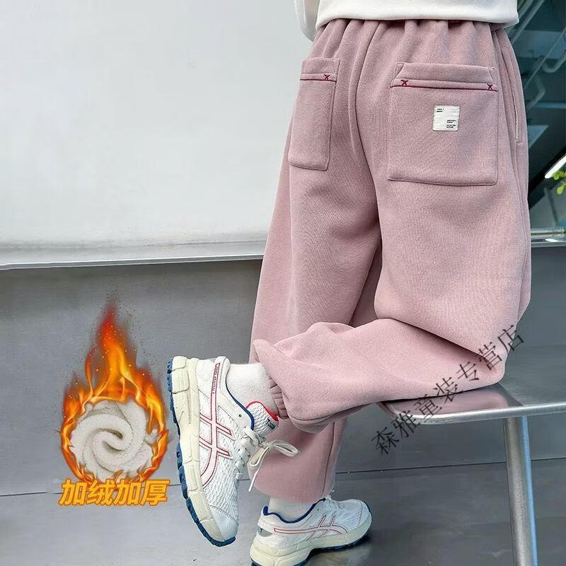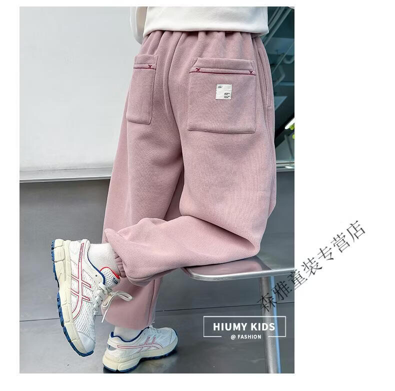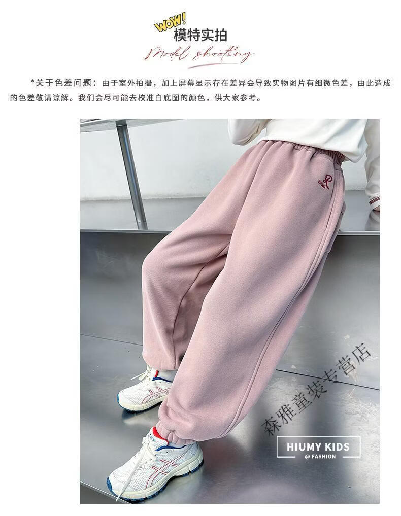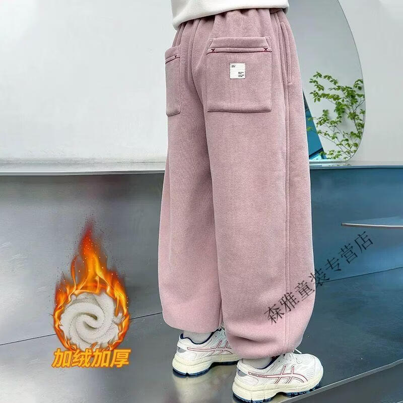 Mumuwu girls' leggings autumn and winter 2026 new children's velvet thickened pants little girls casual pants sports pants pink one-piece velvet 110 pants length 64 cm