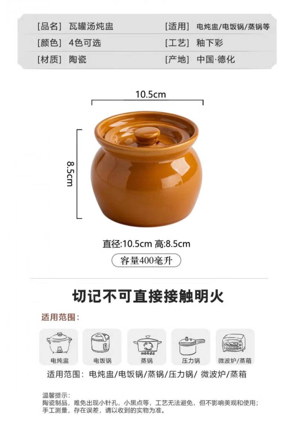 Tuojin Jingdezhen ceramic crock pot simmering soup Shaxian snack commercial old-fashioned stew pot household stew pot with lid water-proof one person steaming heat-resistant black crock pot 300 ml (mini model