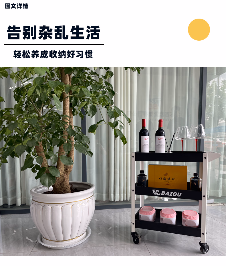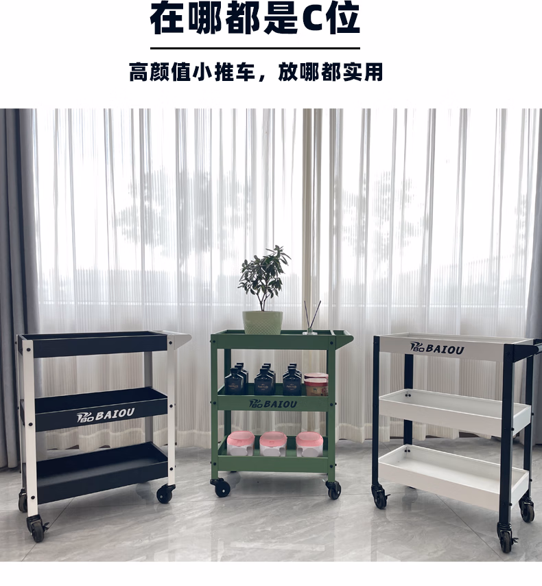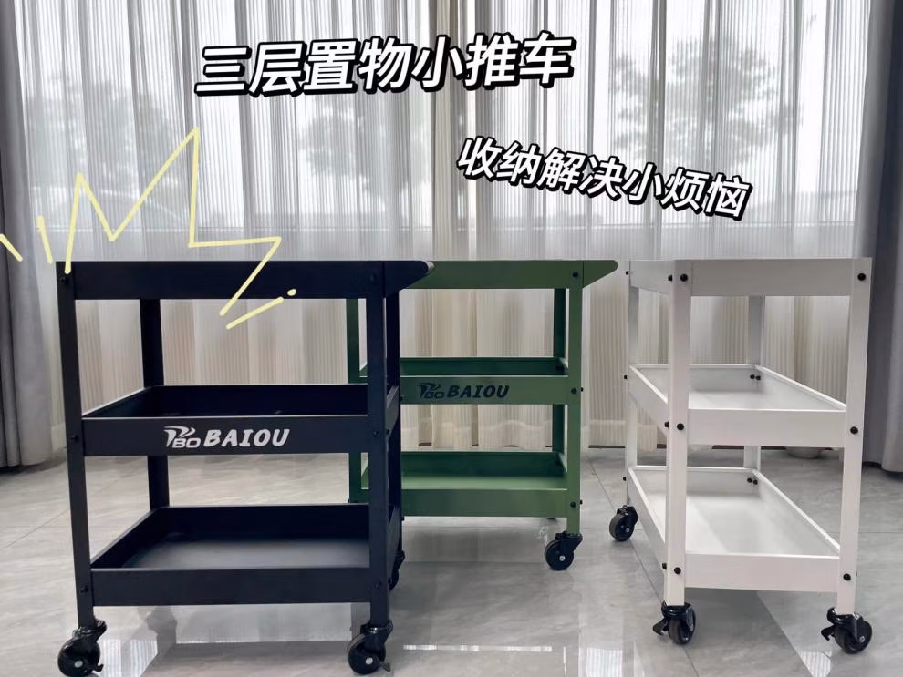 Qiao Bo Lai three-layer trolley, industrial style tool trolley, wheel storage parts, mobile home flower stand, green plant trolley, black