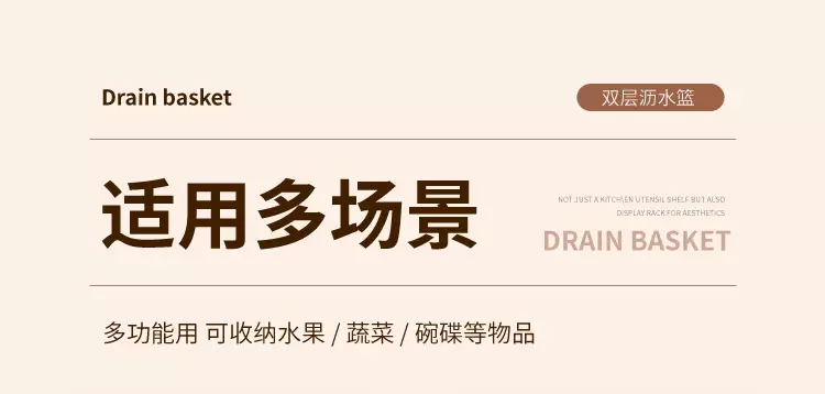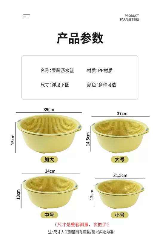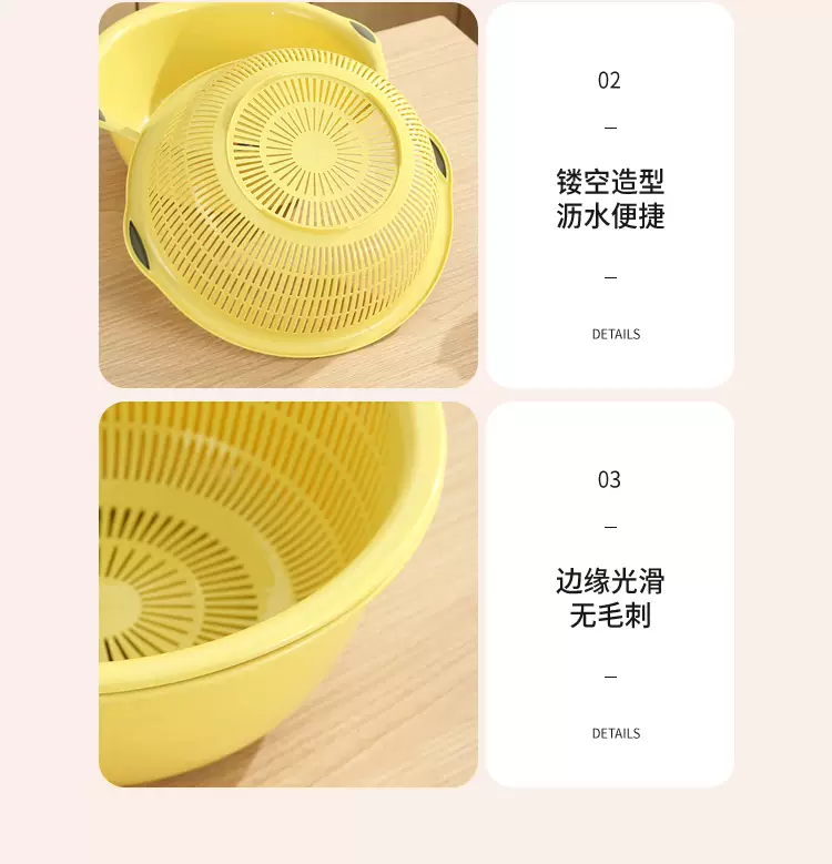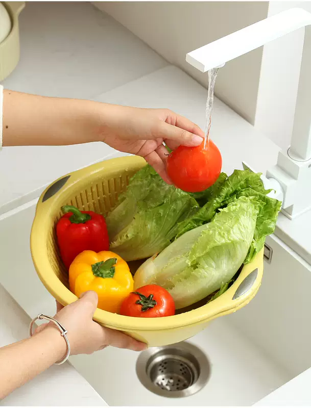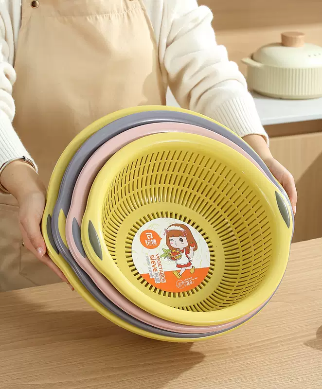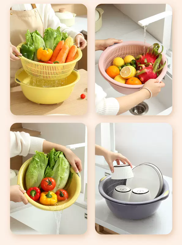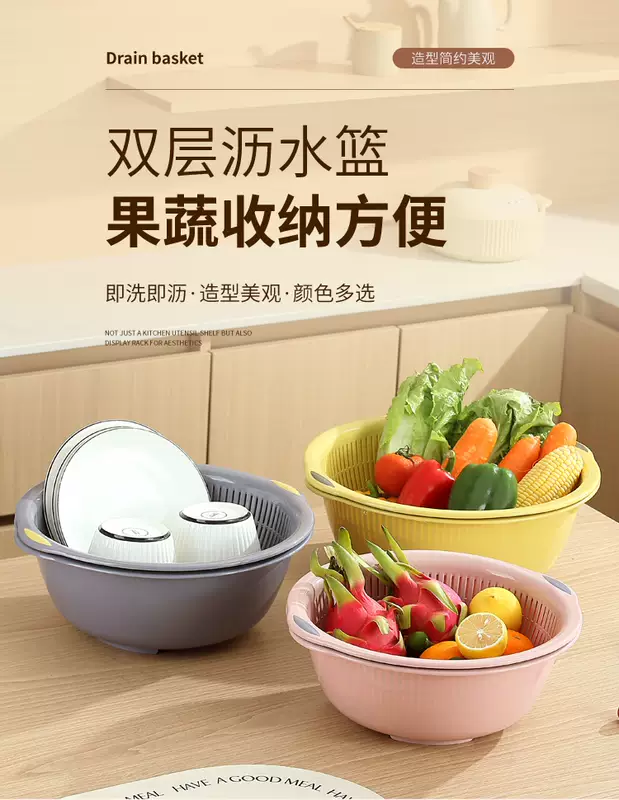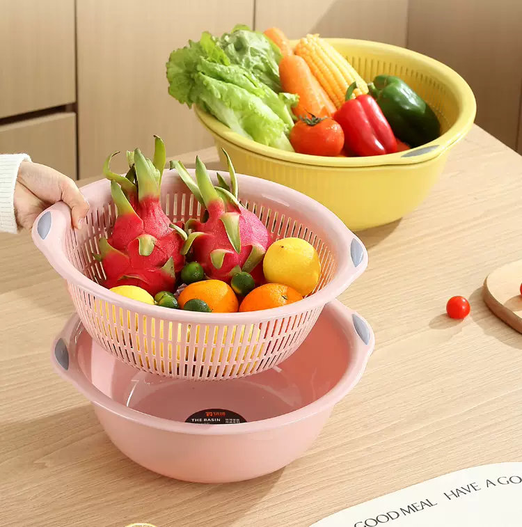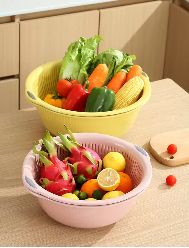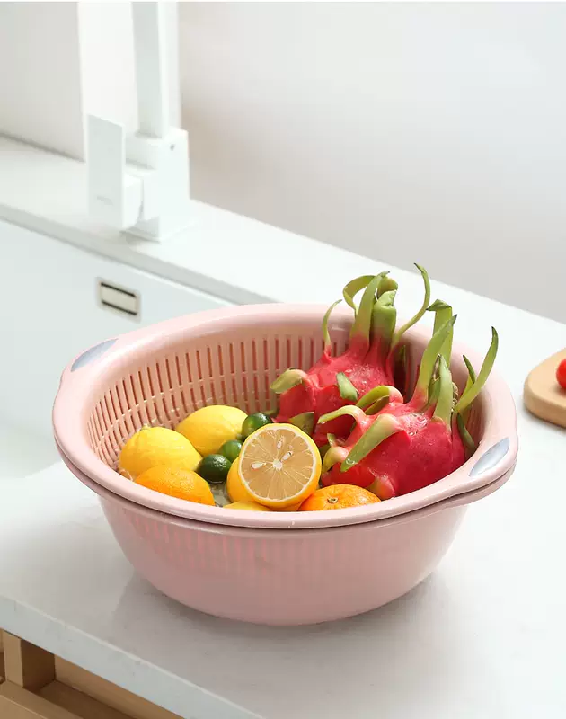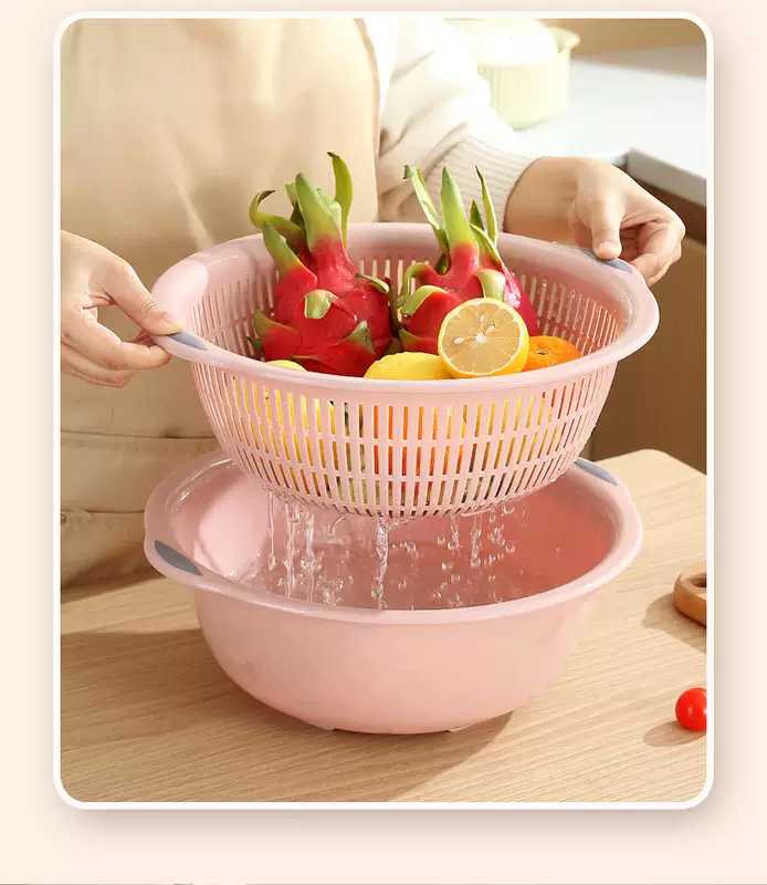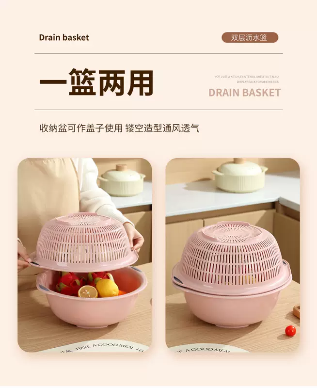 Yusenyi Large Kitchen Double-layer Plastic Dish Basin Dripping Fruit Basket Filter Basket Multi-purpose Washing Sieve Basket Draining Water Vegetable Basket Small Double-layer Pink 31.5x12cm