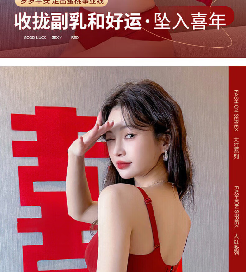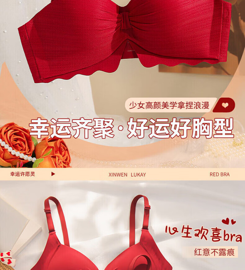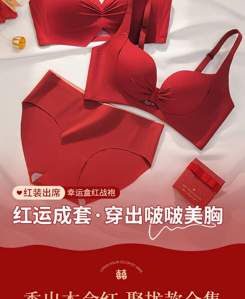 LA BRUKET Red Zodiac Year Women's Underwear Set Female Wedding Bride Sexy Small Breast Push Up Bra Year of the Horse Gift Box Red Underwear Set 002+ Gift Box 70A 32B 75-95Jin Jin equals 0.5 kg
