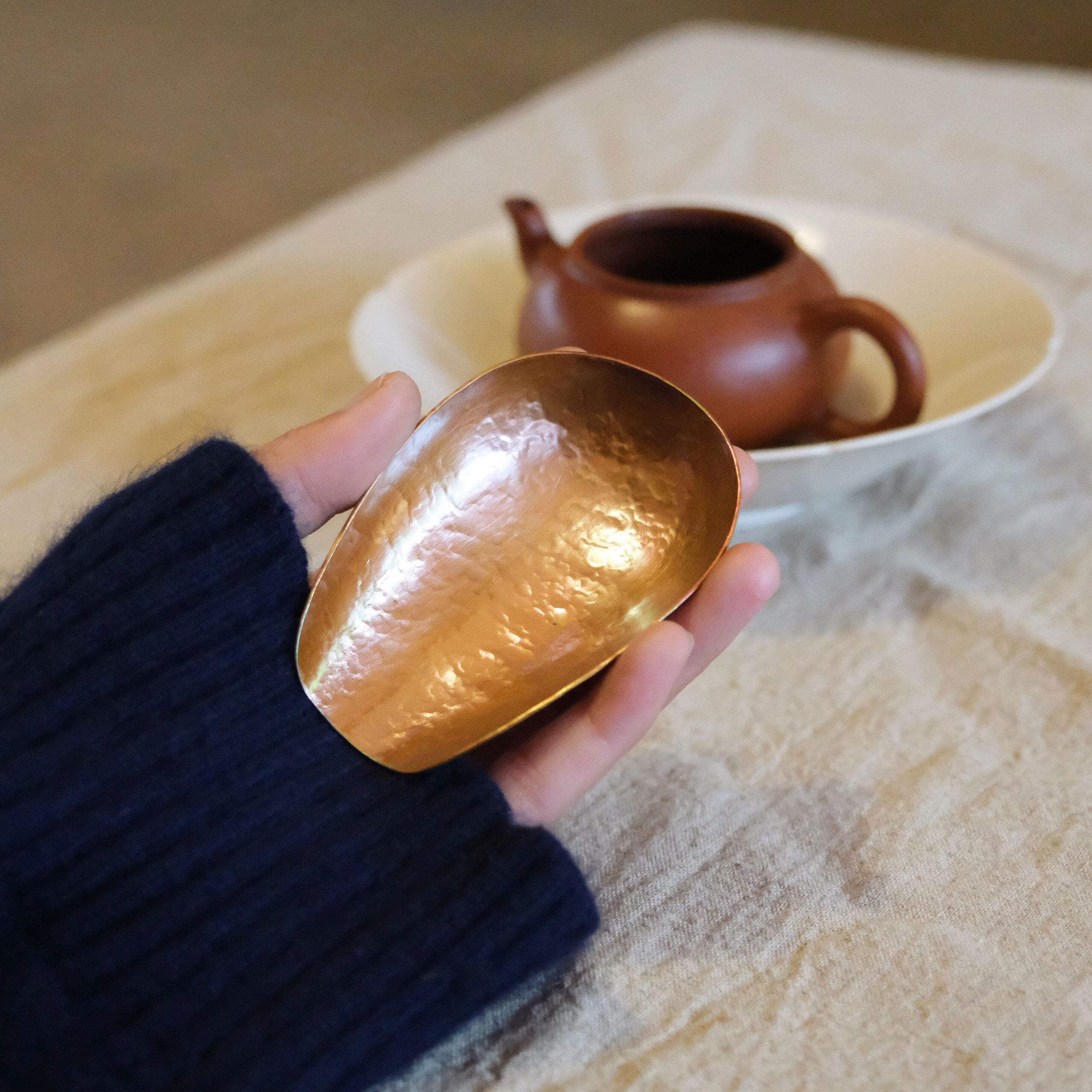 Sanqihu pure handmade copper mini tea spoon tea shovel teaspoon tea lotus six gentlemen retro Japanese style pure copper coffee beans mini tea tea spoon please be careful when photographing