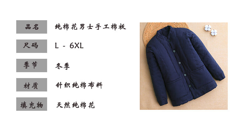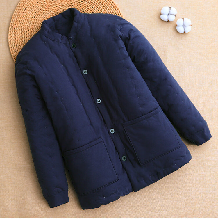 Luo Meng cotton handmade men's cotton-padded jacket in winter, thickened and warm inner cotton-padded jacket for dad, middle-aged and elderly adults, navy blue L recommended 90-105 Jin Jin equals 0.5 kg