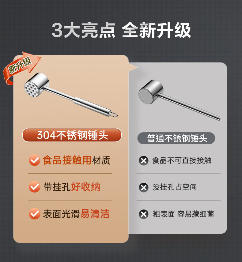 Xideli молоток для соснового мяса молоток для мяса из соснового мяса молоток для стейка специальный молоток для мяса молоток для домашней кухни молоток для отбивания мяса из нержавеющей стали молоток для мяса Supor поверхность ногтя + гладкая поверхность двусторонняя