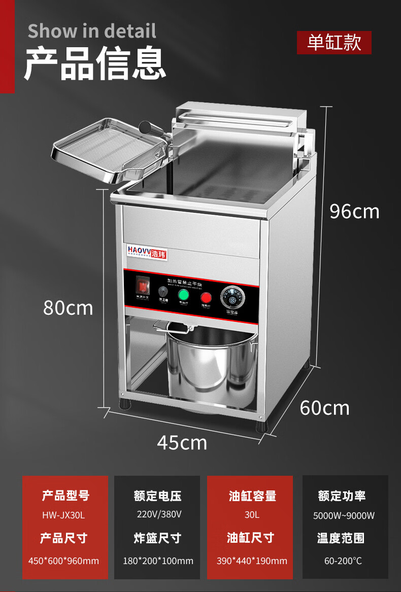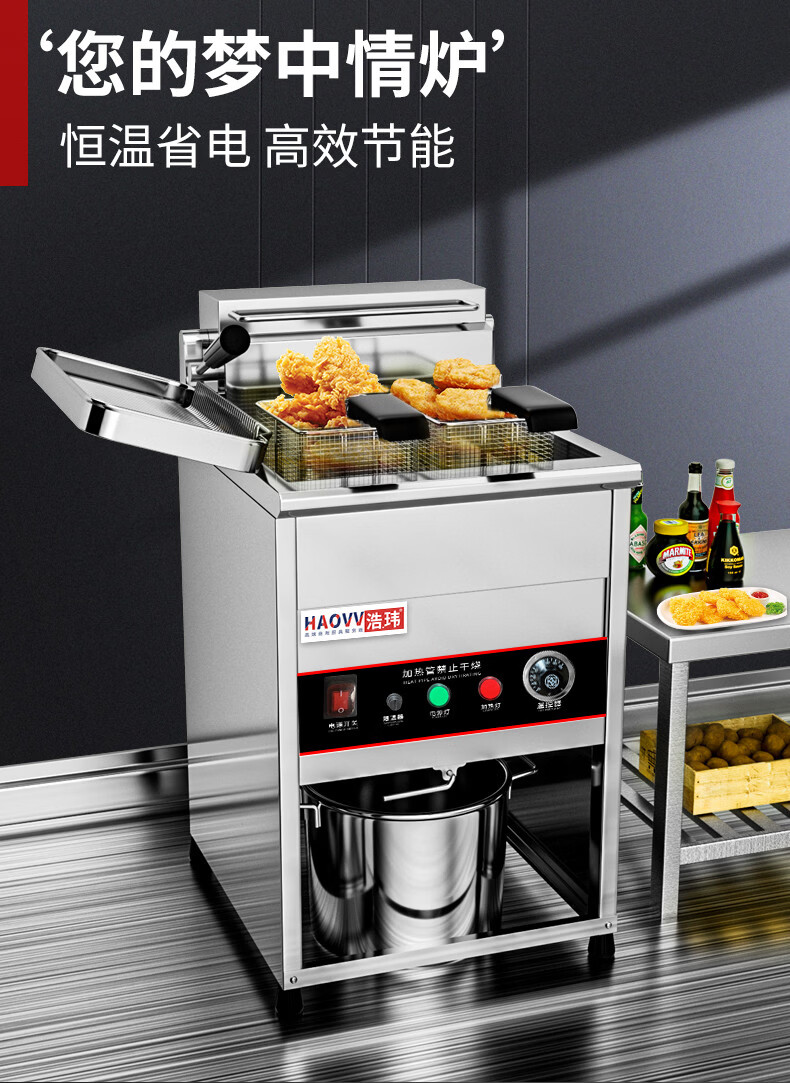 Yusenyi commercial vertical electric fryer 30 liters double-cylinder constant temperature fried chicken steak machine double-cylinder electric fryer stainless steel fried skewers Buy with confidence and get free shipping insurance for large items when placing an order 0 inches