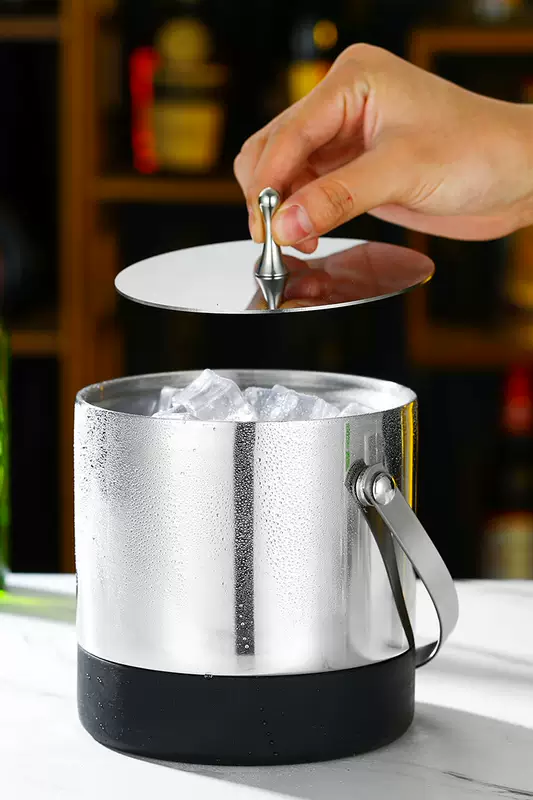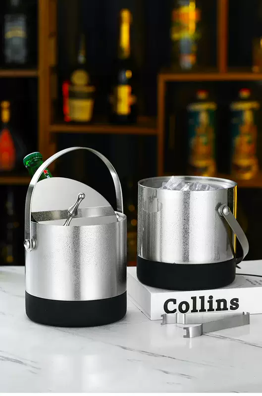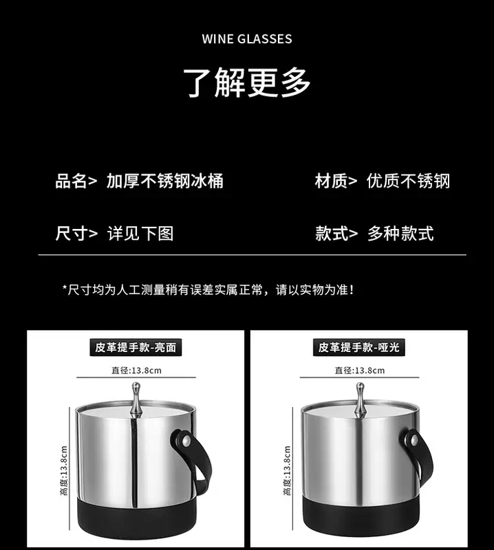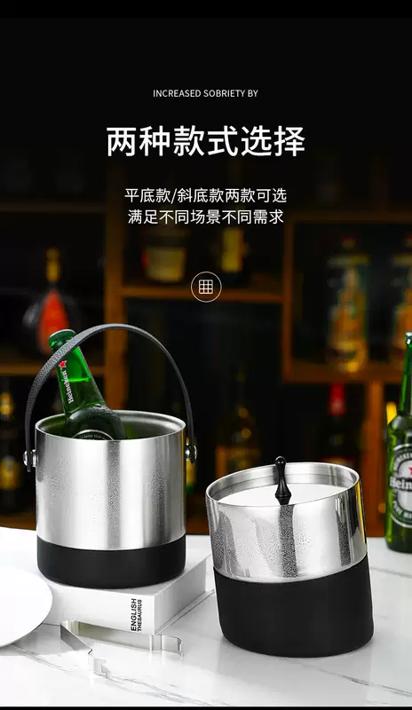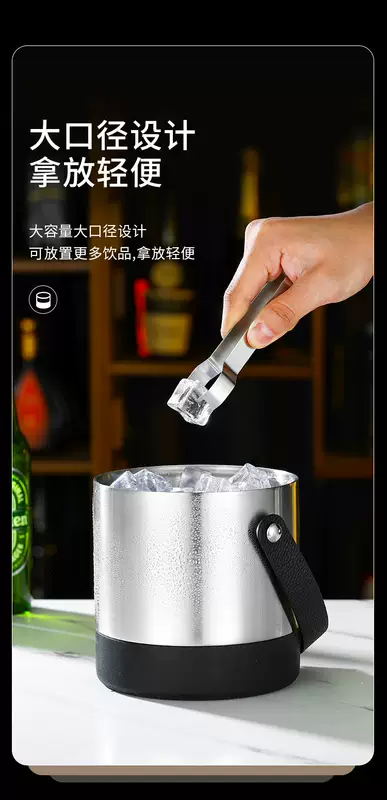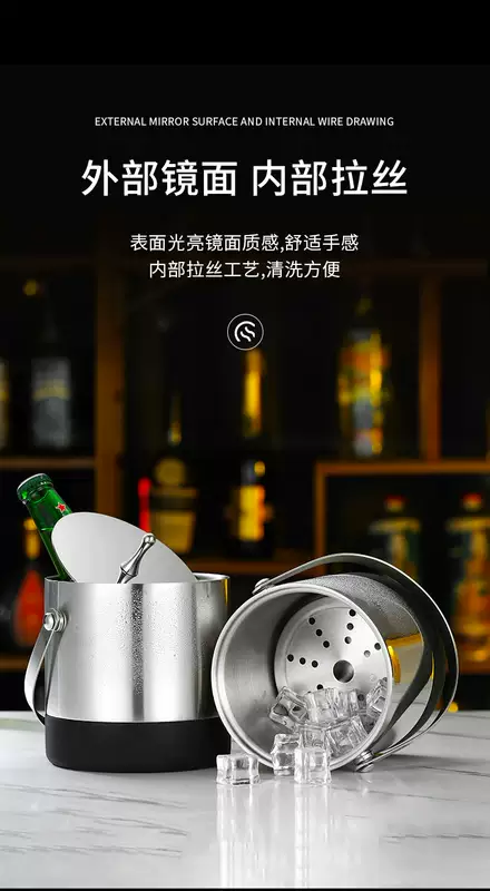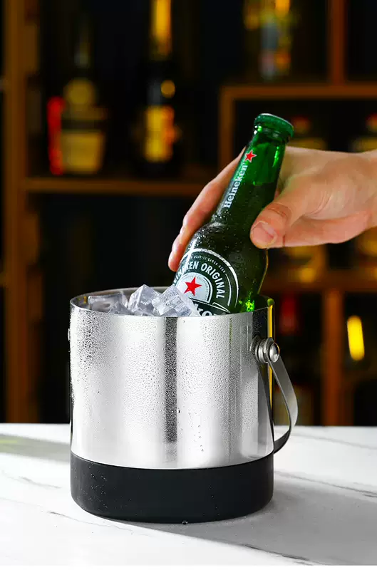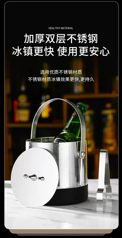 Yusenyi 304 stainless steel ice bucket champagne bucket red wine foreign wine beer ice bucket ktv bar insulation ice wine bucket ice bucket thickened inclined mouth ice bucket (silver) bright
