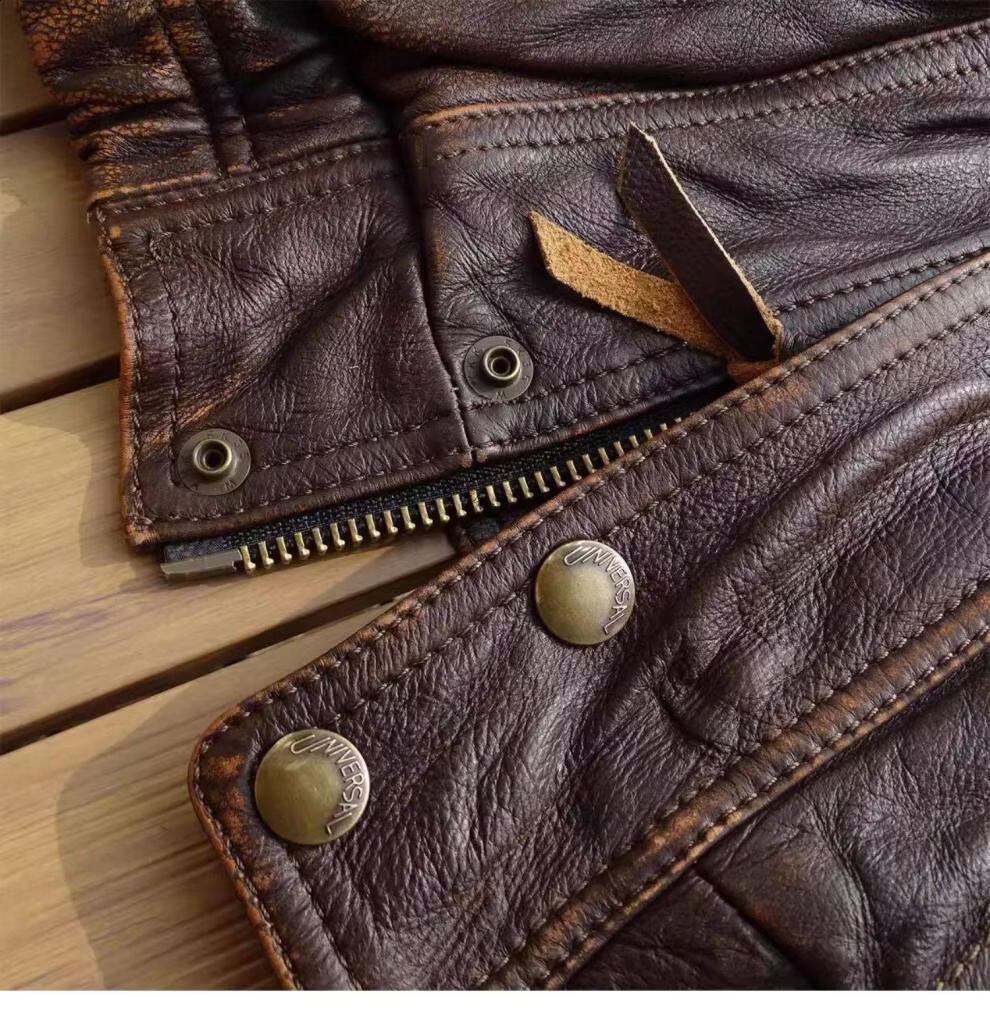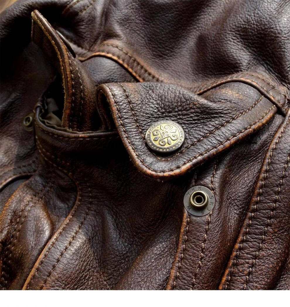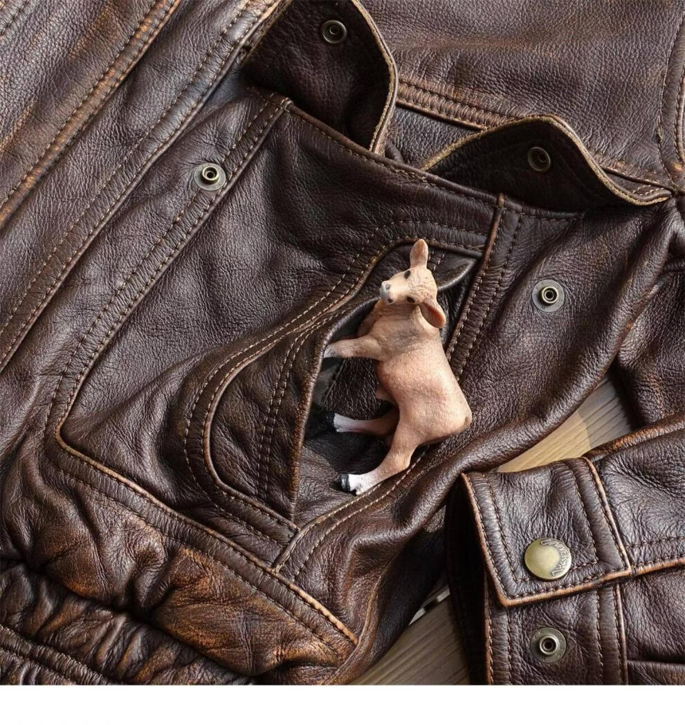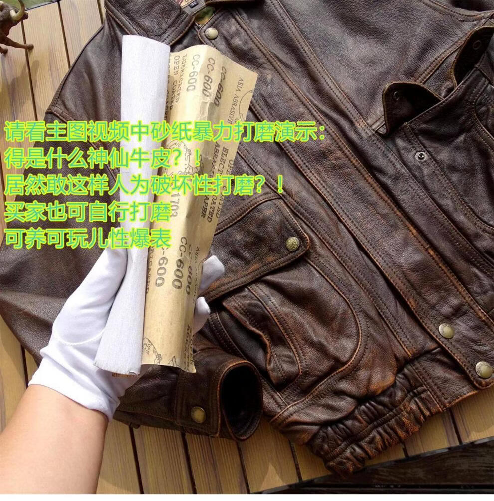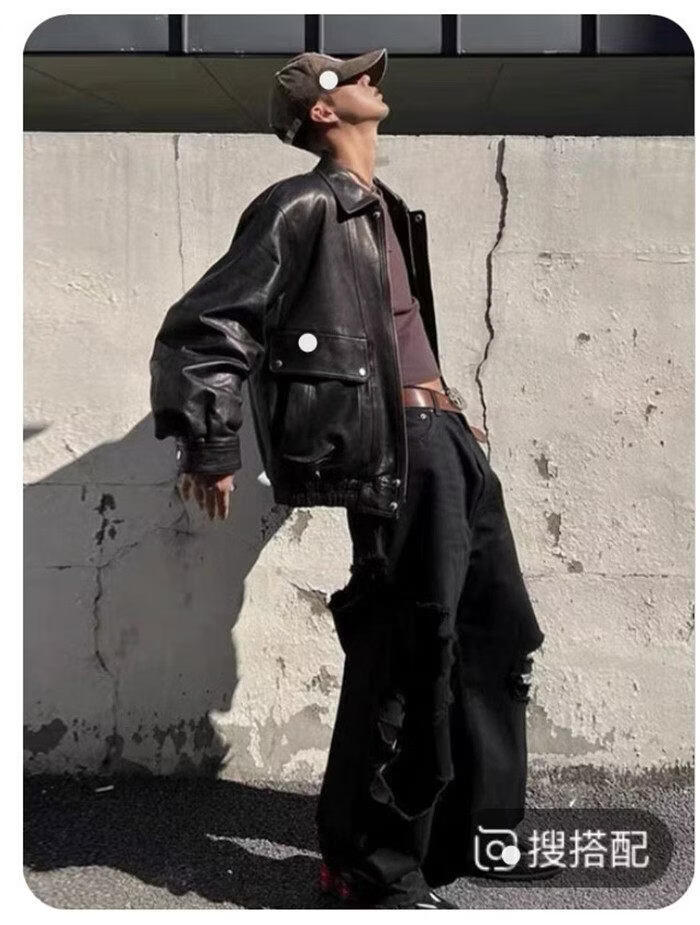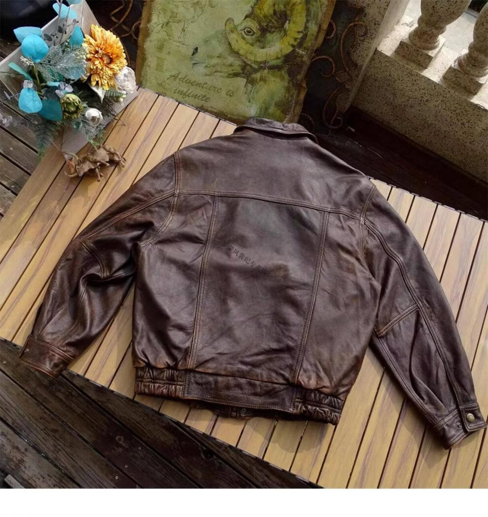 ROMON unisex retro loose large profile American retro heavy washed faded old Bengal tea core cowhide tea core ancient coffee unisex S women's wear
