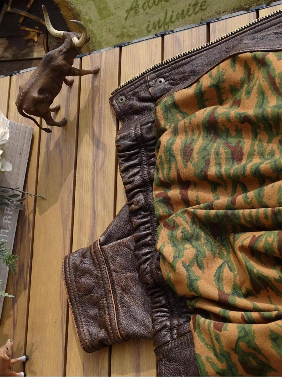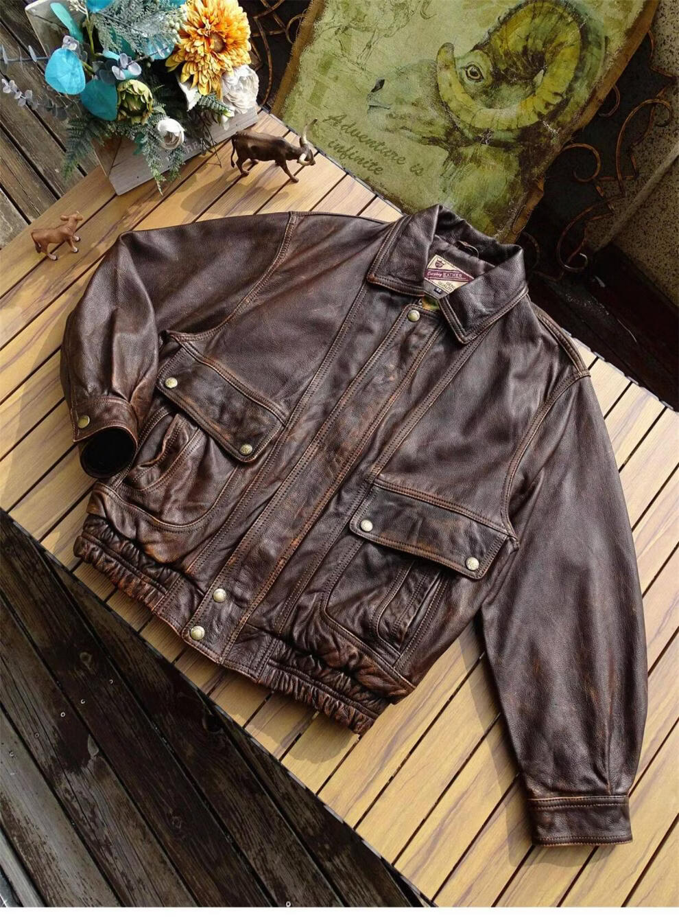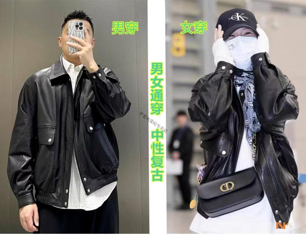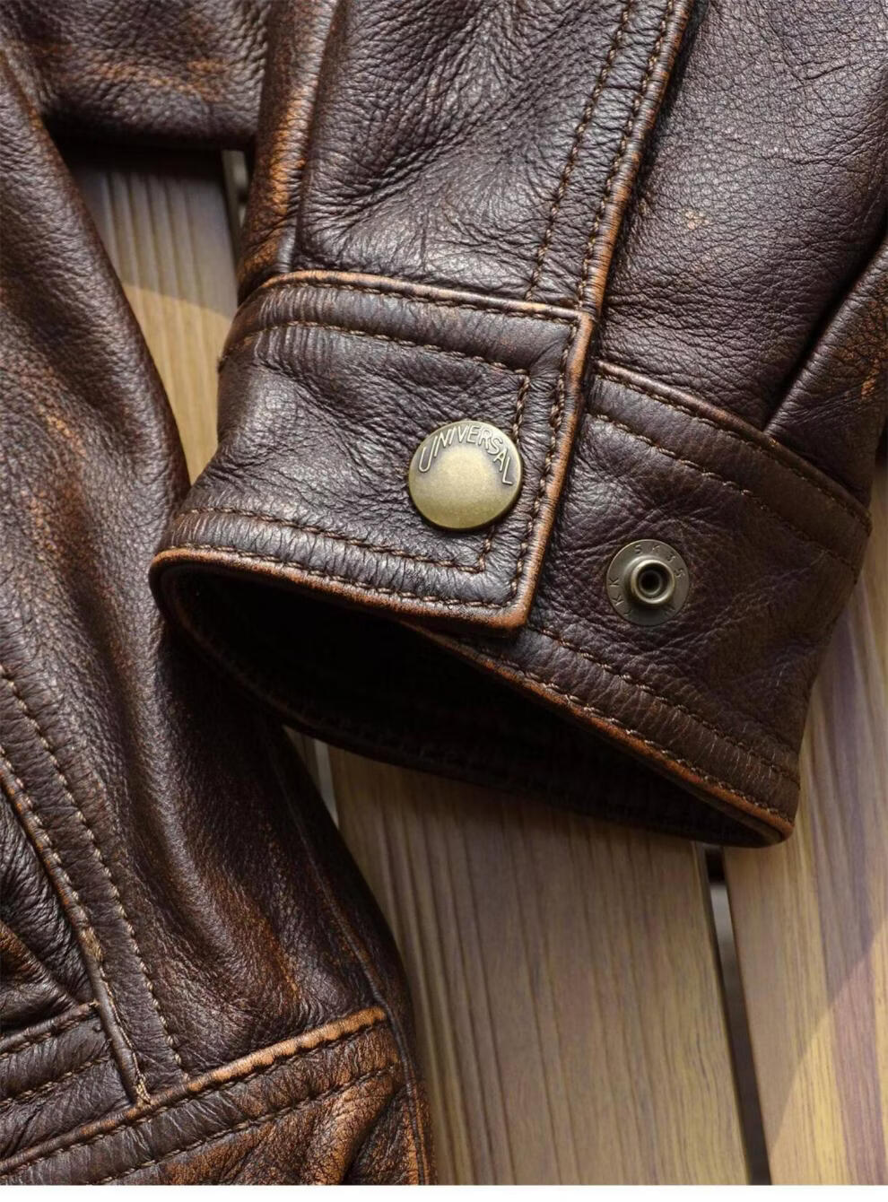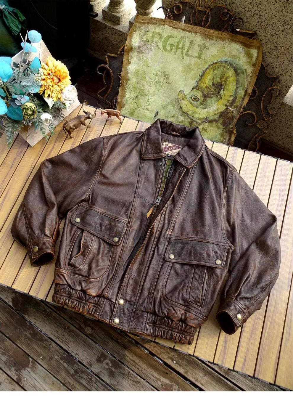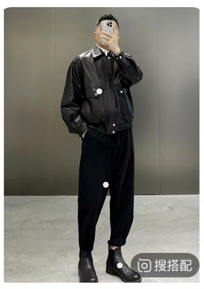 ROMON unisex retro loose large profile American retro heavy washed faded old Bengal tea core cowhide tea core ancient coffee unisex S women's wear