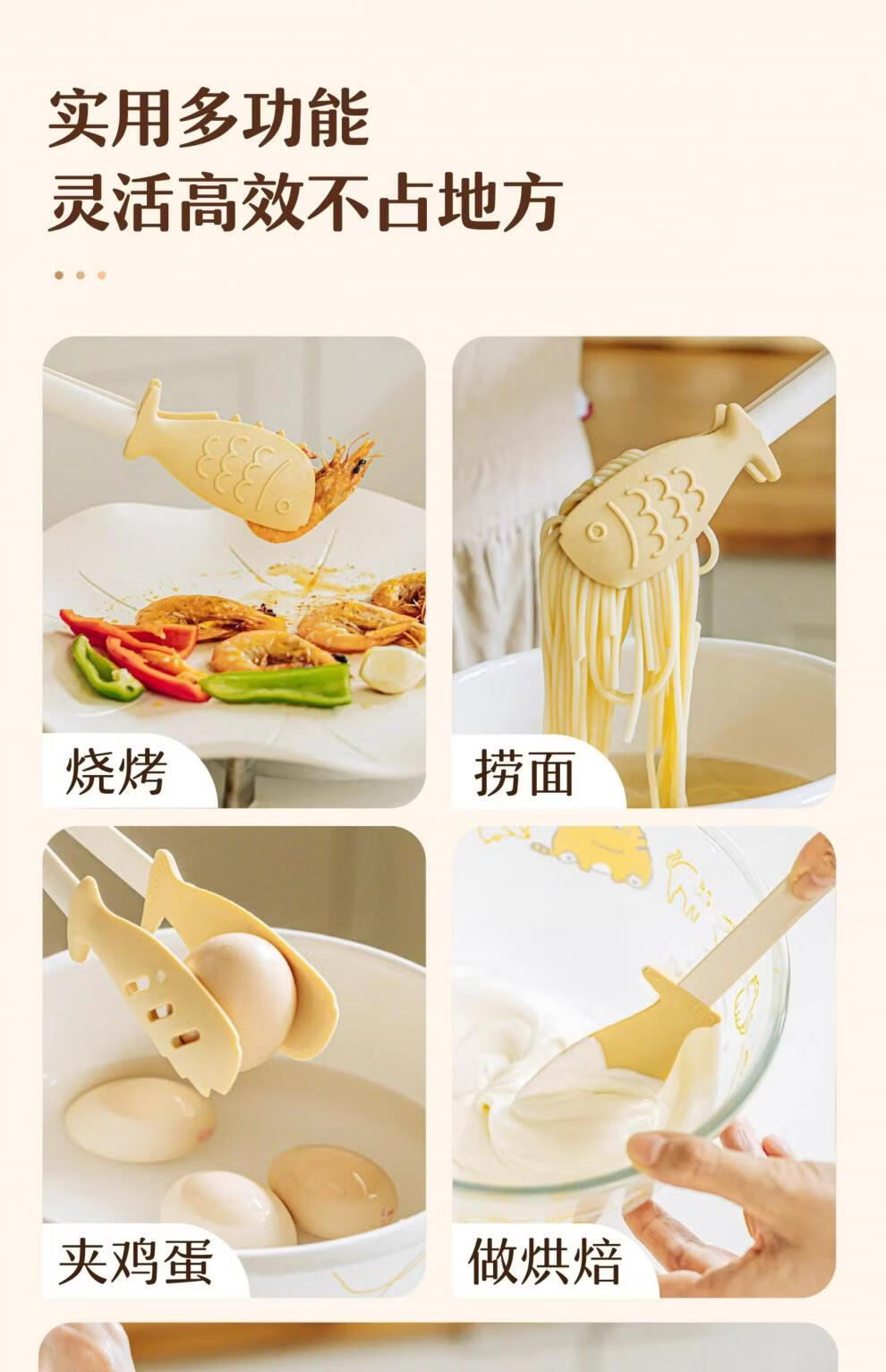 WALPHIN Clips Kitchen Fish Duoduo Clips Kitchen Barbecue Food Food Clamps Cooking Sub-Foods High Temperature Resistant Silicone BBQ 2-piece Set Fish Duoduo + Delicatessen Scissors