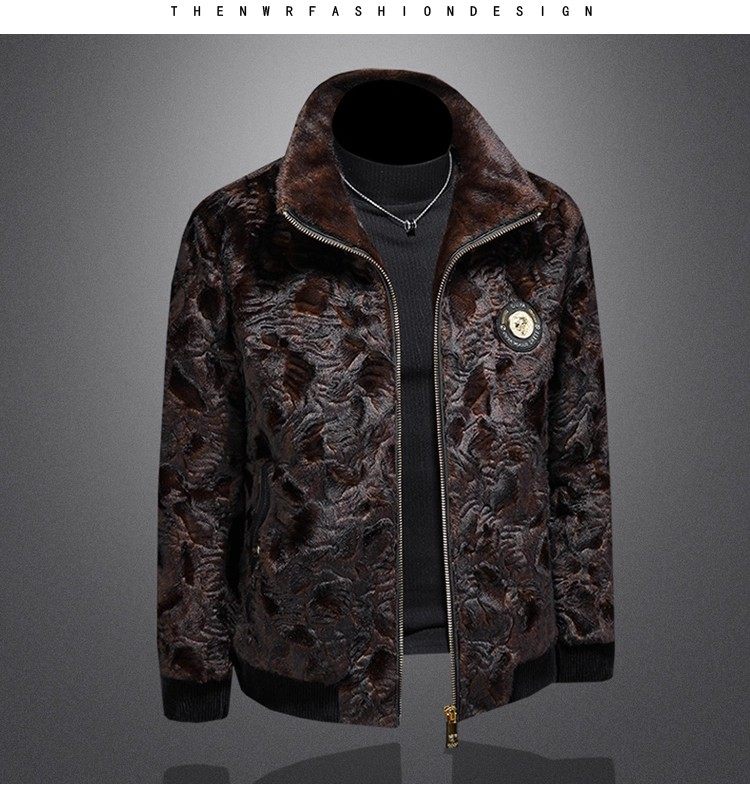 GENIUS international first-line brand gold mink velvet jacket men's fur integrated 2025 new men's mink velvet jacket high-end winter wear brown M 100-125Jin Jin equals 0.5 kg