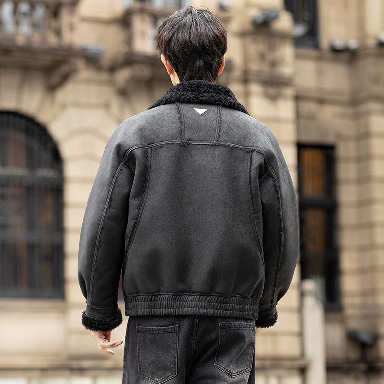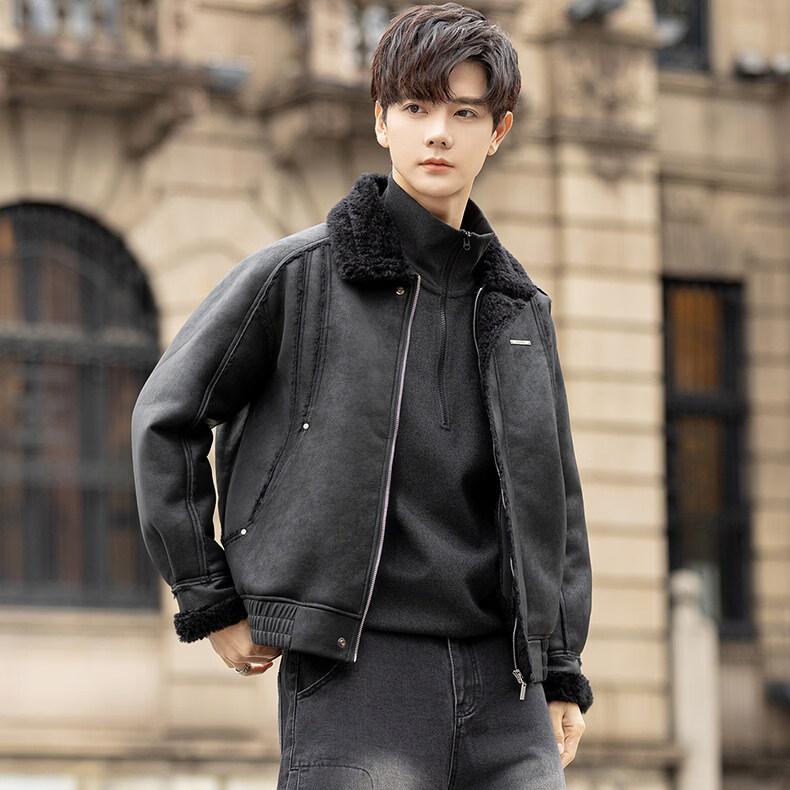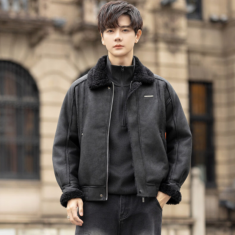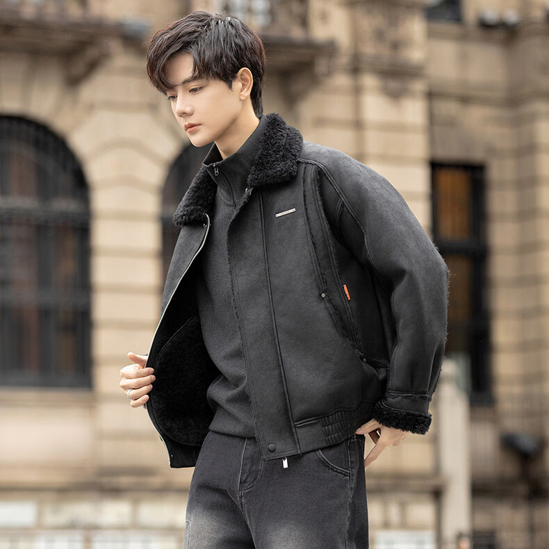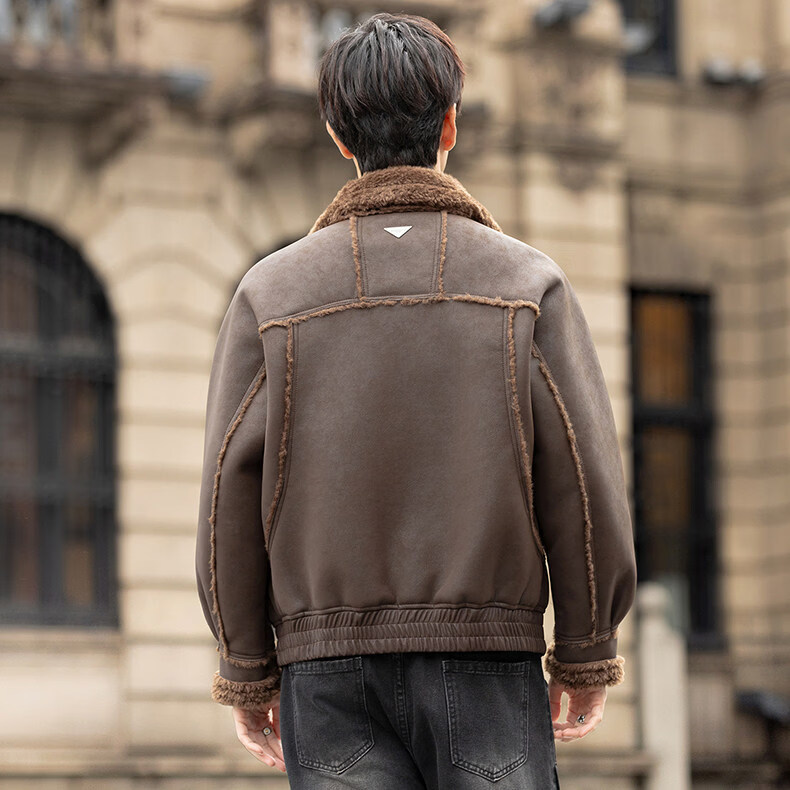 GENIUS国际一线品牌皮毛一体外套男冬季潮牌羊羔毛夹克加绒加厚羊羔绒棉 咖啡色 M