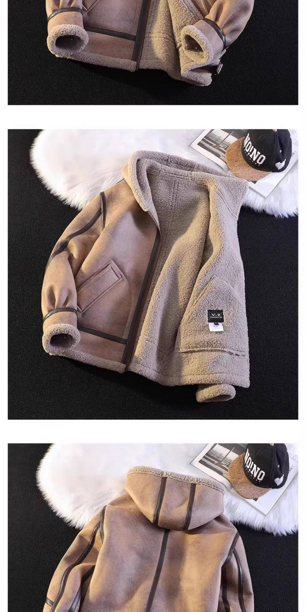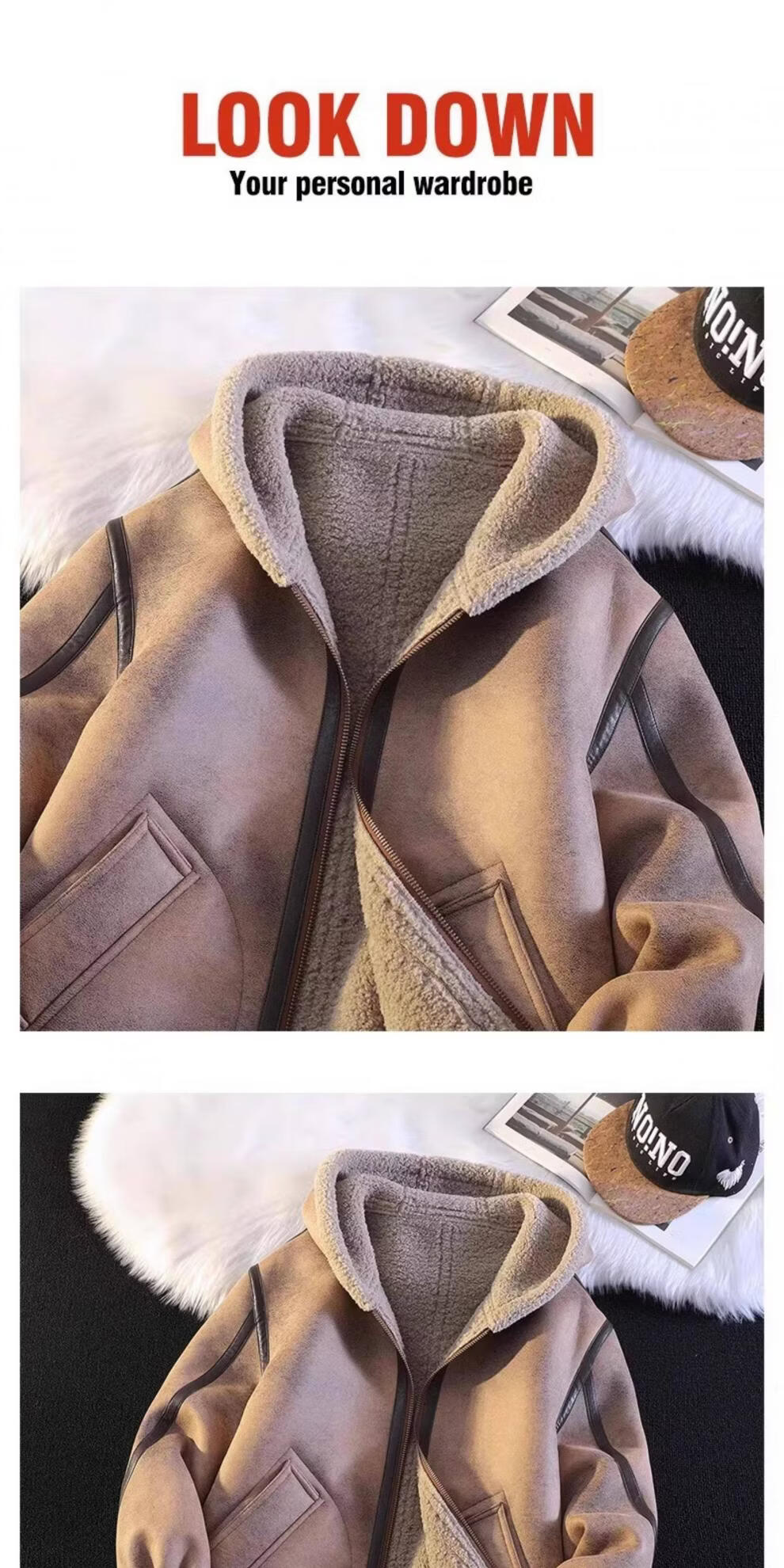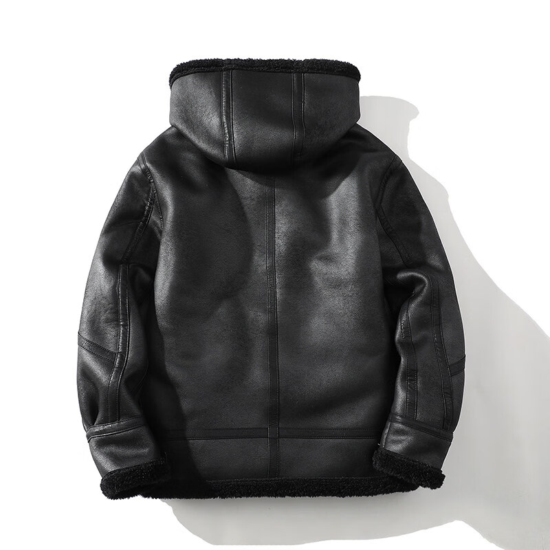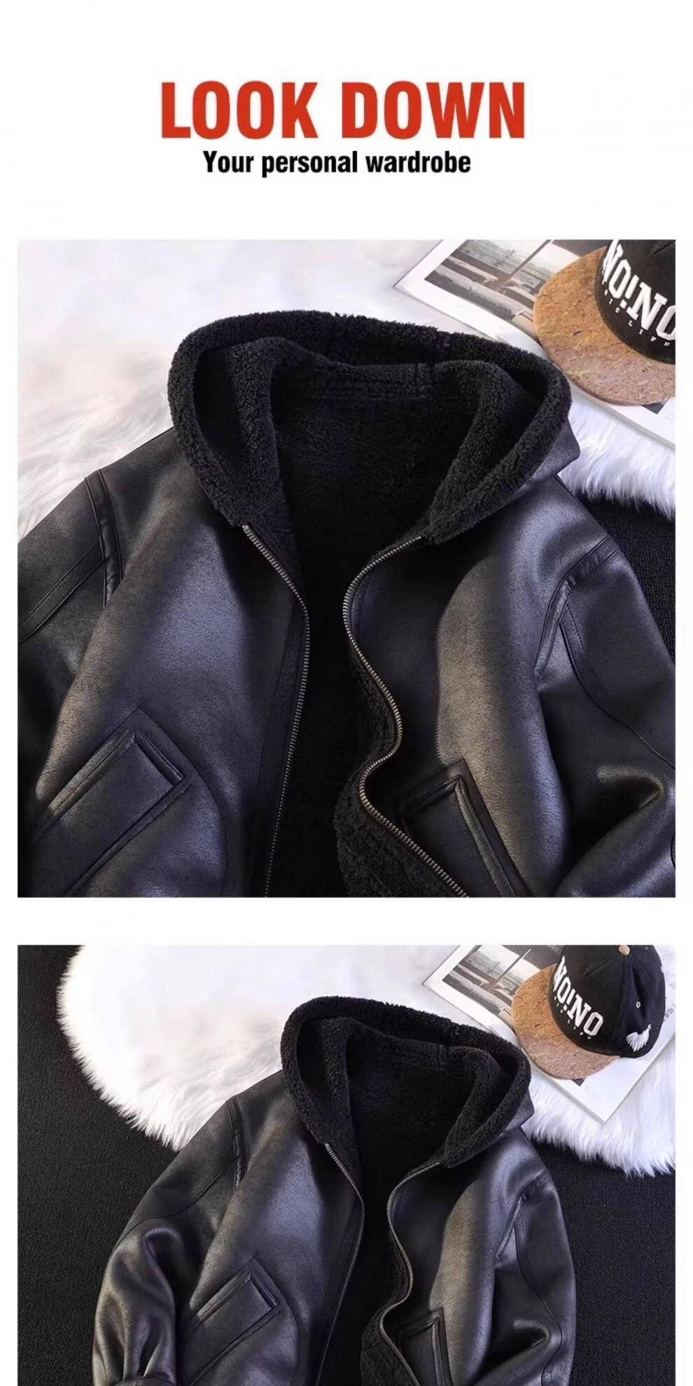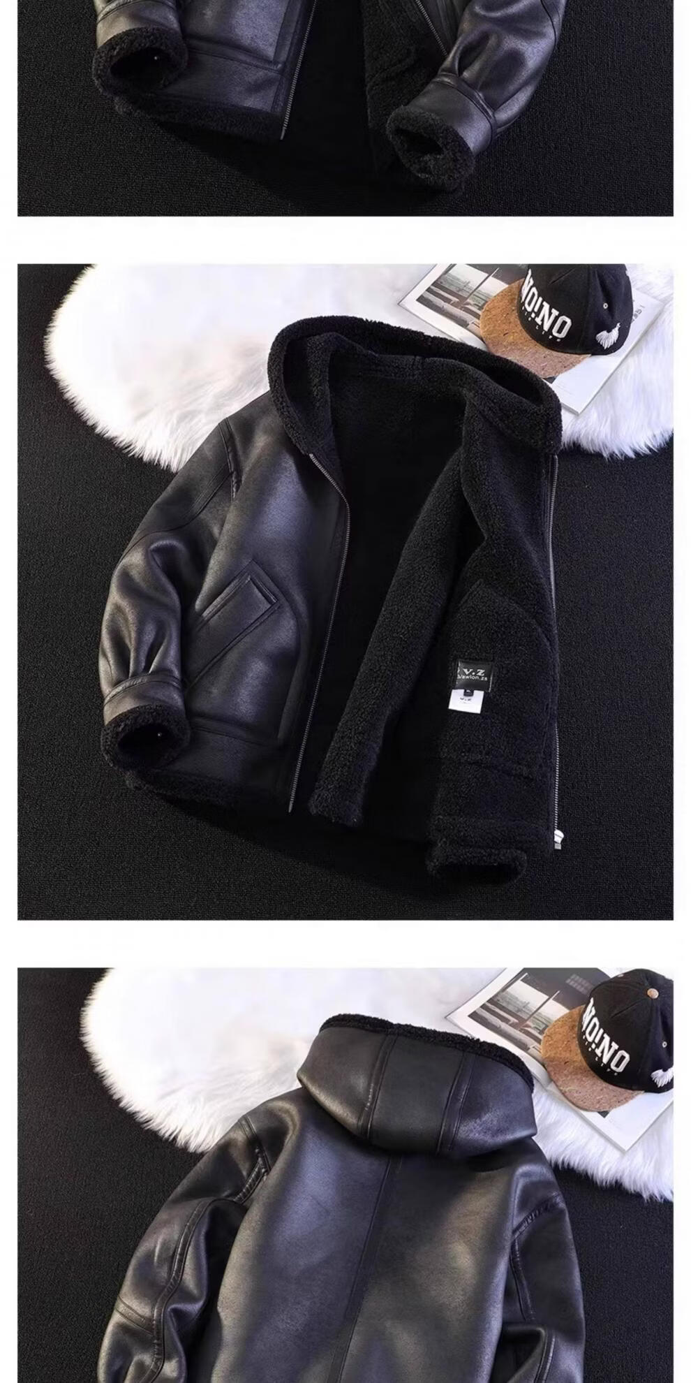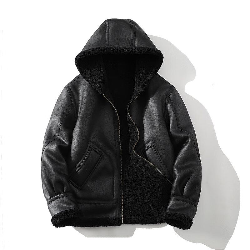 GENIUS international first-line brand fur integrated men's winter hooded velvet thickened leather jacket short motorcycle jacket leather jacket for men black M 90-115Jin Jin is equal to 0.5 kg