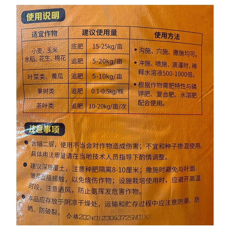 化肥农用尿素肥料80斤氮肥通用型复合肥水溶种菜种果树肥 40kg黄色颗粒