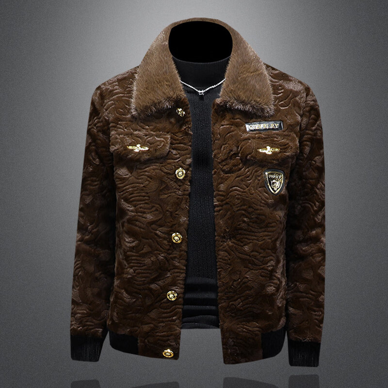 GENIUS国际一线品牌金貂绒外套男皮毛一体2025新款男士貂绒夹克高端冬装 棕色 M 【100-125斤】
