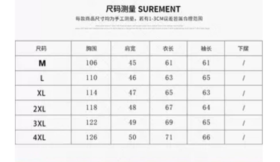 China S M L XL XXL XXXL