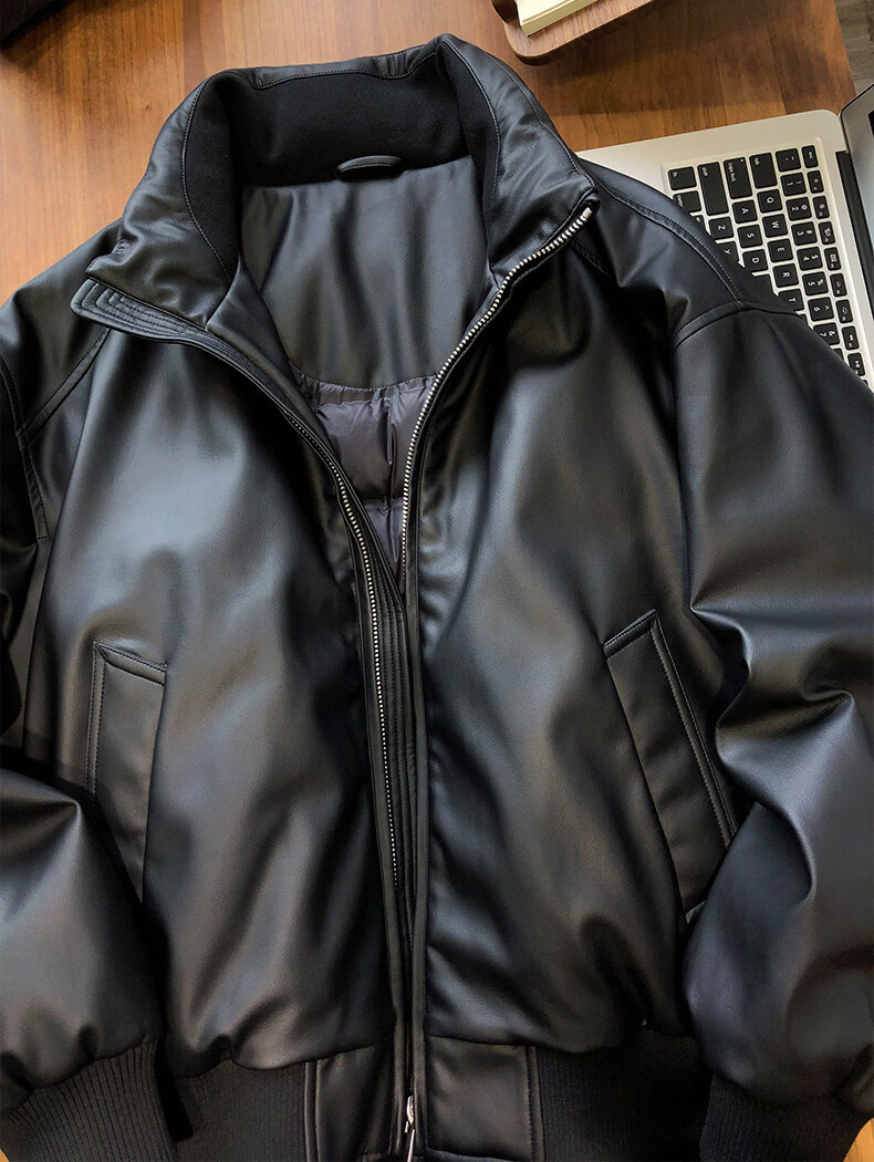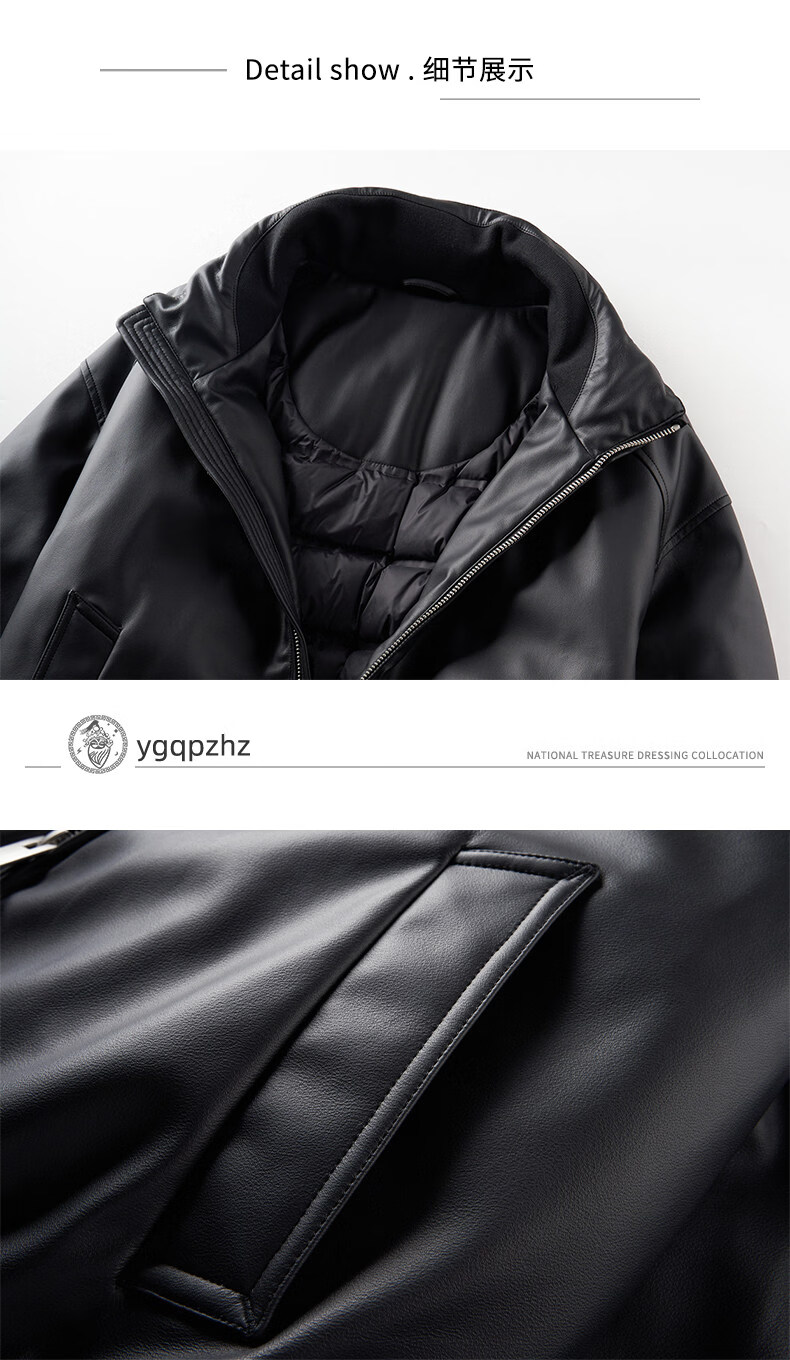 GENIUS international first-line brand plant protein soft leather thickened 90 white duck down motorcycle leather jacket men's winter new style black 90 white duck down warm and loose version M 90-120Jin Jin equals 0.5 kg