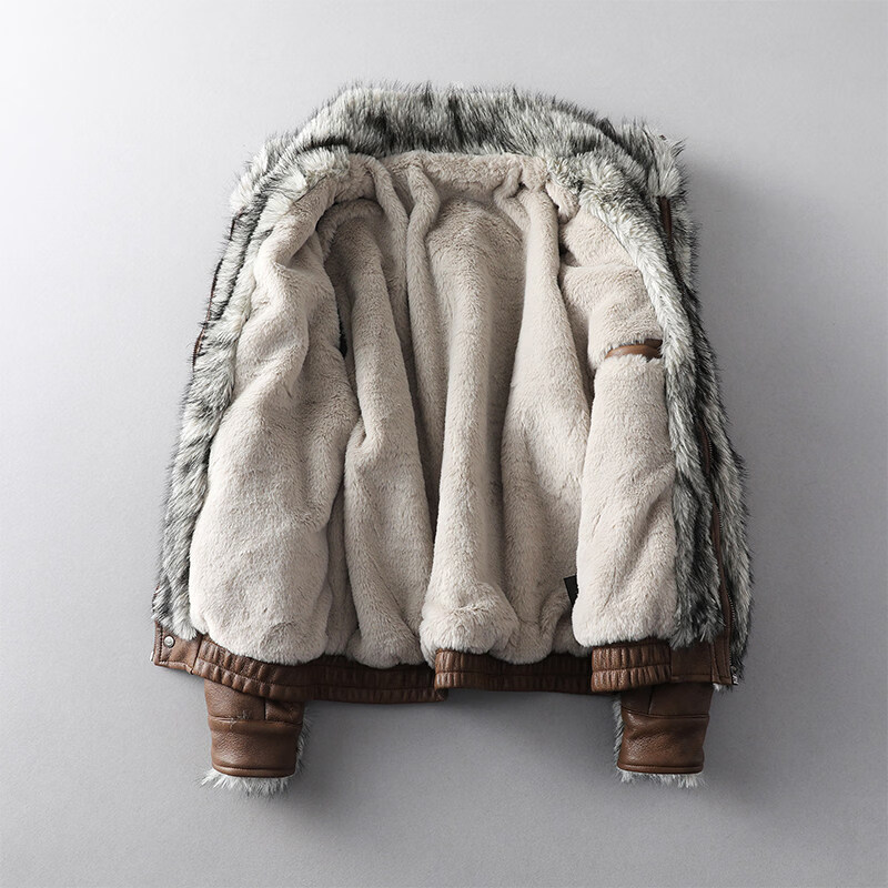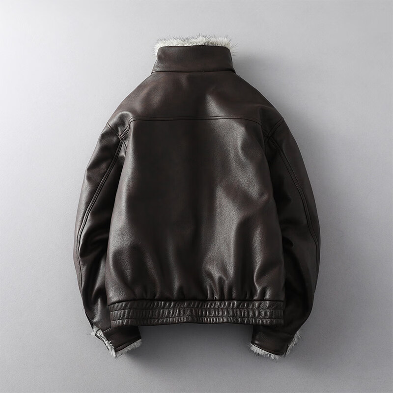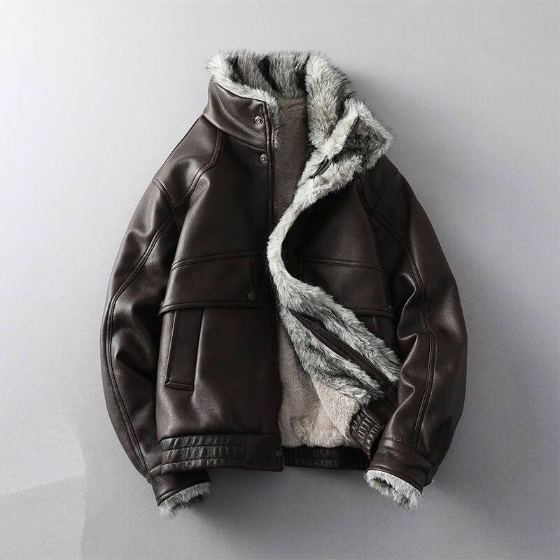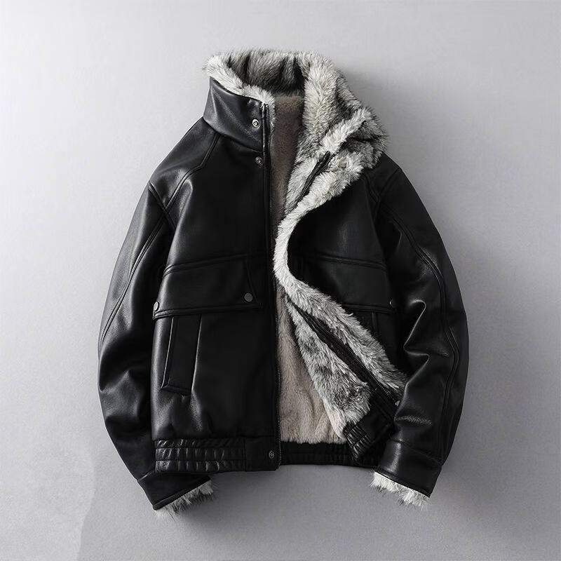 GENIUS international first-line brand fur integrated men's winter loose velvet thickened leather jacket short motorcycle jacket leather jacket for men black M 90-125Jin Jin is equal to 0.5 kg