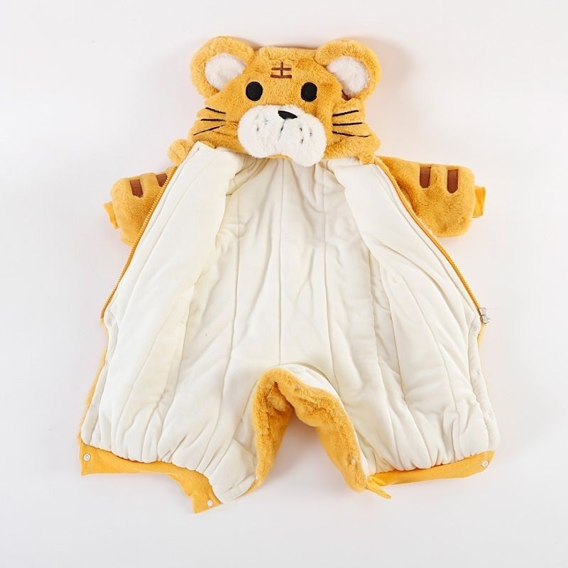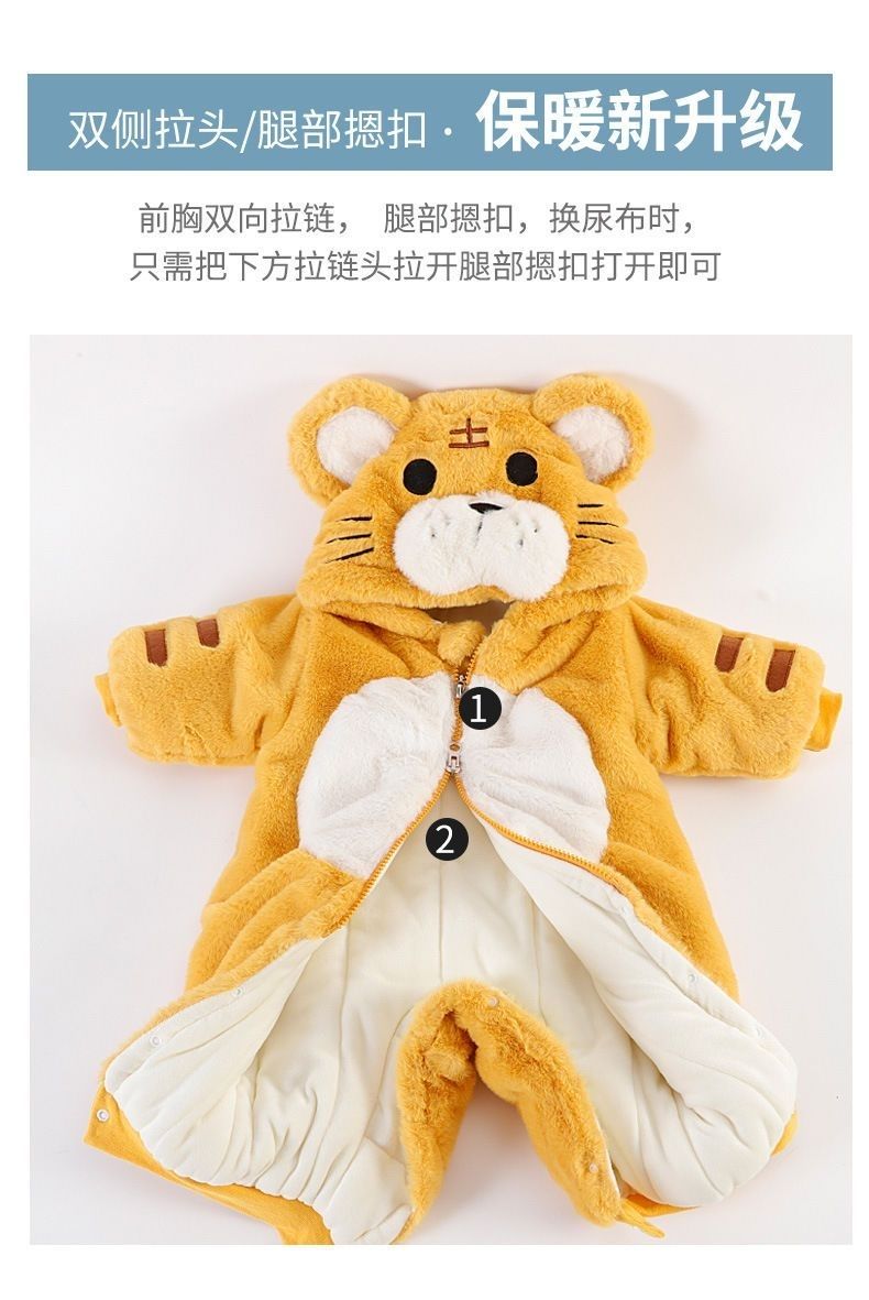 Ultraman baby winter clothes newborn plus velvet thickened jumpsuit 100-day New Year's clothing for baby boy three-layer New Year's greetings romper suit red with bag tiger and rabbit fur vest 66cm recommended 0-3 months