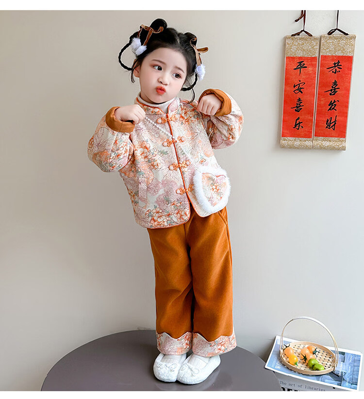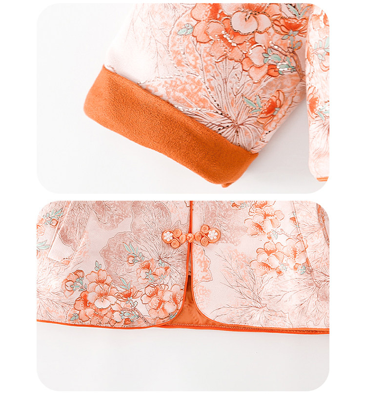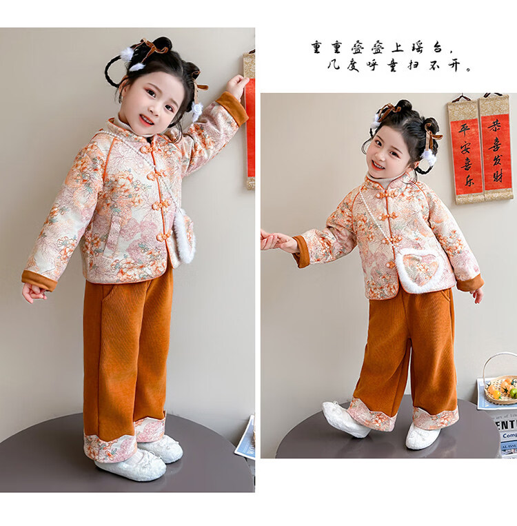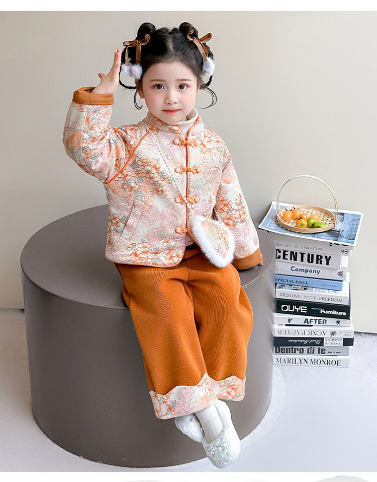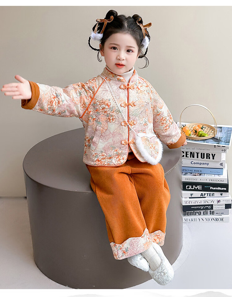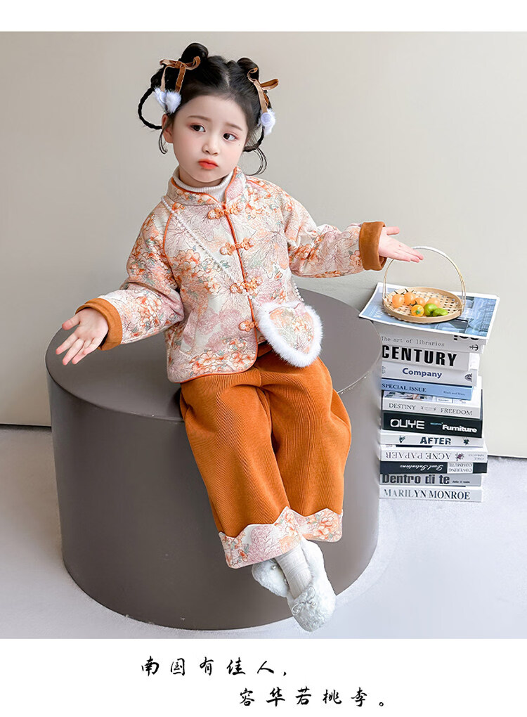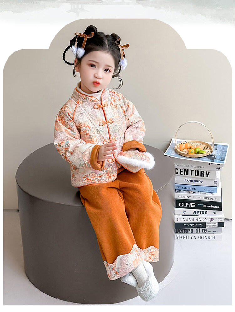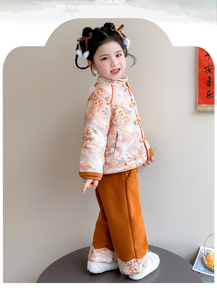 HAL.DUCK Girls' New Chinese Tang Suit Suit Autumn and Winter 2026 New Children's National Style Hanfu Baby Girl New Year's Clothes Winter Clothes Orange Free Bag 130 cm