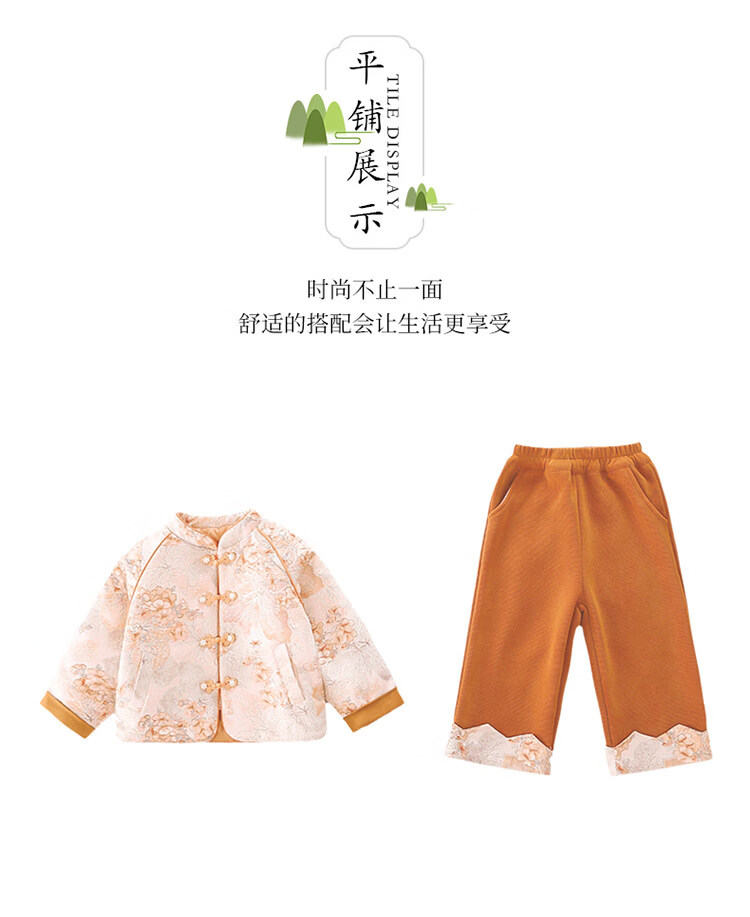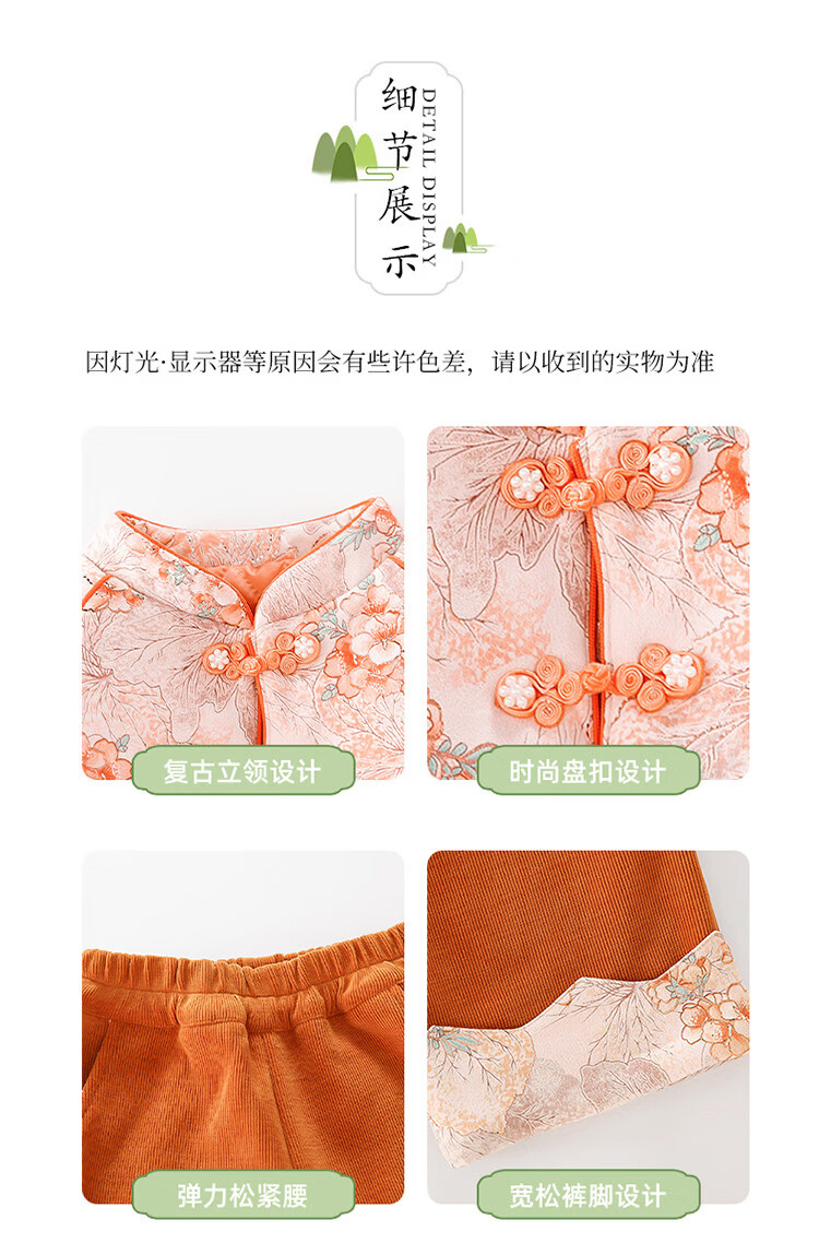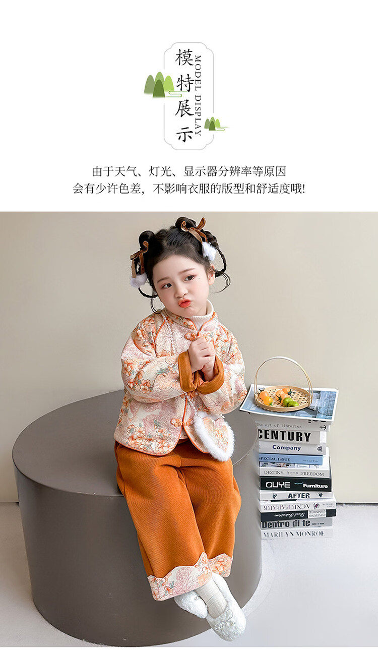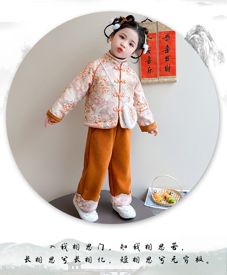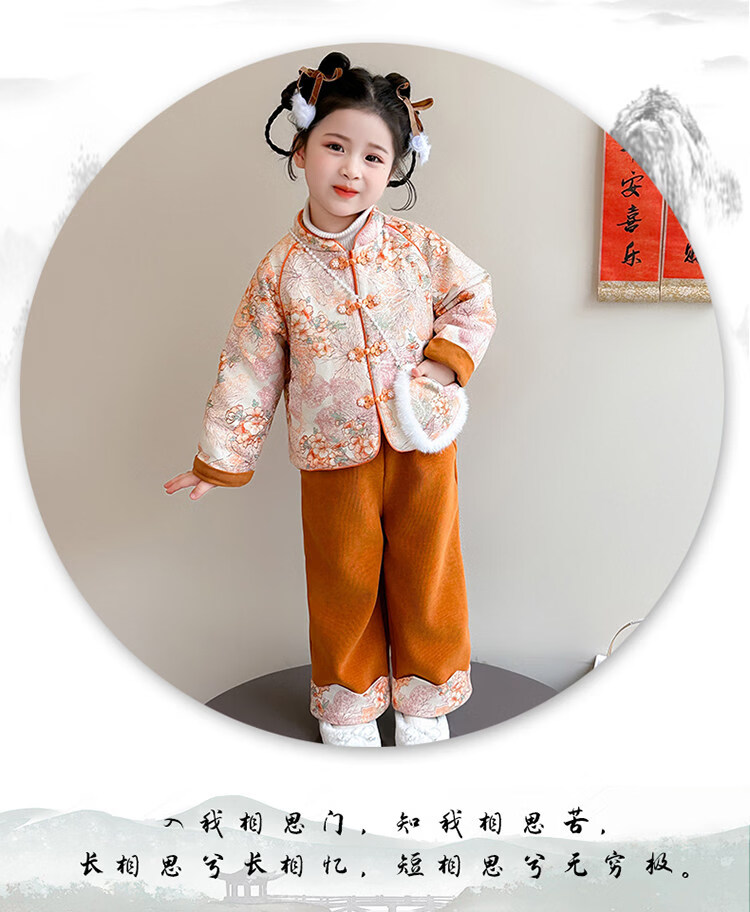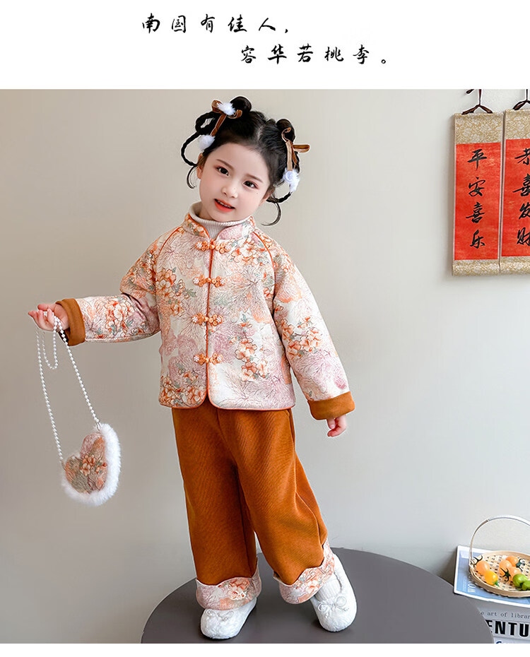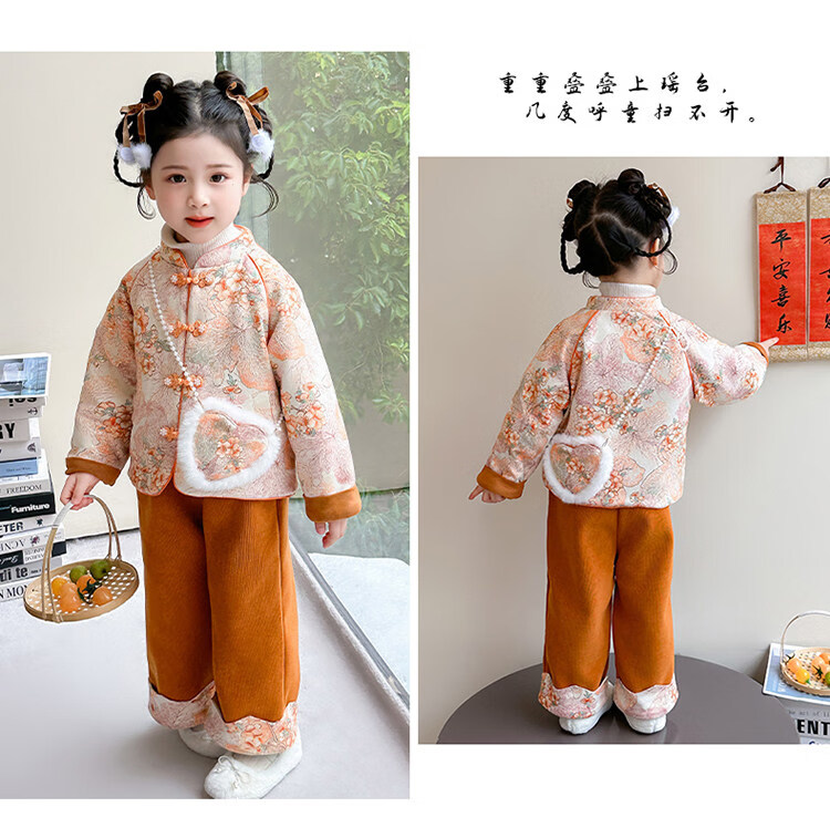 HAL.DUCK Girls' New Chinese Tang Suit Suit Autumn and Winter 2026 New Children's National Style Hanfu Baby Girl New Year's Clothes Winter Clothes Orange Free Bag 130 cm