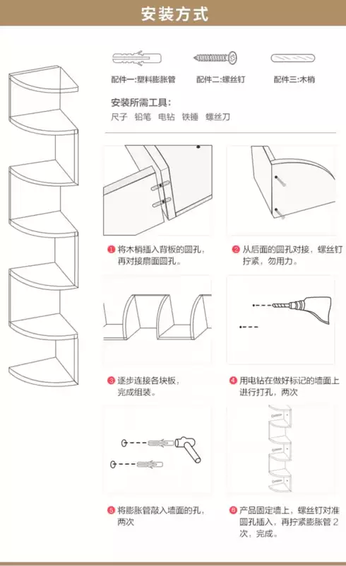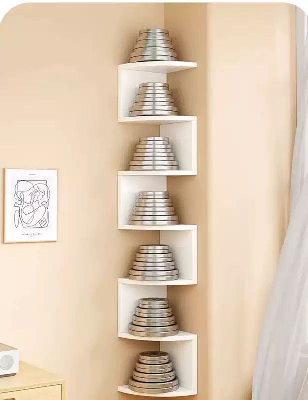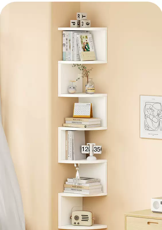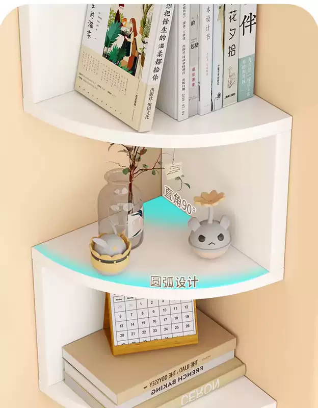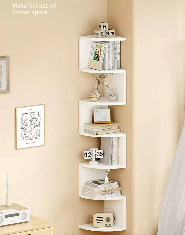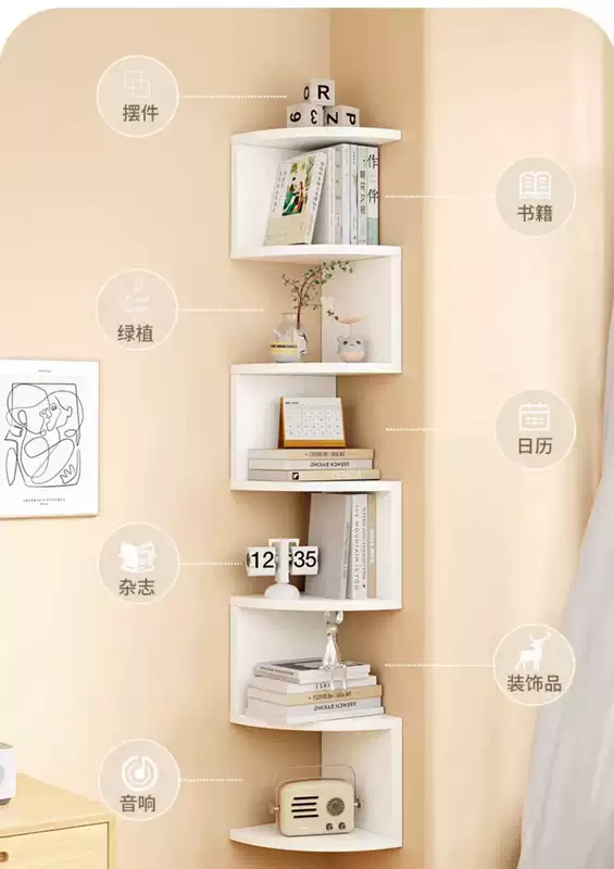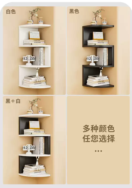 Yusenyi wall storage rack bedroom wall corner storage partition corner wall hanging bookshelf bedside corner triangular storage cabinet black and white 3 layers radius 20cm (free nail glue non-marking expansion screws)