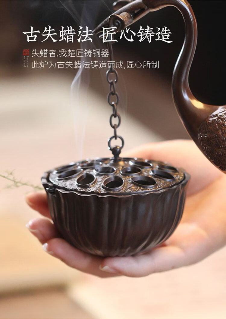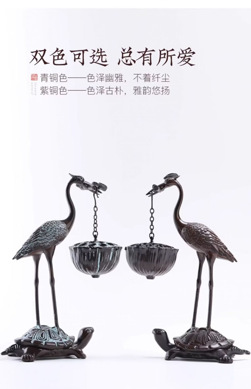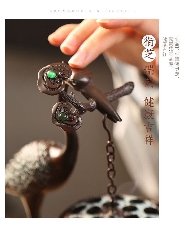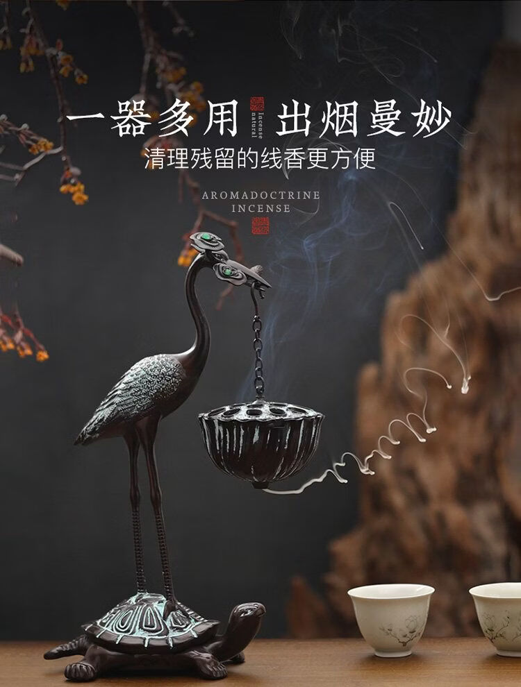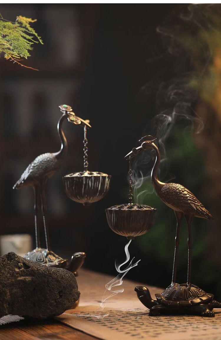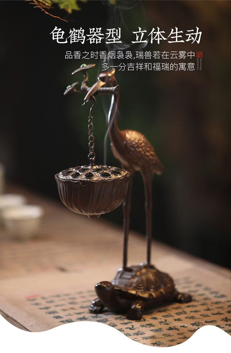 Shantou Lincun Big Crane Backflow Copper Stove Household Sandalwood Incense Decoration Crane and Royal Turtle (Hanging Furnace Copper Color + Ring
