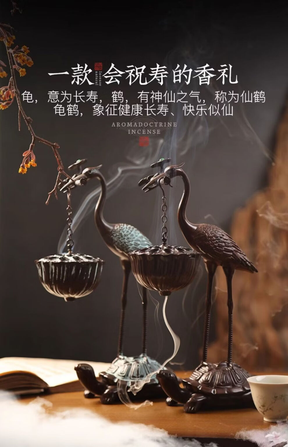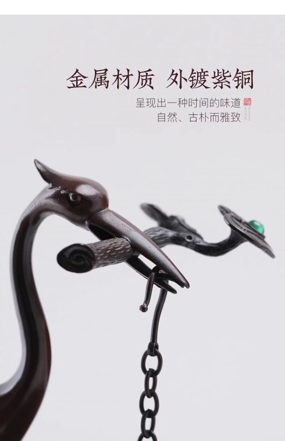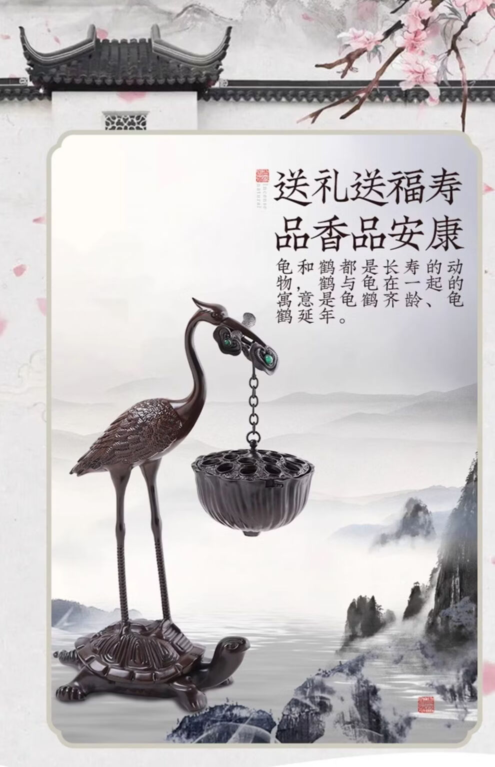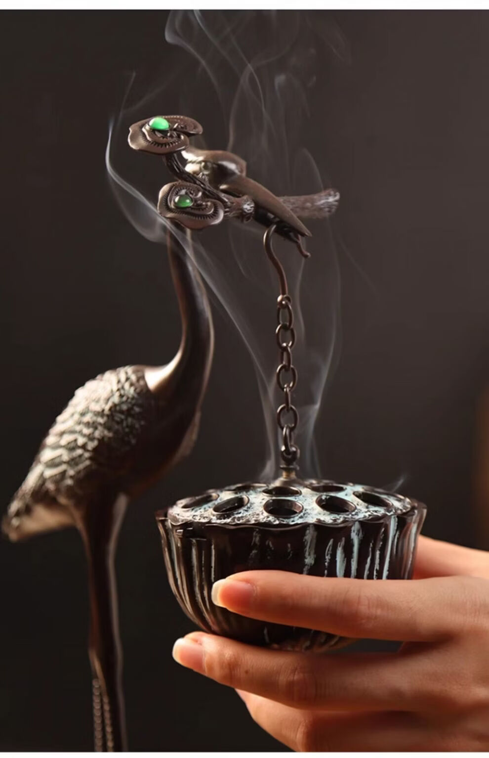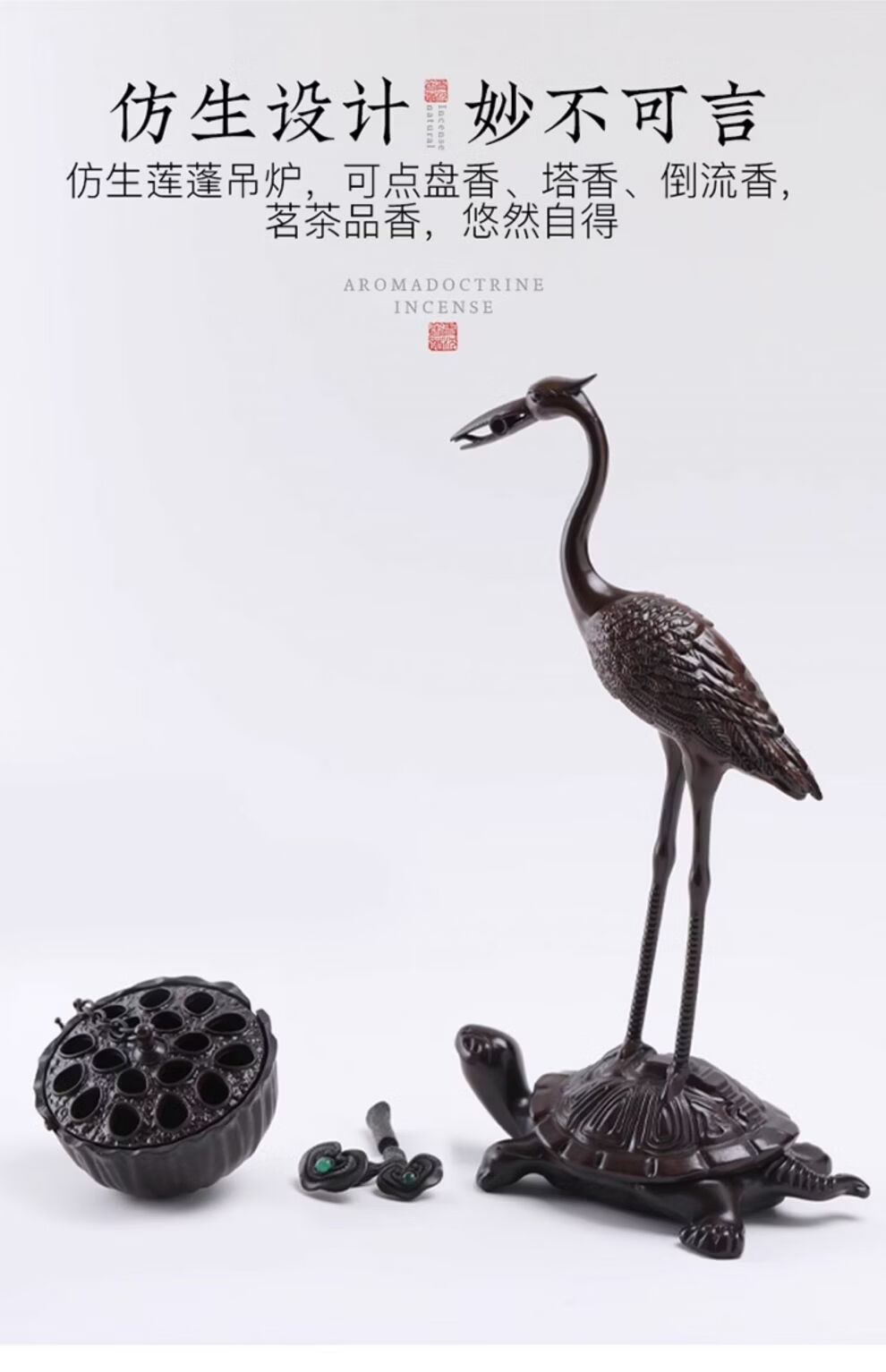Shantou Lincun Big Crane Backflow Copper Stove Household Sandalwood Incense Decoration Crane and Royal Turtle (Hanging Furnace Copper Color + Ring