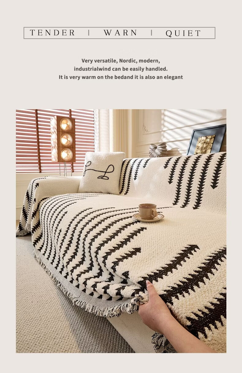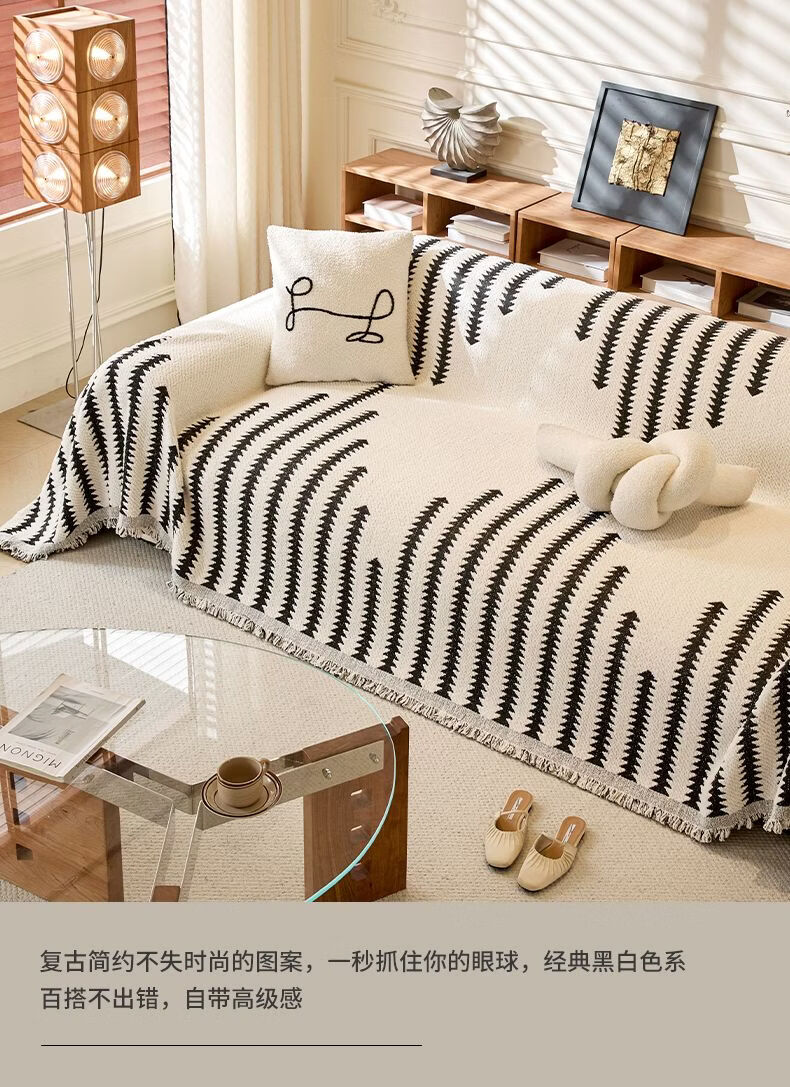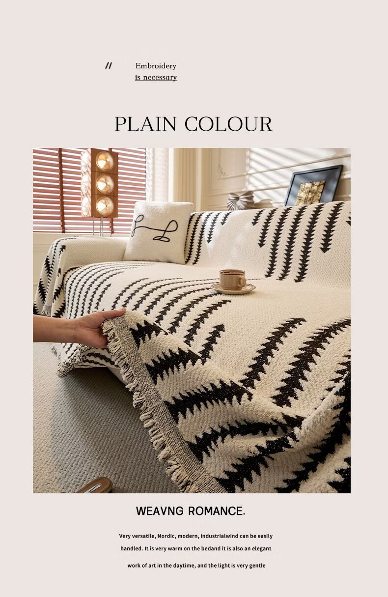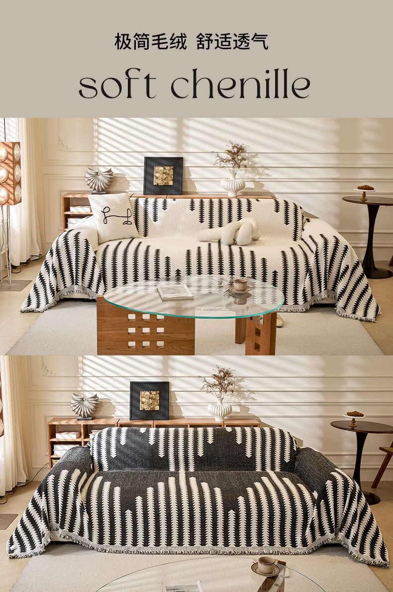 Cat-sense sofa cover Nordic style plush full blanket blanket for all seasons 2025 new cover Chenille-Jiuyi-black and white U-shaped sofa 180300cm two pieces + 180260cm one piece