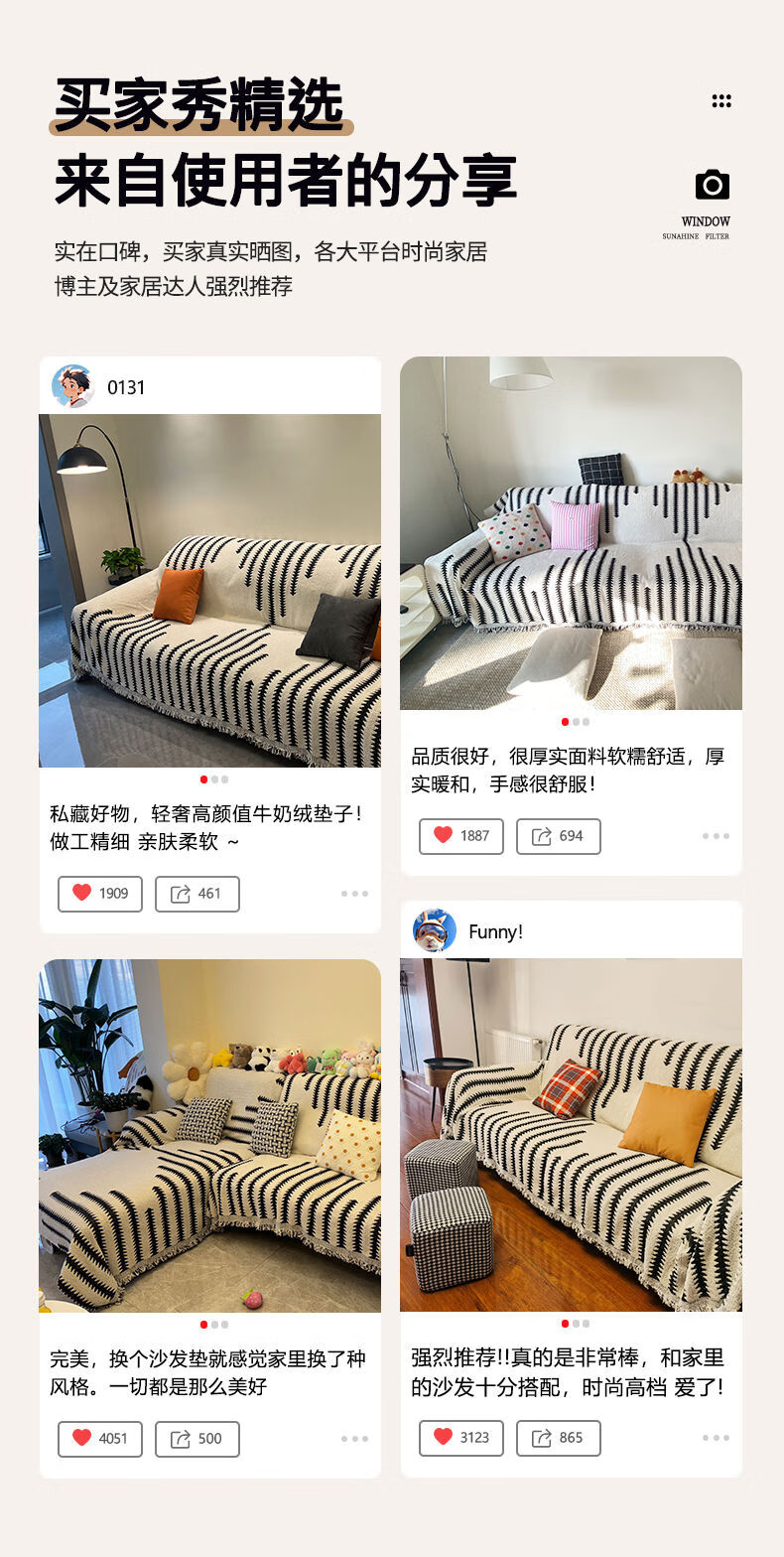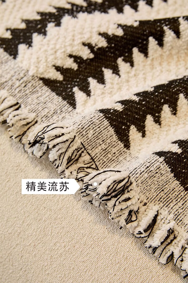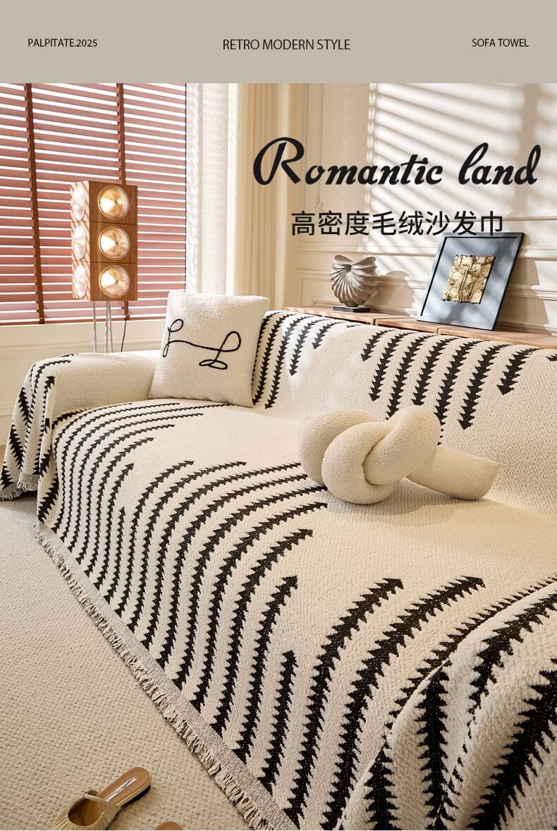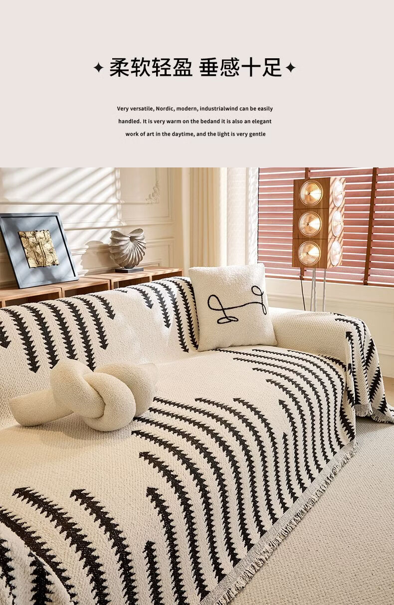 Cat-sense sofa cover Nordic style plush full blanket blanket for all seasons 2025 new cover Chenille-Jiuyi-black and white U-shaped sofa 180300cm two pieces + 180260cm one piece