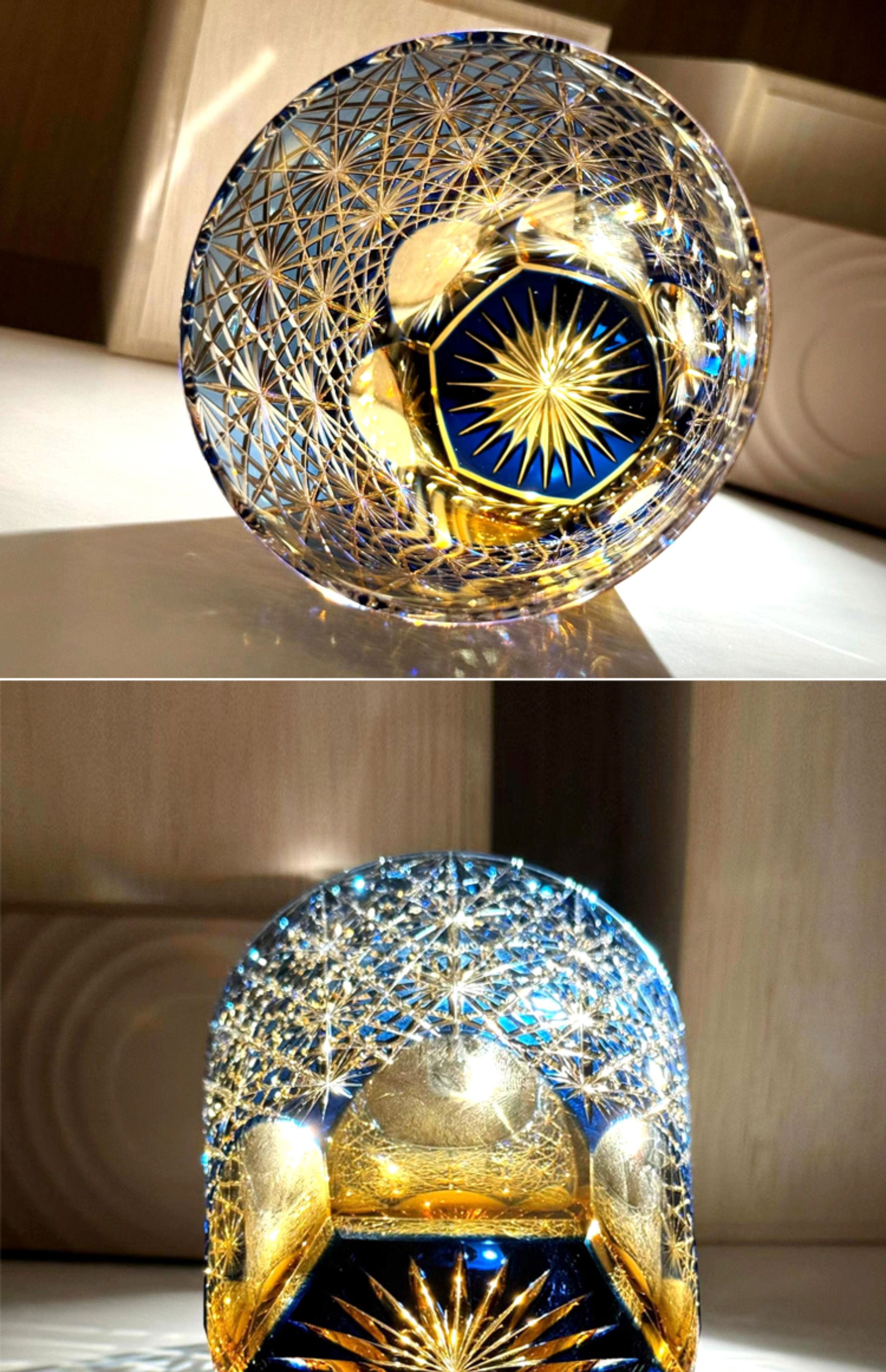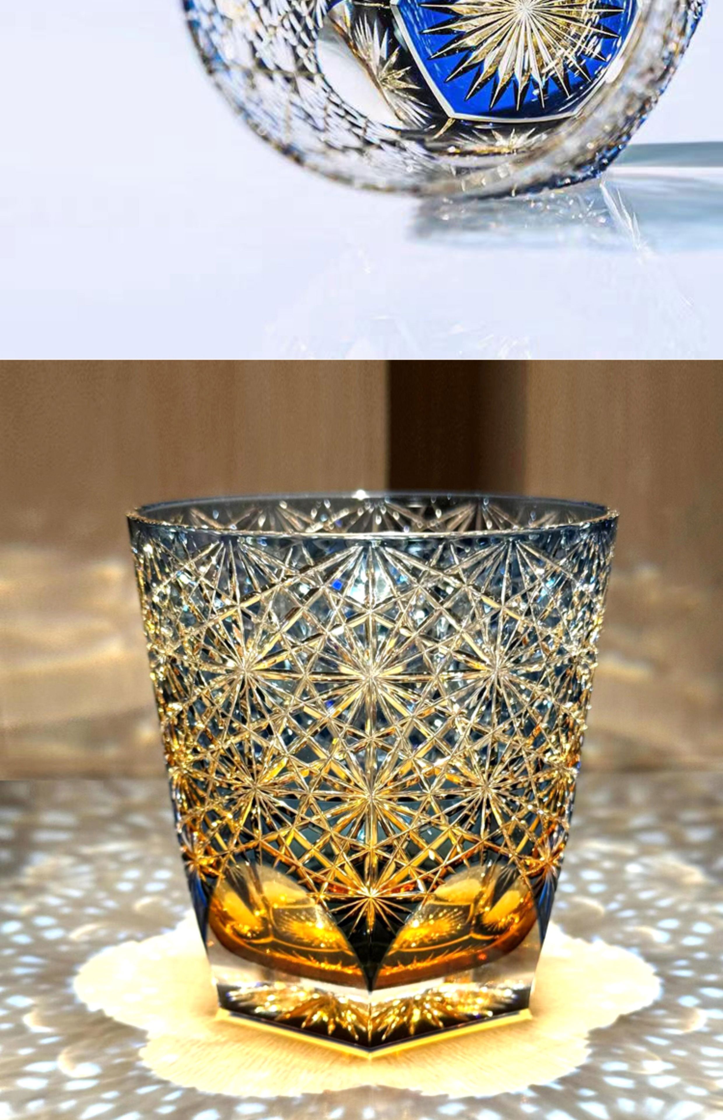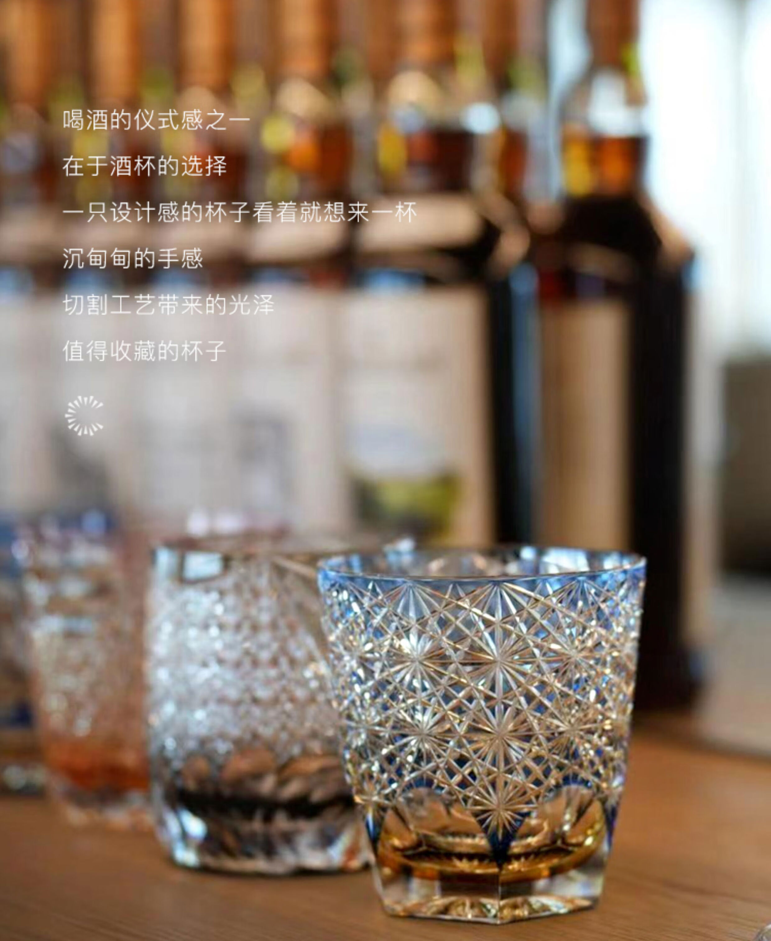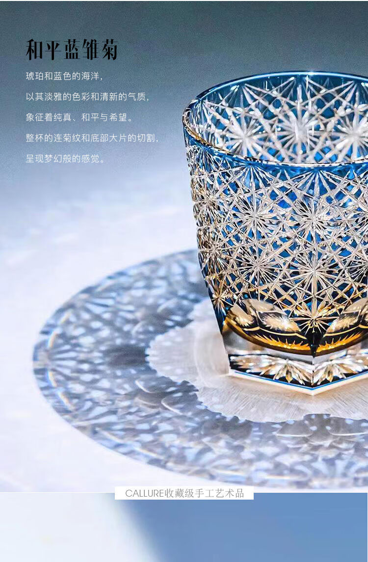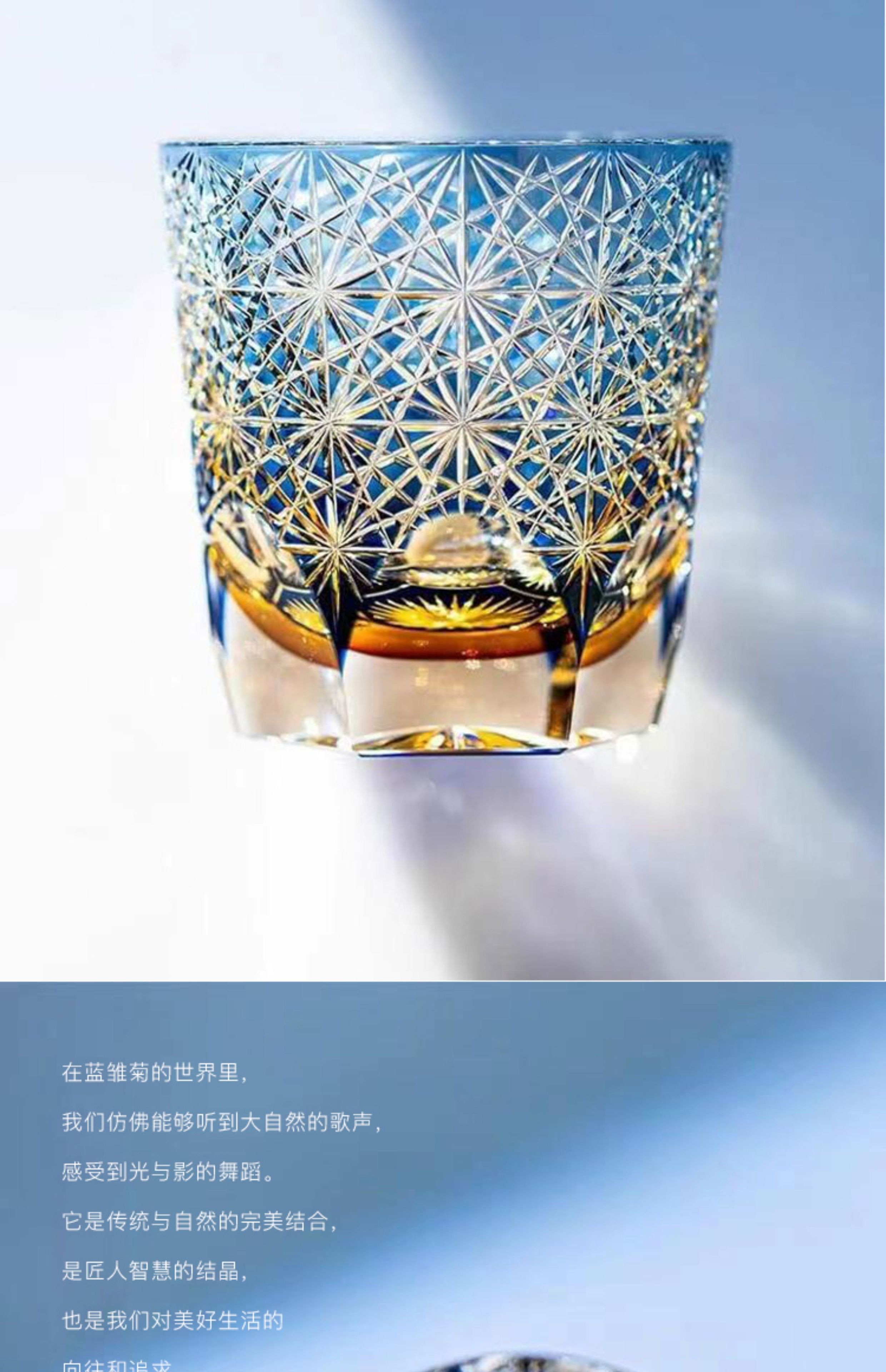 Sailoto Aurora sense hand-carved crystal glass blue daisy Kiriko whiskey cup Japanese style large blue daisy box simple environmental protection