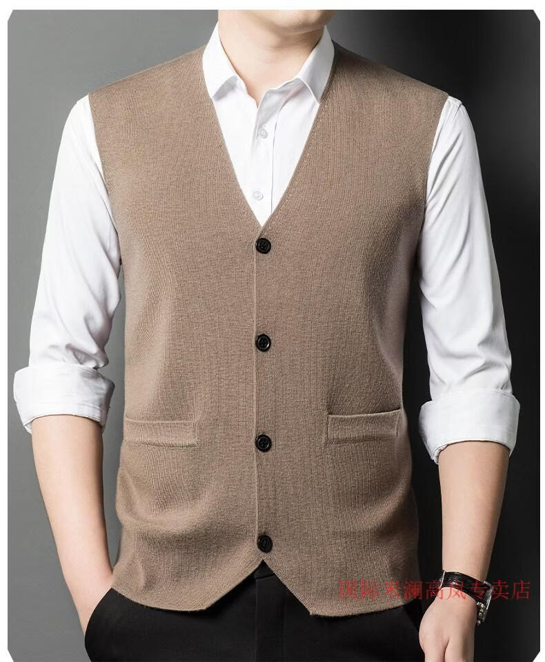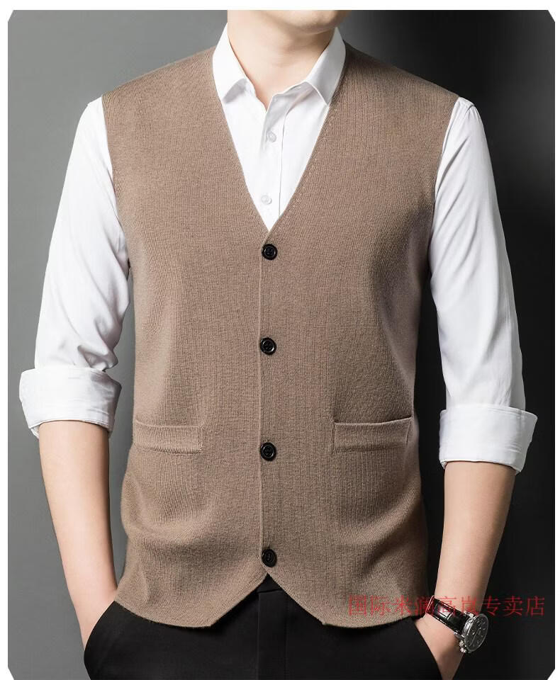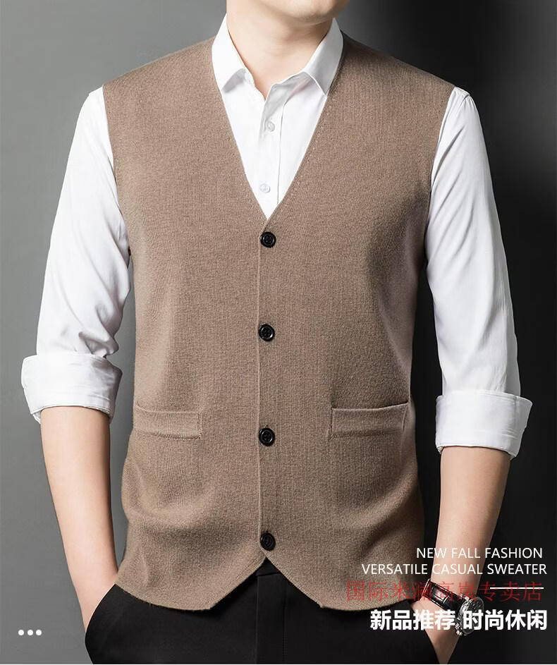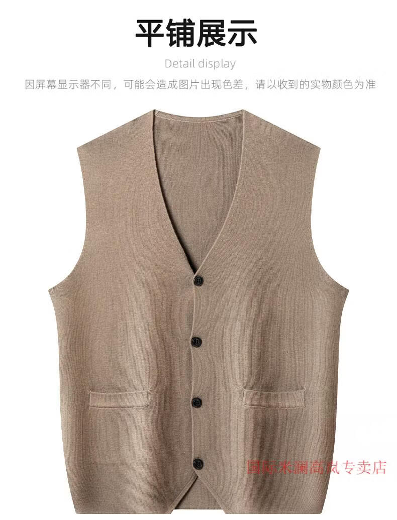 International Milan Ordos city-made 100% woolen sweater men's knitted cardigan vest warm solid color sweater vest vest camel high-end premium non-pilling 2025 autumn and winter new style XL (recommended weight 140-160Jin Jin equals 0.5 kg)