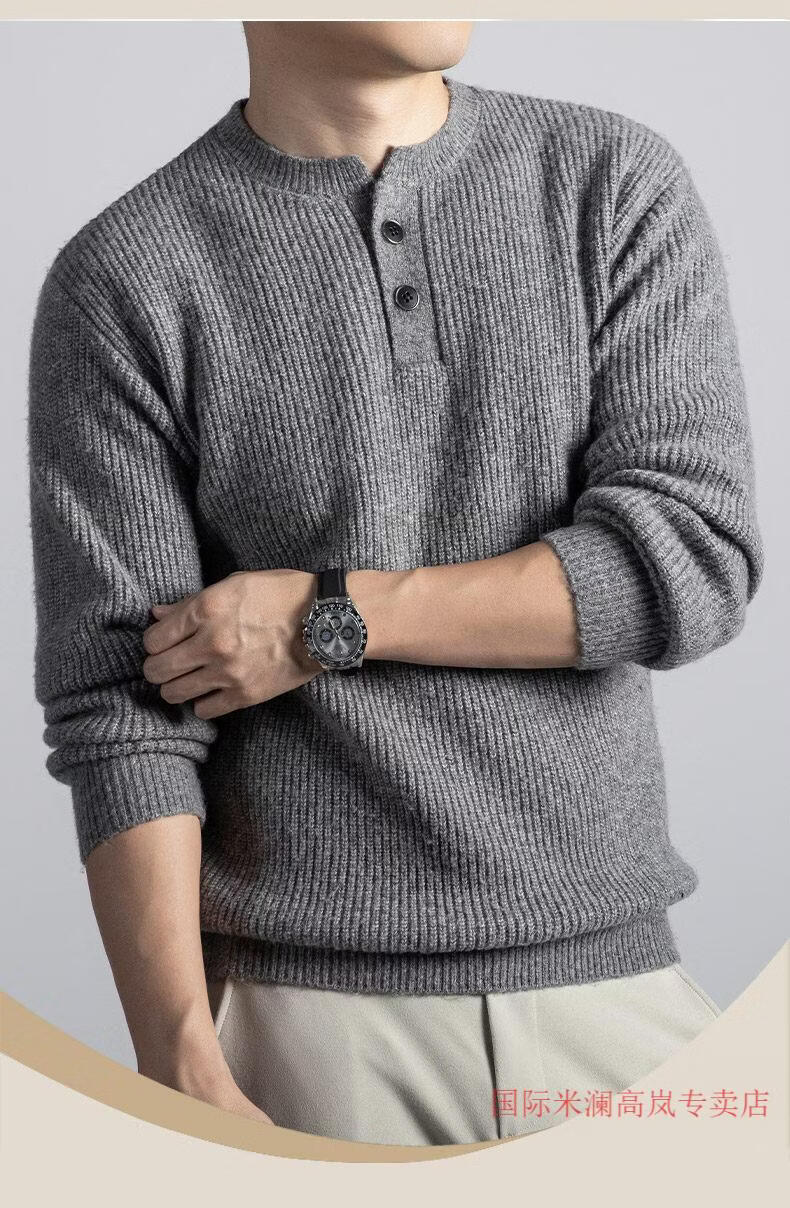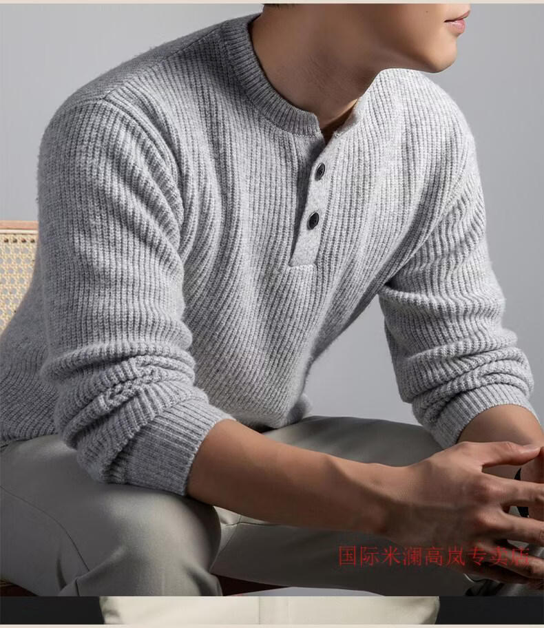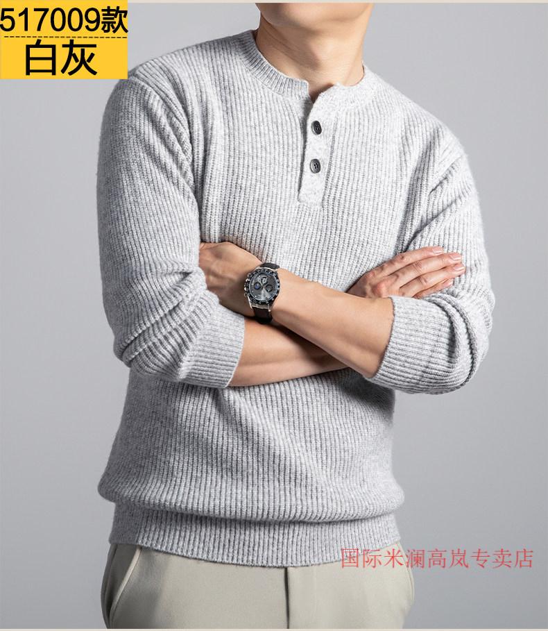 国际米澜鄂尔多斯市产100%羊毛衫男士毛衣冬季潮流加厚针织打底衫羊.绒衫 517009款-花羽灰 【高档特级不起球2025秋冬新款】 XL (建议体重140-160斤)