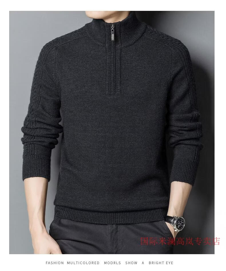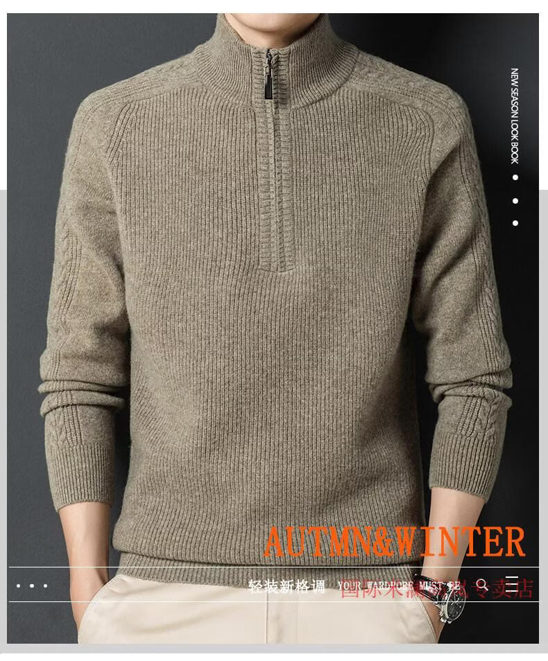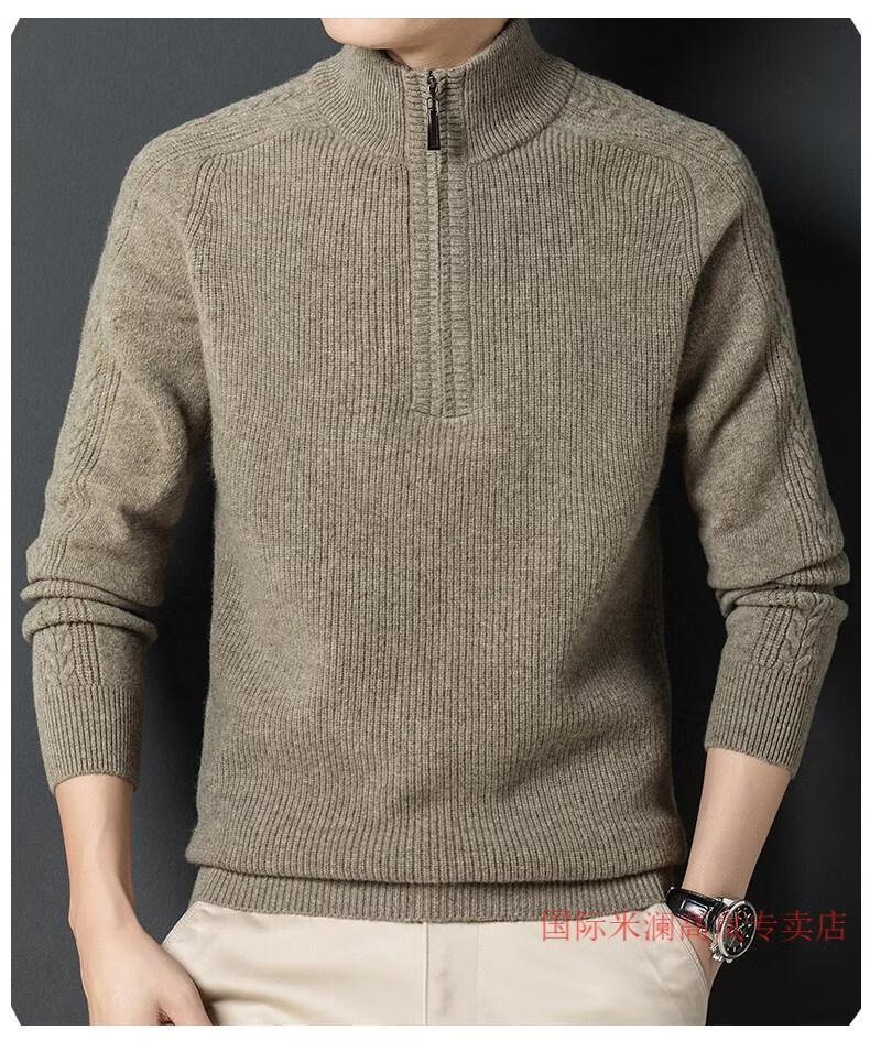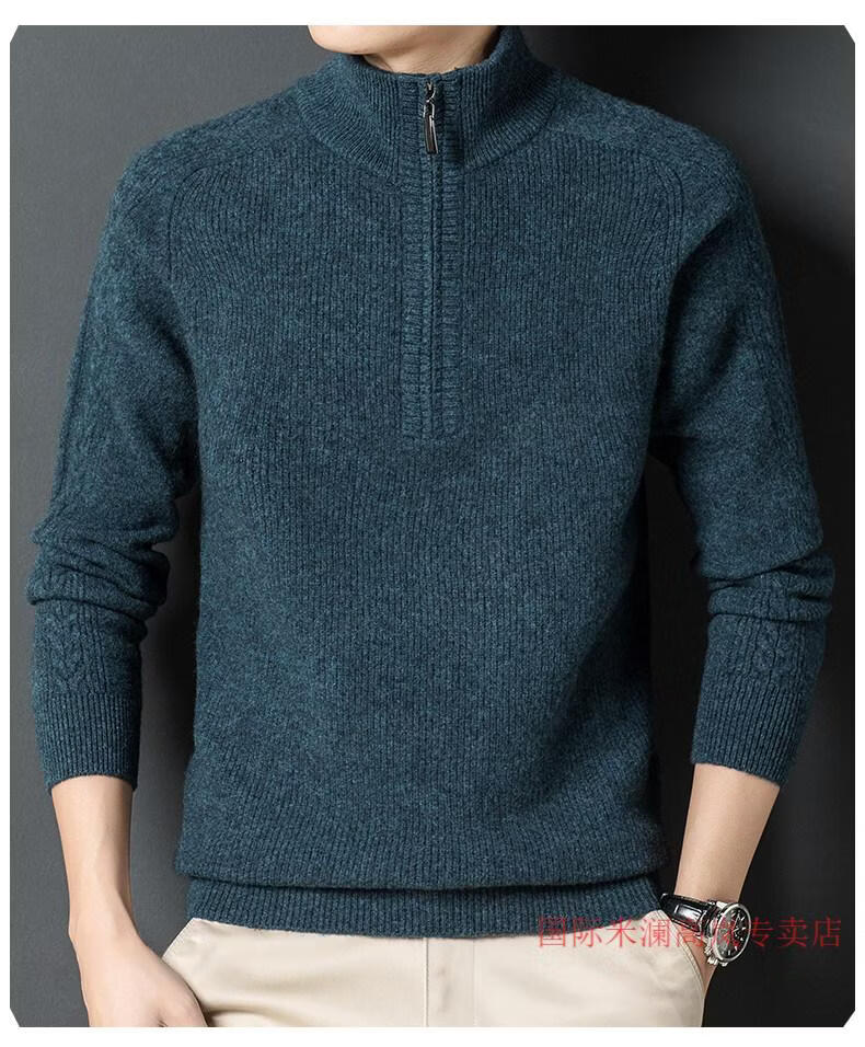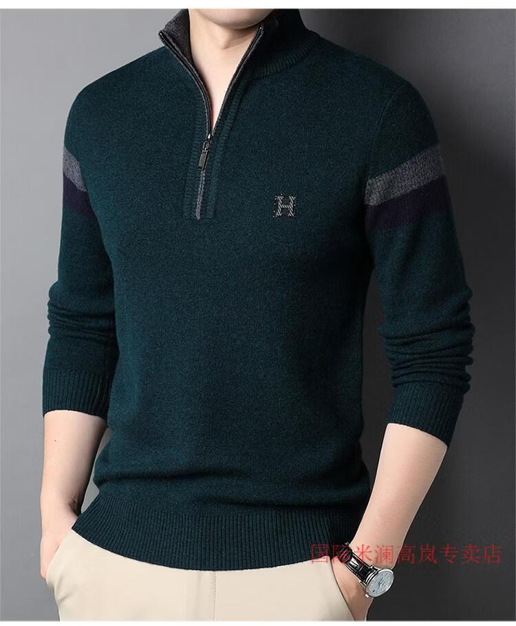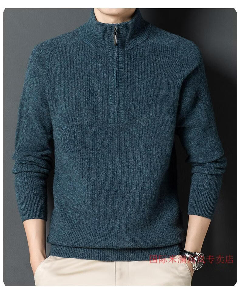 International Milan Ordos city-produced 100% wool sweater men's half turtleneck zipper thickened sweater bottoming sweater sheep. Sweater BL rock green 20 solid color high-end special grade non-pilling 2025 autumn and winter new XL (recommended weight 140-160Jin Jin equals 0.5 kg)