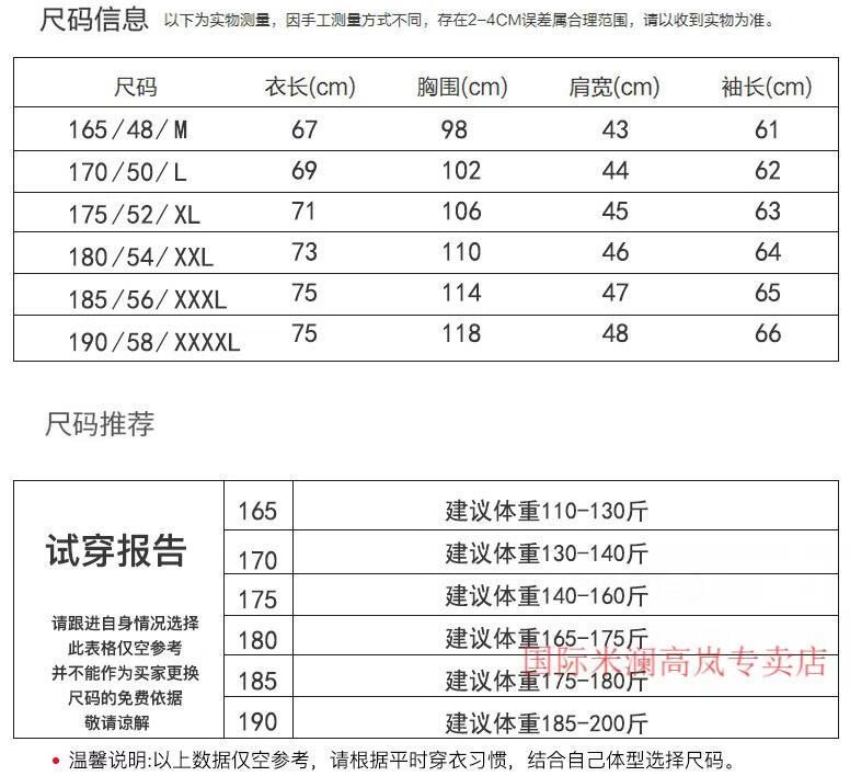 China (cm) 160-165/84-86 165-170 / 88-90 167-172 / 92-96 168-173 / 98-102 170-176 / 106-110