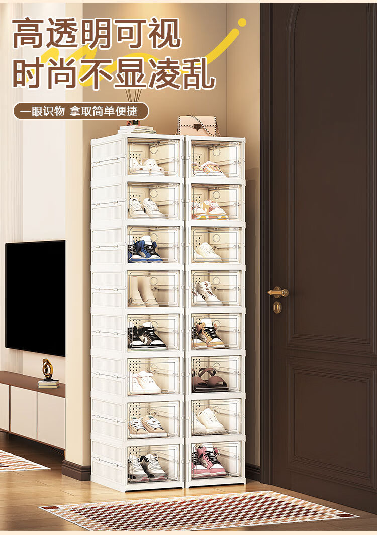 Fantasy shoe box storage box transparent door folding shoe cabinet shoe rack shoe storage 1 row 12 layers (12 doors)